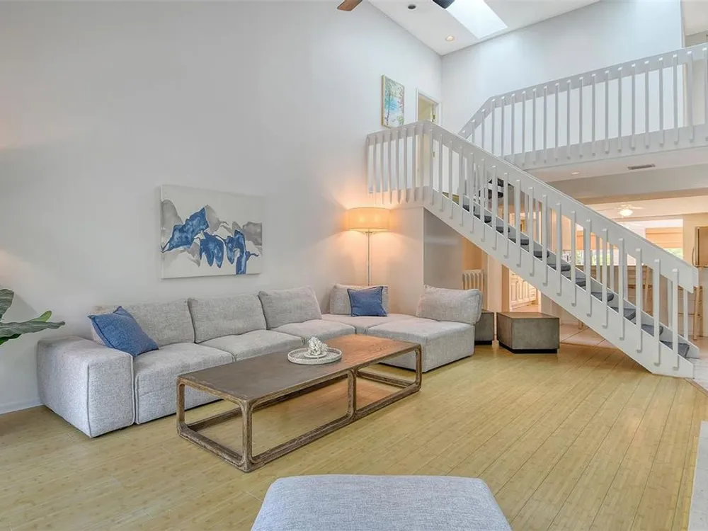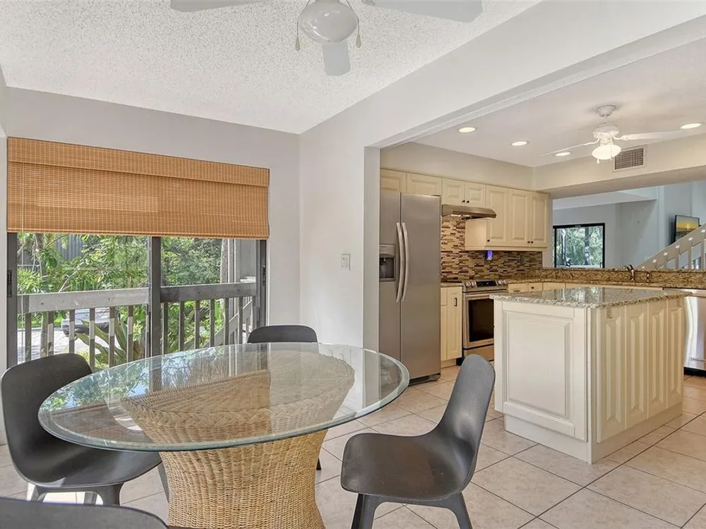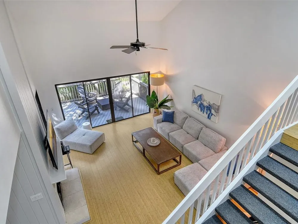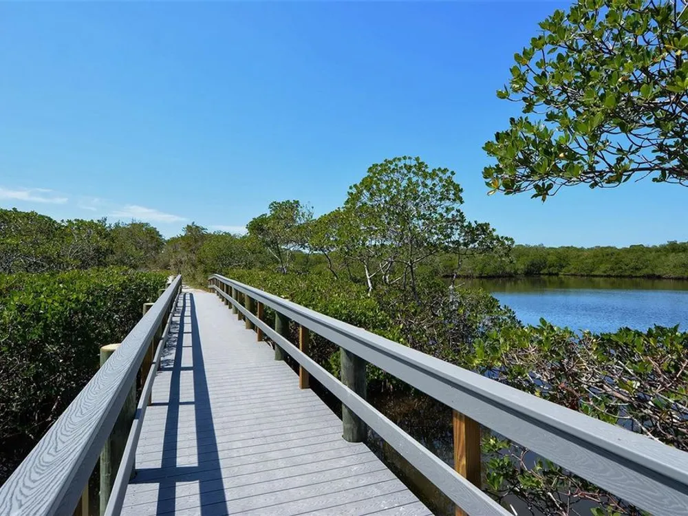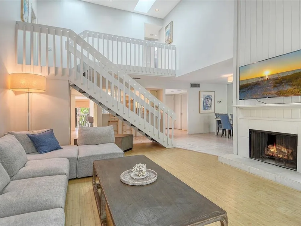 Seller will cover one year of HOA dues with acceptable contract. Welcome to The Landings Treehouse, one of Sarasota’s most sought-after gated communities. This spacious 3-bedroom, 2.5-bath residence offers over 2,000 sq. ft. of living space with a thoughtfully designed open floor plan that balances comfort and style. The main level features a bright living and dining area with soaring ceilings, skylights, a cozy fireplace, and access to a private lanai surrounded by lush tropical landscaping. The updated kitchen boasts granite counters, a center island, breakfast bar, solid wood cabinetry, and stainless-steel appliances—perfect for both everyday living and entertaining. Upstairs, the primary suite offers a walk-in closet, high ceilings, and a spa-inspired bathroom with skylights that fill the space with natural light. Two additional bedrooms provide plenty of room for guests, one with its own en suite bath. Throughout the home, you’ll find luxury vinyl and tile flooring, designer finishes, and built-in features that enhance functionality. Set among mature trees and serene nature, The Landings Treehouse community is known for its exclusive amenities, including a heated community pool, tennis courts, walking trails, and private access to the Intracoastal Waterway through the Landings Racquet Club (membership optional). This desirable location places you just minutes from Siesta Key Beach, Downtown Sarasota, St. Armands Circle, and a variety of shopping, dining, and cultural attractions. With its generous floor plan, resort-style amenities, and unbeatable location, this home is the perfect opportunity to enjoy the relaxed yet vibrant Sarasota lifestyle.