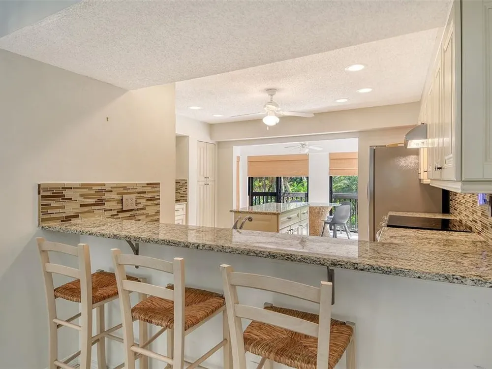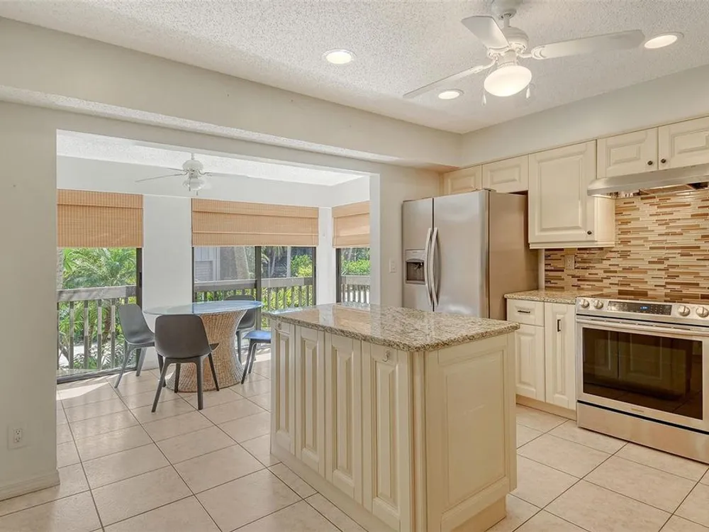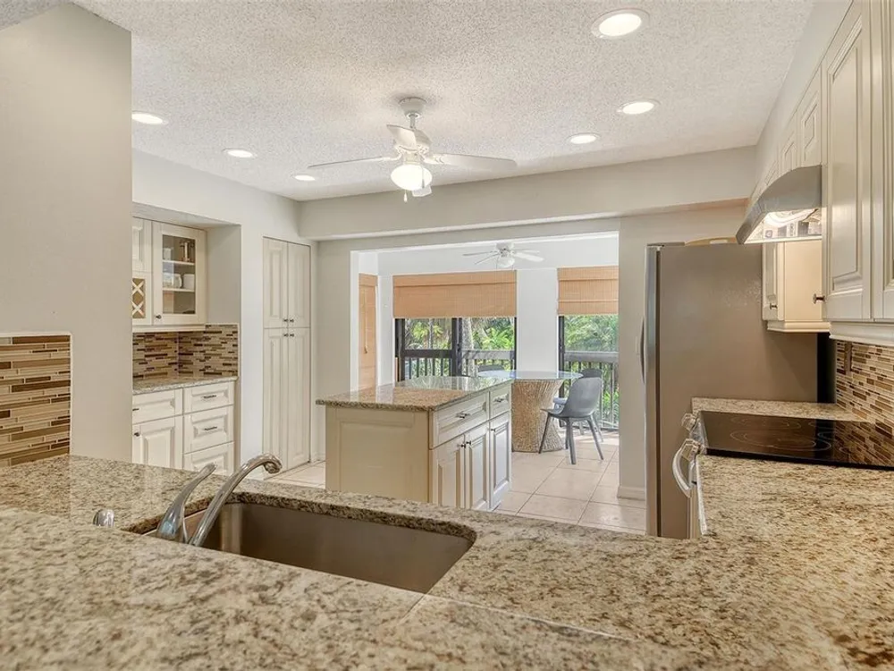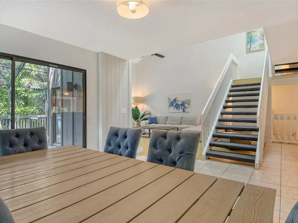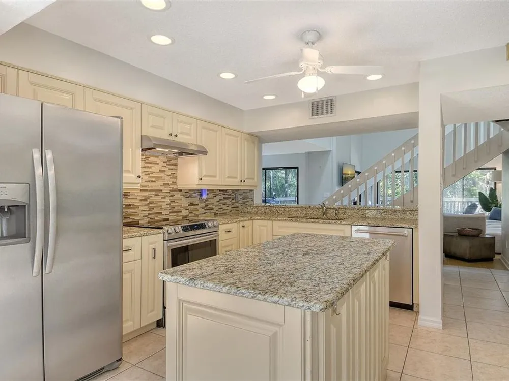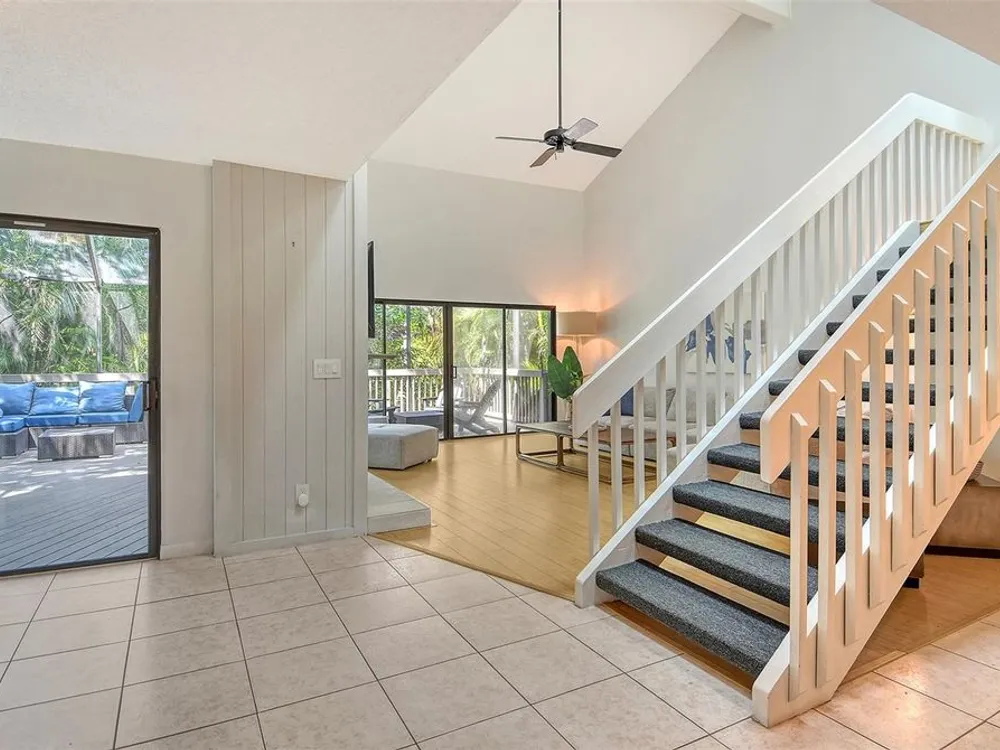 Seller will cover one year of HOA dues with acceptable contract. Welcome to The Landings Treehouse, one of Sarasota’s most sought-after gated communities. This spacious 3-bedroom, 2.5-bath residence offers over 2,000 sq. ft. of living space with a thoughtfully designed open floor plan that balances comfort and style. The main level features a bright living and dining area with soaring ceilings, skylights, a cozy fireplace, and access to a private lanai surrounded by lush tropical landscaping. The updated kitchen boasts granite counters, a center island, breakfast bar, solid wood cabinetry, and stainless-steel appliances—perfect for both everyday living and entertaining. Upstairs, the primary suite offers a walk-in closet, high ceilings, and a spa-inspired bathroom with skylights that fill the space with natural light. Two additional bedrooms provide plenty of room for guests, one with its own en suite bath. Throughout the home, you’ll find luxury vinyl and tile flooring, designer finishes, and built-in features that enhance functionality. Set among mature trees and serene nature, The Landings Treehouse community is known for its exclusive amenities, including a heated community pool, tennis courts, walking trails, and private access to the Intracoastal Waterway through the Landings Racquet Club (membership optional). This desirable location places you just minutes from Siesta Key Beach, Downtown Sarasota, St. Armands Circle, and a variety of shopping, dining, and cultural attractions. With its generous floor plan, resort-style amenities, and unbeatable location, this home is the perfect opportunity to enjoy the relaxed yet vibrant Sarasota lifestyle.