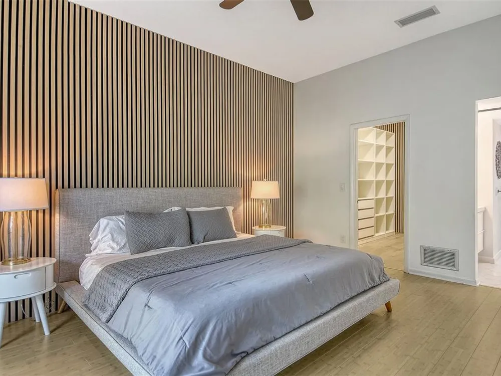 - Built-in Features, Ceiling Fan(s), Eat-in Kitchen, High Ceilings, Living/Dining Room, Open Floorplan, Solid-Wood Cabinets, Walk-In Closet(s), Window Treatments