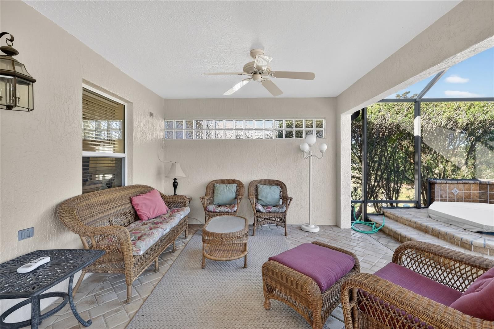 BREATHTAKING GOLF and PRESERVE VIEWS -- NO BOND -- TURNKEY -- ROOM FOR A POOL Offering stunning panoramic views of the Pelican Golf Course and preserve, this TURNKEY 3-bedroom, 2-bath Lantana is located in the highly desirable Village of Sunset Pointe, just minutes from SUMTER LANDING. Situated on an extra-large, private lot, this home features NO BOND, a two-car plus GOLF CART GARAGE, and the room for and option to add a pool. From the moment you arrive, the custom paver driveway, lush landscaping, and inviting front walkway set the tone. Step inside and your eyes are immediately drawn through the home to the spectacular golf course and preserve views beyond. Designed with a split floor plan, guests enjoy their own private wing with two spacious bedrooms and a full bath, including a front guest bedroom with a beautiful bay window (and Murphy bed). The open-concept living area features hardwood floors, vaulted ceilings, solar tubes, and fresh interior paint. The eat-in kitchen is ideal for entertaining, offering granite countertops, tile backsplash, abundant cabinetry with pull-out drawers, and a unique three-point curved counter that opens seamlessly to the dining and living areas. The primary suite is a true retreat with tranquil golf course views, an expansive tray ceiling, and a huge walk-in closet. The ensuite bath features dual granite vanities, a walk-in shower, and custom cabinetry for extra storage. The highlight of this home is the glass sliding doors from the livingroom, opening to a large 36x22 foot birdcage with a raised in-ground spa, movable bar, and fully paved outdoor living space—perfect for year-round enjoyment and entertaining while taking in the serene views. This prime location is just a short golf cart ride to Sumter Landing, shopping, dining, and nightly entertainment, and approximately ½ mile to Lake Miona and Hibiscus Recreation Centers and Cane Garden Country Club. Close to championship golf, medical facilities, grocery stores, and everything The Villages lifestyle has to offer. Please view the 3D walkthrough of this exceptional home. Call today to schedule your private showing.
