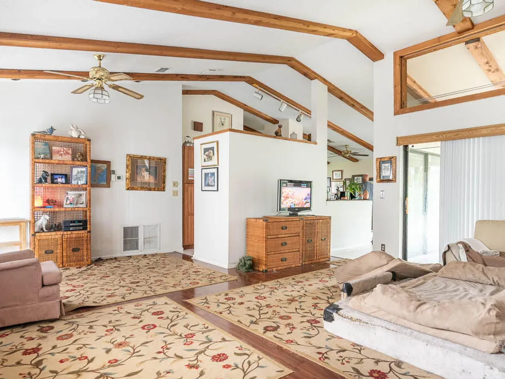 - Cathedral Ceiling(s), Kitchen Island, Split Bedrooms, Walk-In Closet(s), Home Office, Family Room, Blinds, Drapes, Dual Sinks, Primary Downstairs, Separate Shower