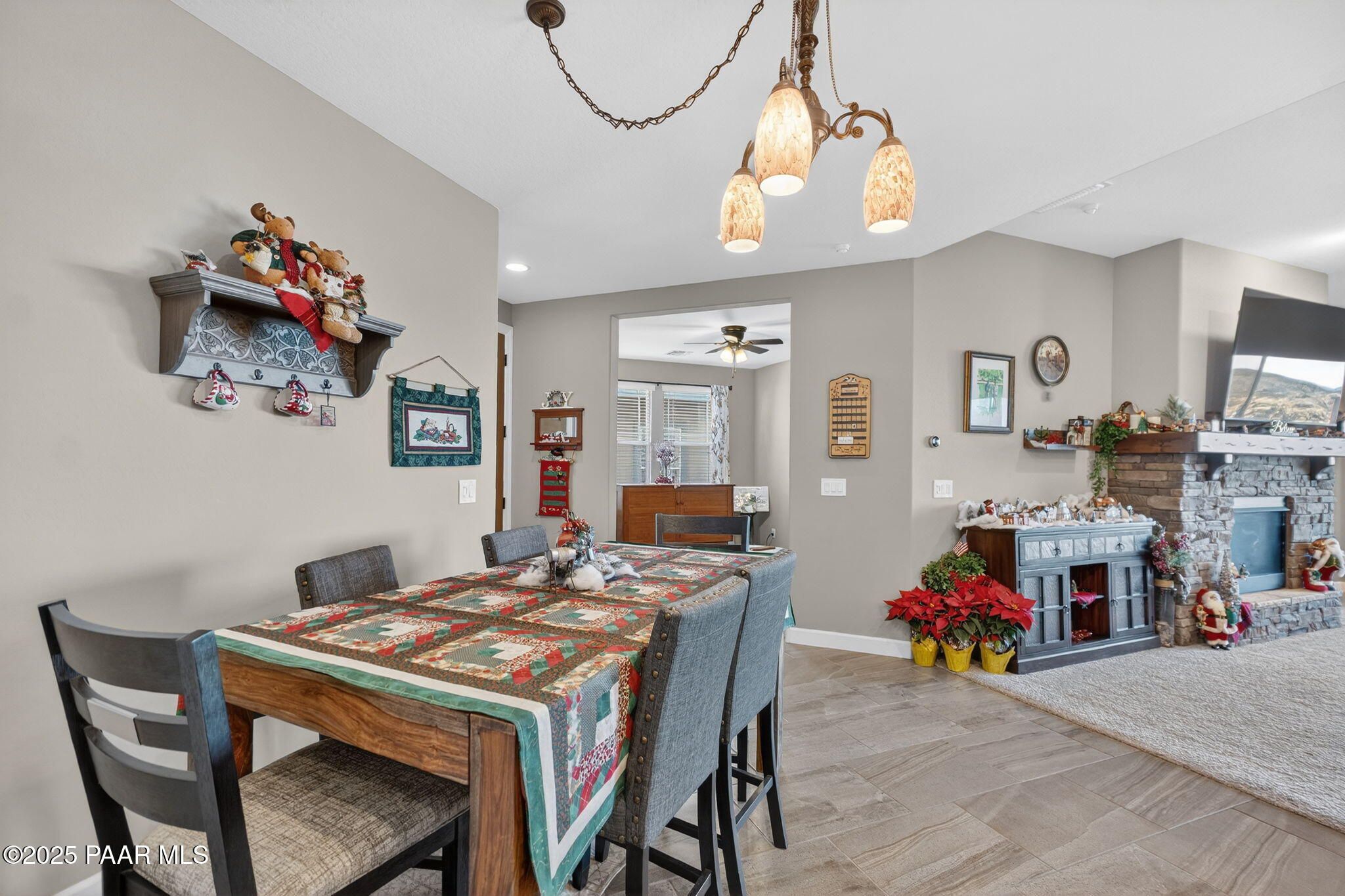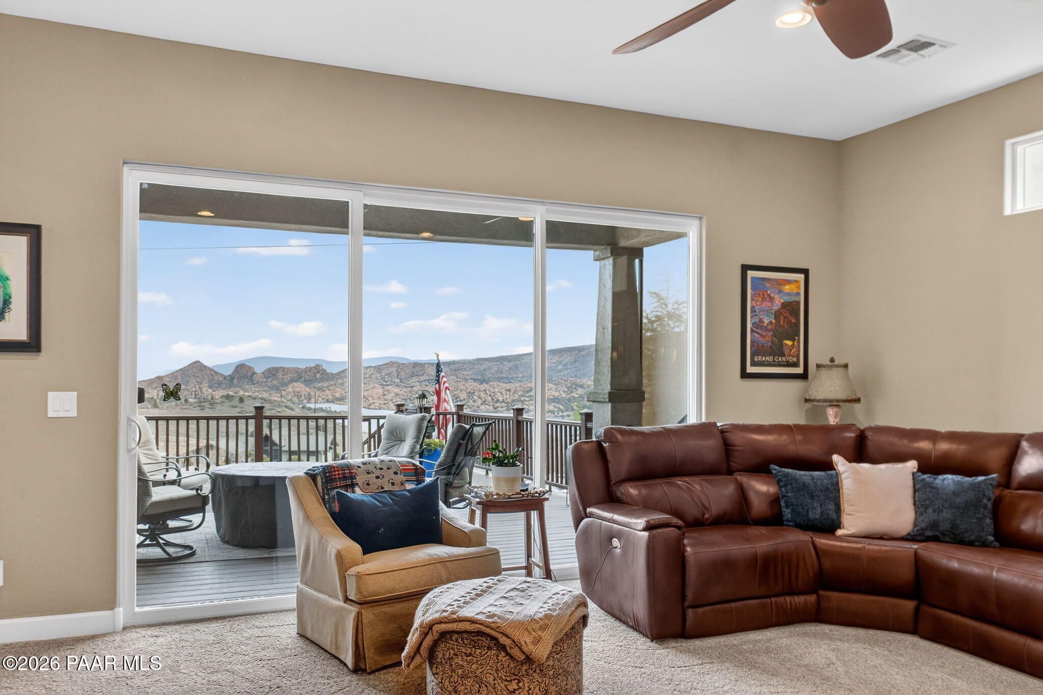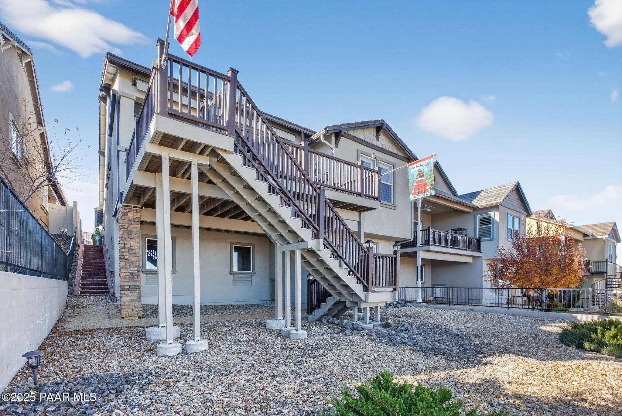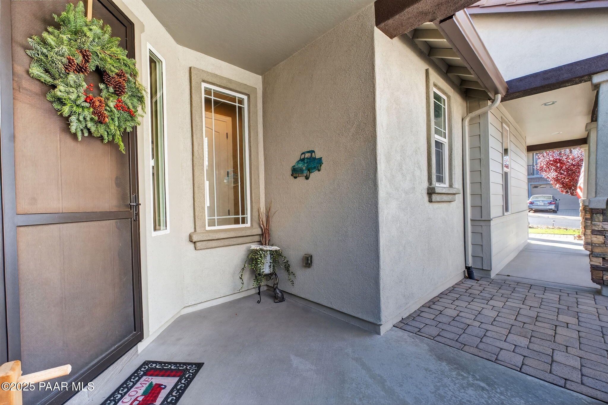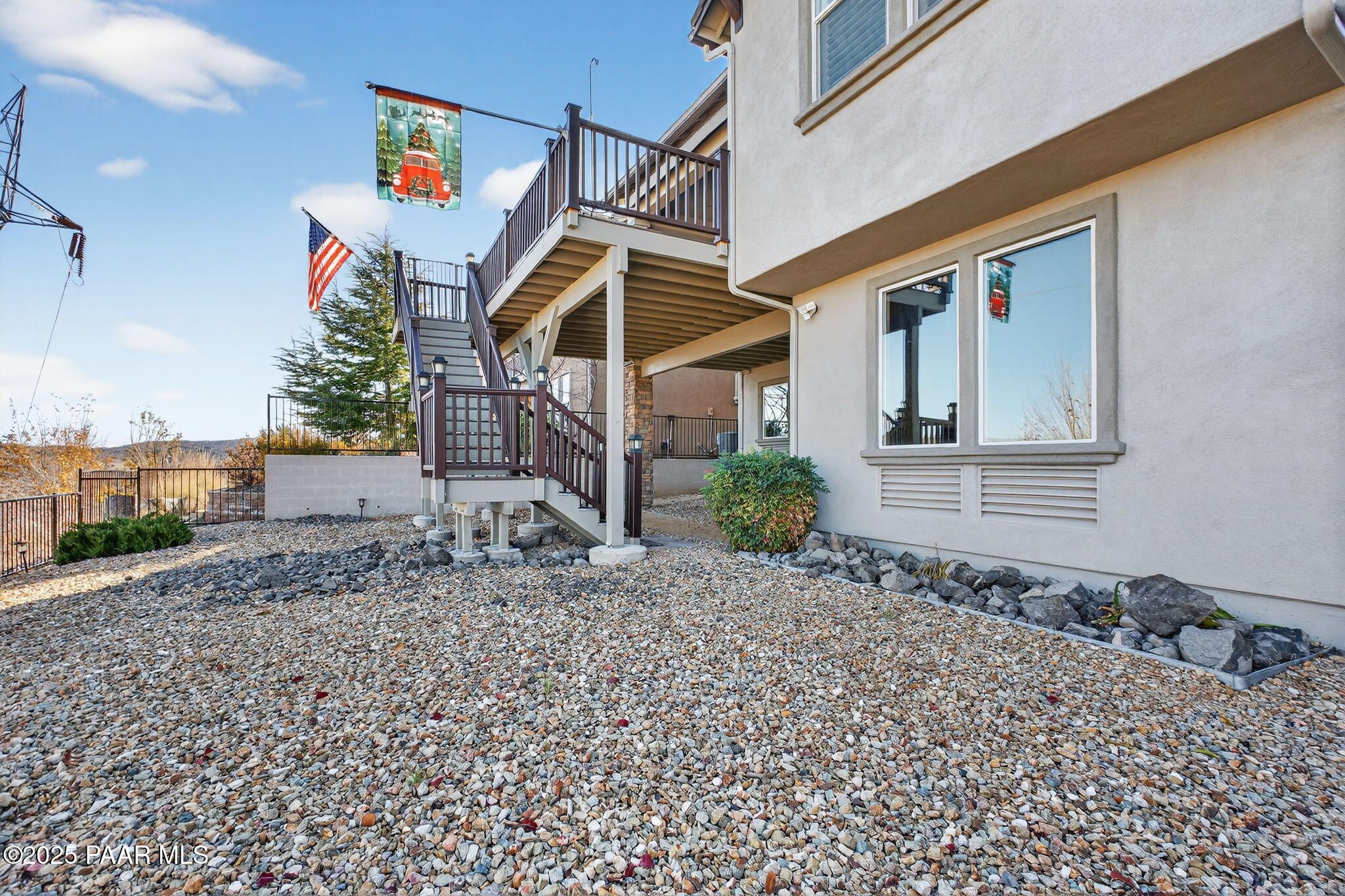 Enjoy stunning, up-close views of Prescott's iconic Granite Dells right from your kitchen sink and living room! This beautifully updated home in Astoria offers a single-level, open floor plan filled with modern finishes throughout. Upgrades include granite countertops, tiled kitchen and bathroom backsplashes, stainless steel appliances (all of which convey and were replaced in 2023), tile flooring, custom lighting, custom cabinetry, and a gorgeous stack-stone fireplace that anchors the living space.The home features 2 bedrooms PLUS a den that can easily serve as a potential 3rd bedroom. The spacious primary suite includes plantation shutters, private deck access, a luxurious bath, and a large walk-in closet. A new awning enhances the outdoor living experience, adding shade and comfort to the expanded deck.The 2021 deck expansion added stairs to the backyard, electrical wiring, TV hookup, and a ceiling fan--perfect for enjoying Prescott's four-season climate. A whole-home water filtration system was also installed in 2024. The exterior was professionally painted in 2025, giving the home a fresh, modern look. The oversized crawlspace offers excellent storage with potential to be converted into additional living space.Located in a friendly, gated neighborhood within one of Prescott's premier subdivisions, this home is truly move-in ready and designed for comfortable, modern living!