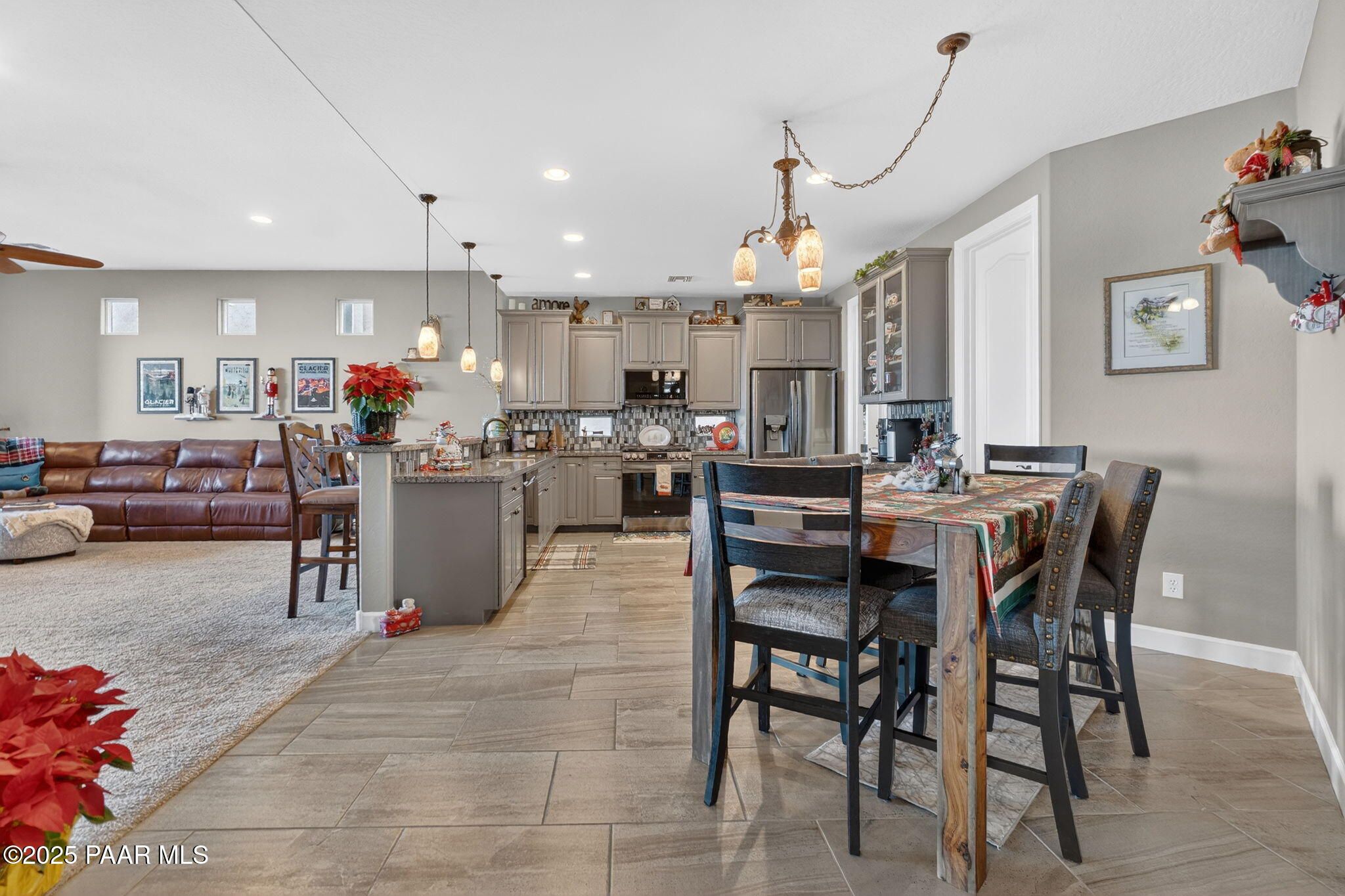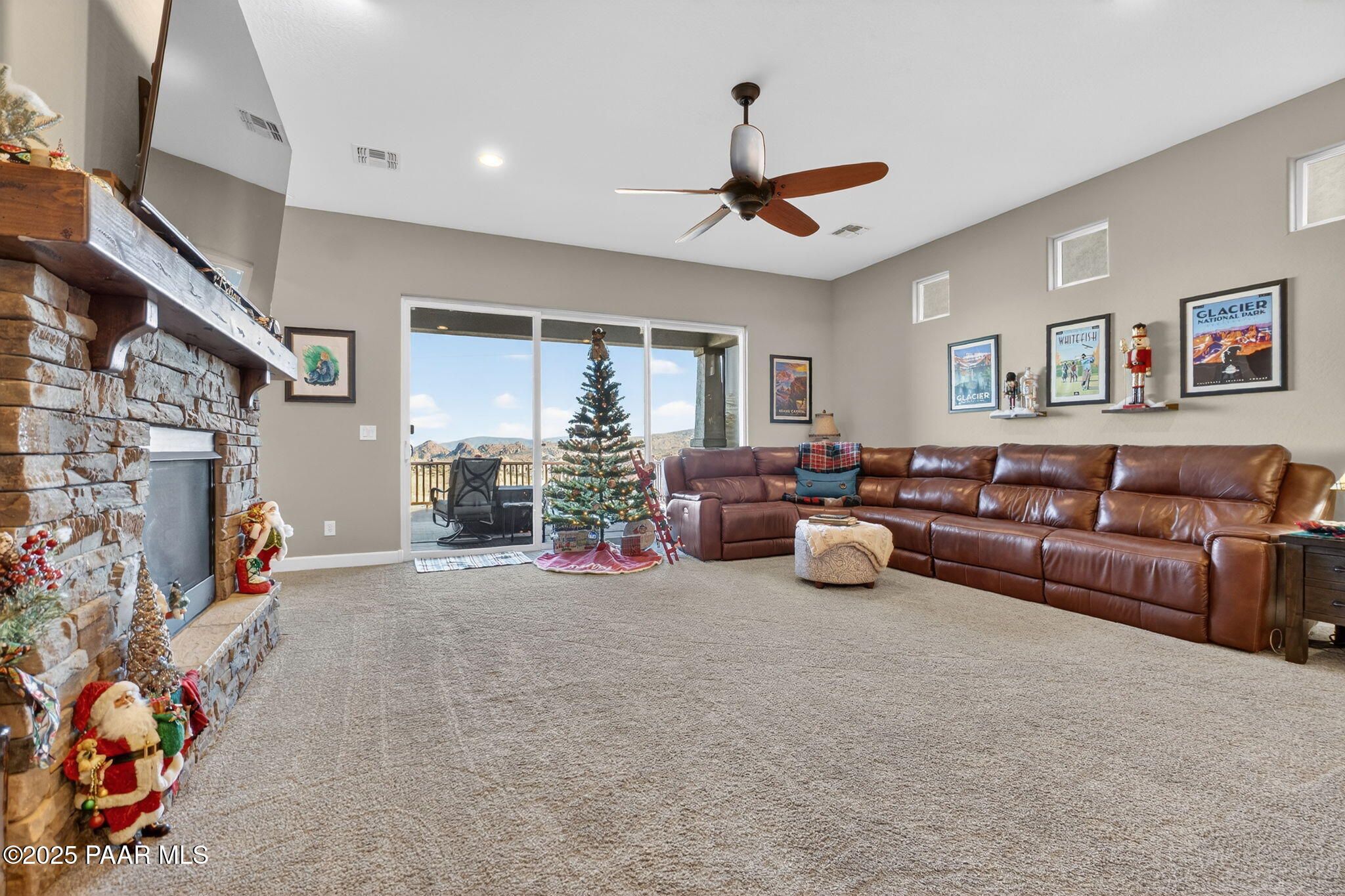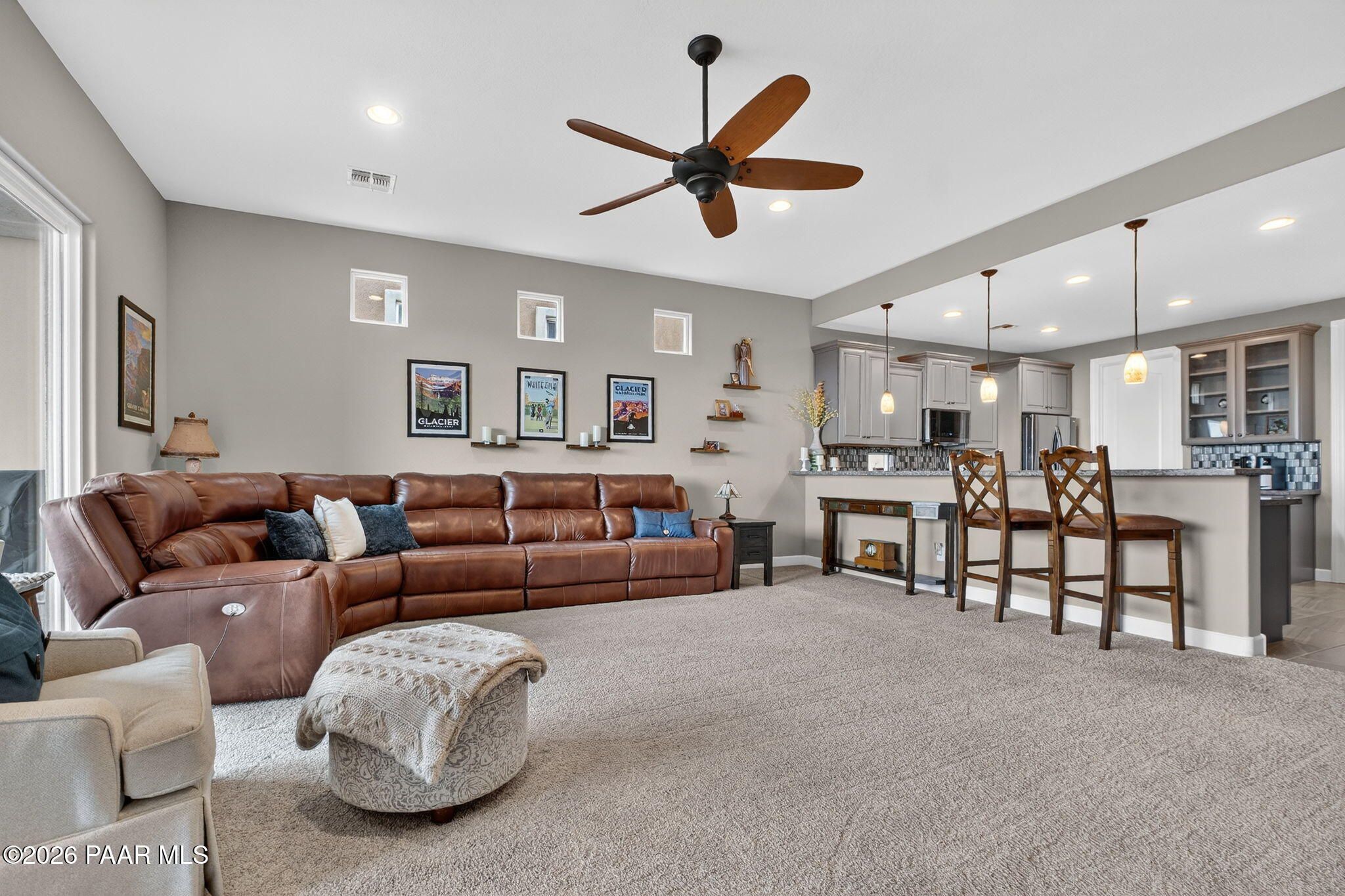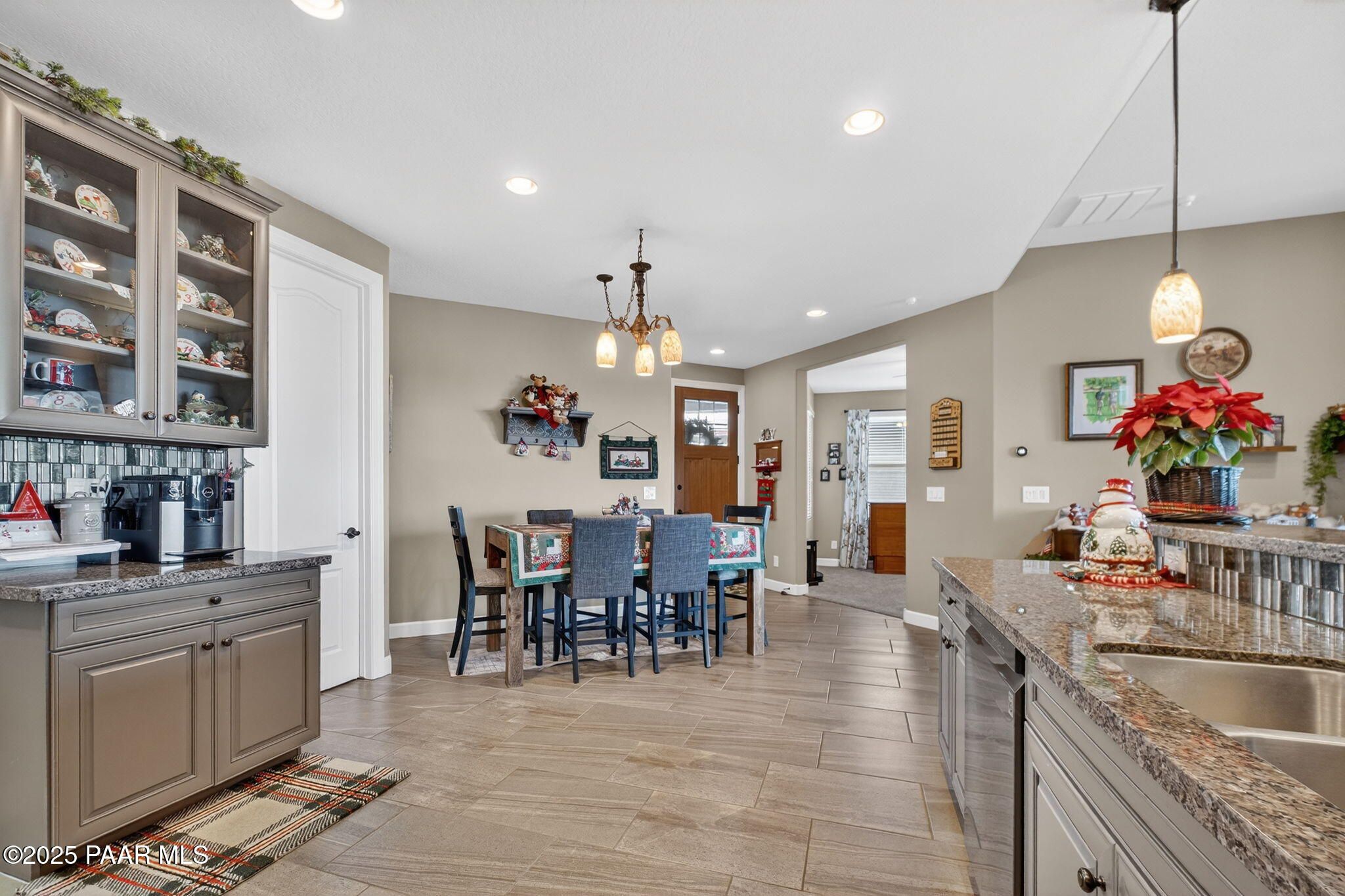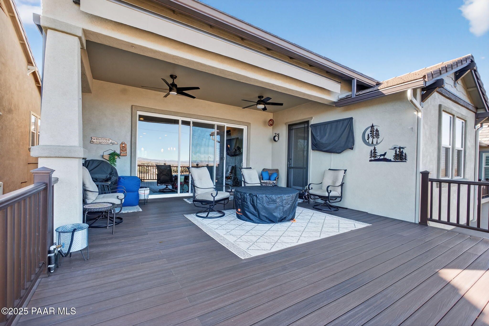 Enjoy stunning, up-close views of Prescott's iconic Granite Dells right from your kitchen sink and living room! This beautifully updated home in Astoria offers a single-level, open floor plan filled with modern finishes throughout. Upgrades include granite countertops, tiled kitchen and bathroom backsplashes, stainless steel appliances (all of which convey and were replaced in 2023), tile flooring, custom lighting, custom cabinetry, and a gorgeous stack-stone fireplace that anchors the living space.The home features 2 bedrooms PLUS a den that can easily serve as a potential 3rd bedroom. The spacious primary suite includes plantation shutters, private deck access, a luxurious bath, and a large walk-in closet. A new awning enhances the outdoor living experience, adding shade and comfort to the expanded deck.The 2021 deck expansion added stairs to the backyard, electrical wiring, TV hookup, and a ceiling fan--perfect for enjoying Prescott's four-season climate. A whole-home water filtration system was also installed in 2024. The exterior was professionally painted in 2025, giving the home a fresh, modern look. The oversized crawlspace offers excellent storage with potential to be converted into additional living space.Located in a friendly, gated neighborhood within one of Prescott's premier subdivisions, this home is truly move-in ready and designed for comfortable, modern living!