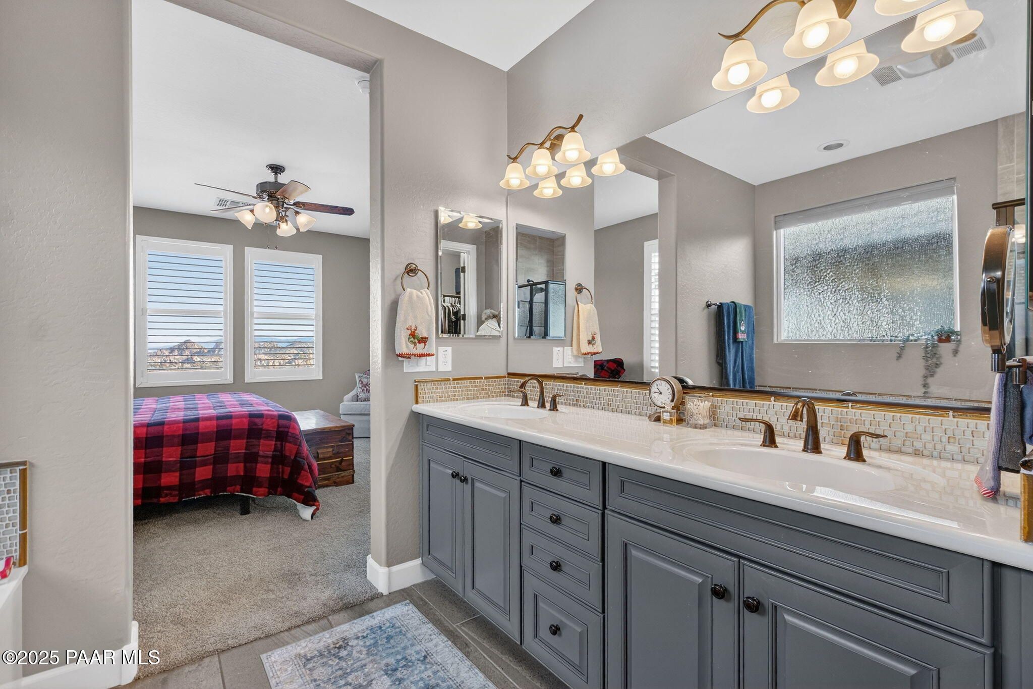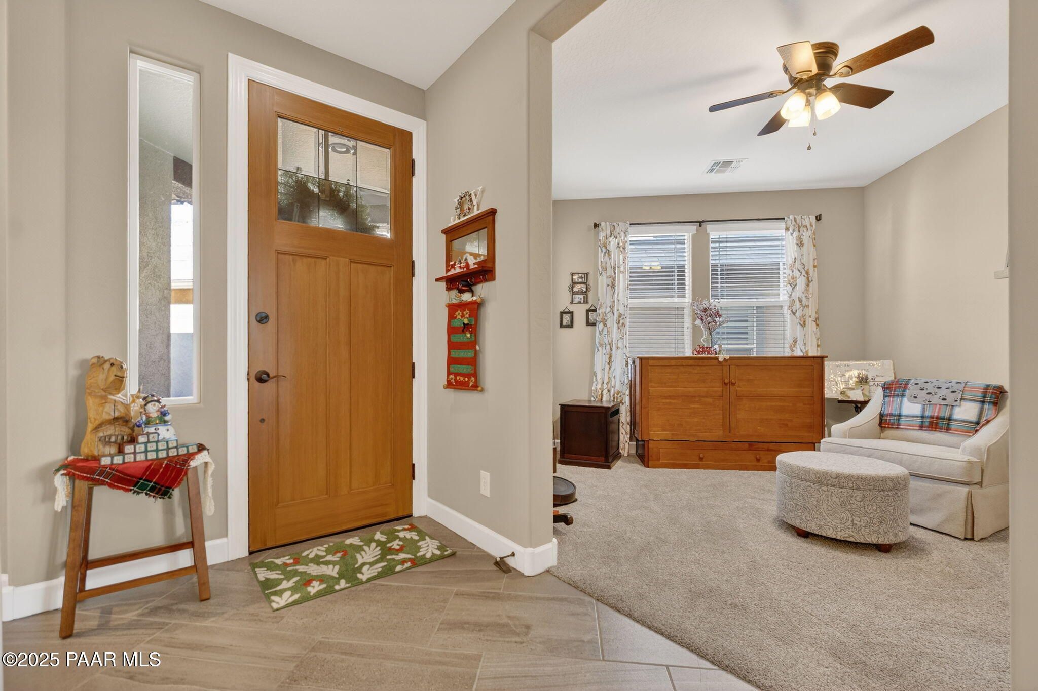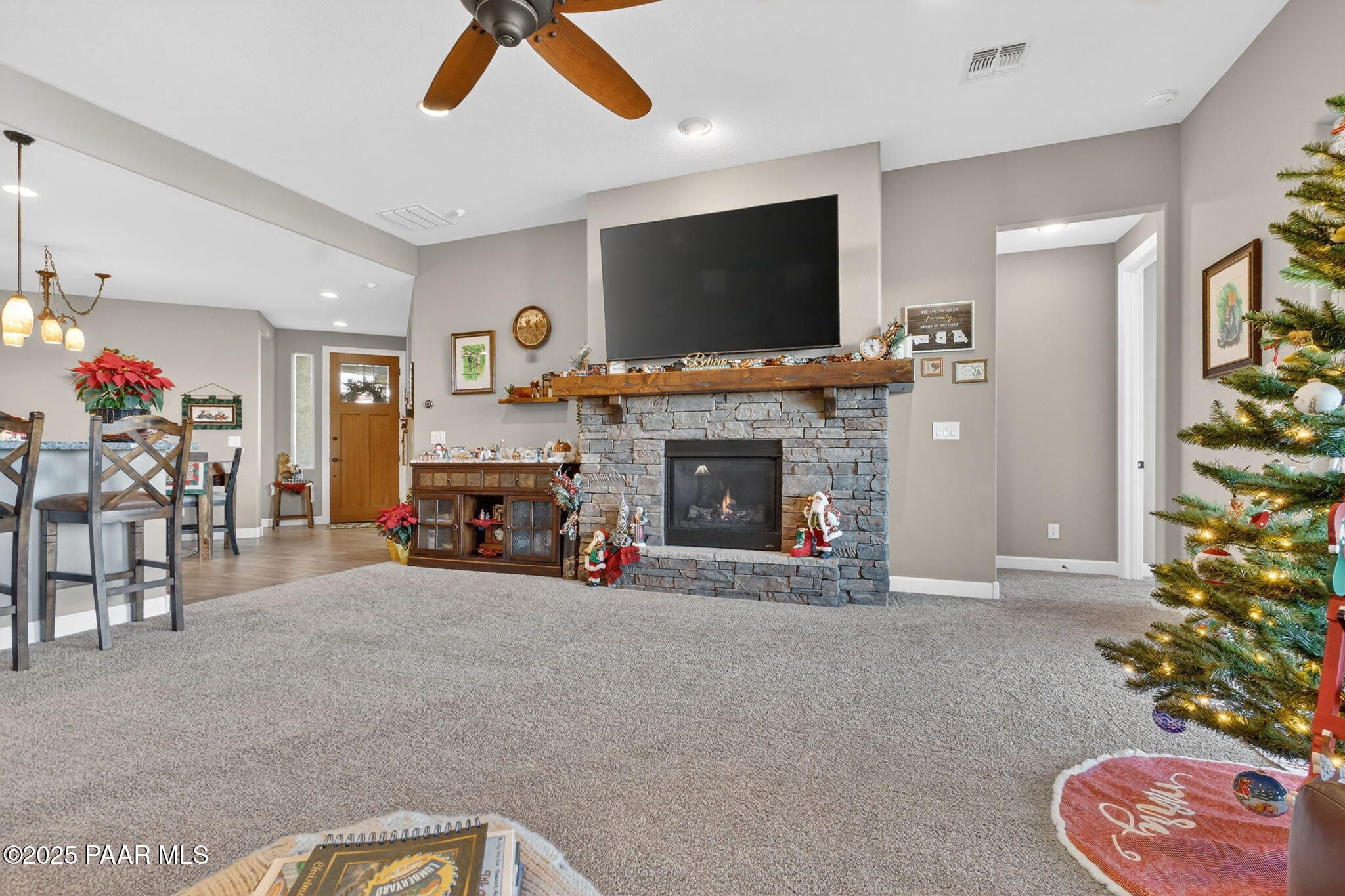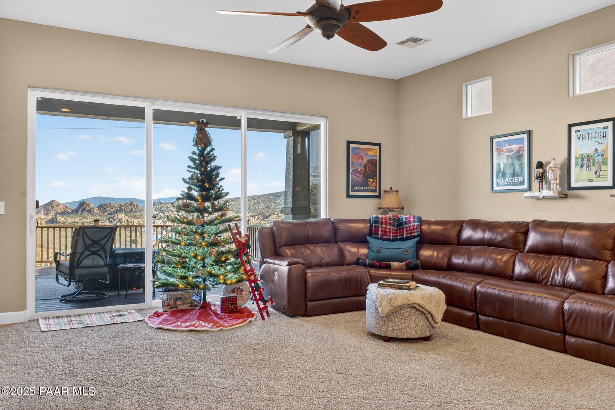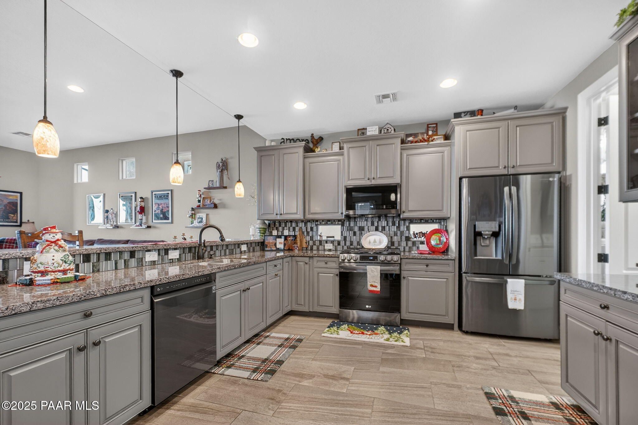Enjoy stunning, up-close views of Prescott's iconic Granite Dells right from your kitchen sink and living room! This beautifully updated home in Astoria offers a single-level, open floor plan filled with modern finishes throughout. Upgrades include granite countertops, tiled kitchen and bathroom backsplashes, stainless steel appliances (all of which convey and were replaced in 2023), tile flooring, custom lighting, custom cabinetry, and a gorgeous stack-stone fireplace that anchors the living space.The home features 2 bedrooms PLUS a den that can easily serve as a potential 3rd bedroom. The spacious primary suite includes plantation shutters, private deck access, a luxurious bath, and a large walk-in closet. A new awning enhances the outdoor living experience, adding shade and comfort to the expanded deck.The 2021 deck expansion added stairs to the backyard, electrical wiring, TV hookup, and a ceiling fan--perfect for enjoying Prescott's four-season climate. A whole-home water filtration system was also installed in 2024. The exterior was professionally painted in 2025, giving the home a fresh, modern look. The oversized crawlspace offers excellent storage with potential to be converted into additional living space.Located in a friendly, gated neighborhood within one of Prescott's premier subdivisions, this home is truly move-in ready and designed for comfortable, modern living!