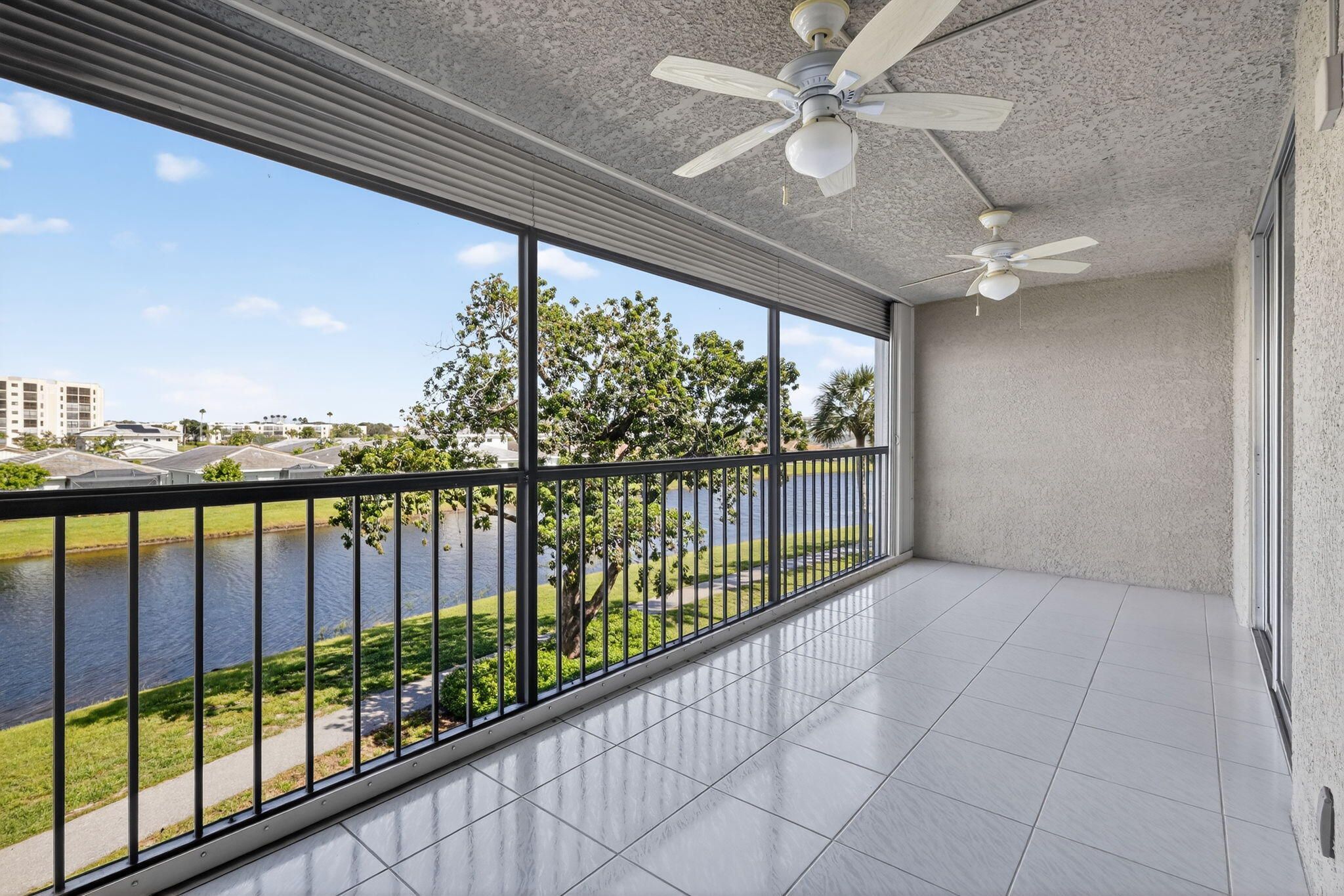 Stunning water views! 2br/2bath 3rd floor corner unit in an elevatored building with breathtaking views of a large lake from a screened-in porch with accordion hurricane shutters. Located in desirable Deauville in the Villages of Oriole 55+ gated community in Delray Beach. This updated Condo has tile throughout, a kitchen w/breakfast area, and granite countertops with backsplash. Washer/Dryer in unit and modern bathrooms. Main bedroom w/large walk-in closet. Brand new, Beautiful clubhouse w/pool and great amenities. Walk to the Publix shopping center with restaurants, banks, places of worship, and many stores. 15-minute drive to the beach and trendy downtown Delray Beach.