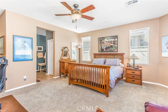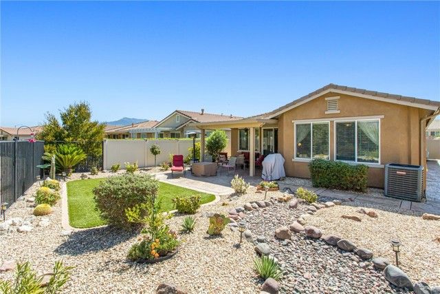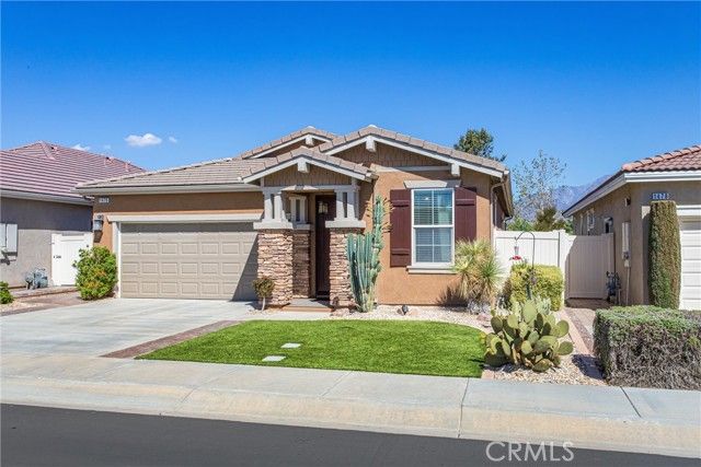 Located in the 55+ Senior Community of Four Seasons Beaumont. This Lovely Craftsman Styled Home is Ideally Located Backing to One of the Communities Hiking Trails. Low Energy Costs with a Solar System and a Tesla Backup Battery. This Sanctuary Floor Plan is Move-In Ready. This Home Boasts of Granite Kitchen Counter Tops, Stainless Steel Appliances, Ceramic Tile, Engineered Wood Flooring in the Family Room and Hallways and New Shaw Carpet in the Master Bedroom. The Master Bedroom has the Optional Door to the Patio and Bay Window. The Large Laundry Room has Upgraded Storage Cabinets and Sink. The are Additional Built-In Cabinets in the Garage. The Low Maintenance Yard has Artificial Turf, Stamped Concrete, an Insulated Alumawood Patio Cover with Lights and Fan. The Four Seasons resort community includes a lodge with a resort style pool complex with cabanas and jacuzzi, grand ballroom, bistro, 50 seat movie theater, billiards room, full service salon, bocce ball courts, 4 tennis courts, 8 pickle ball courts, 9 hole putting green, horseshoe court, shuffle board courts, basketball courts, 2 large fitness centers, six miles of walking trails, indoor pool complex and dog park.