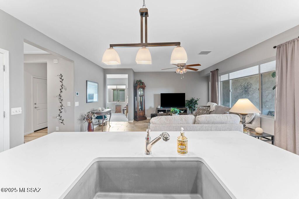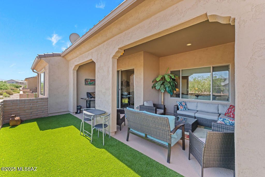 UPGRADES GALORE! TURN-KEY! LOW MAINTENANCE! PREMIUM LOT! VERSATILE DEN!Discover effortless living in this pristine Cholla Villa, ideally located in Quail Creek--Southern Arizona's premier active adult community. This 2-bedroom, 2-bath home with a versatile den offers an open, airy layout that's perfect for entertaining or everyday comfort.Enjoy upscale touches throughout: sleek quartz countertops, stainless steel appliances, pull-out shelving, custom darkening shades, and stylish tile flooring. The private, fully walled patio backs to open space--no rear neighbors--for added peace and privacy.With the brand-new Canyon Club now open, you'll have access to resort-style pools, fitness, dining, and endless activities just steps away.