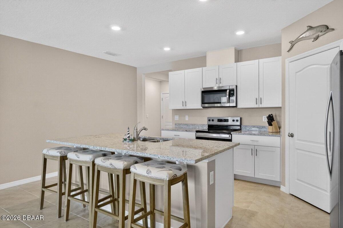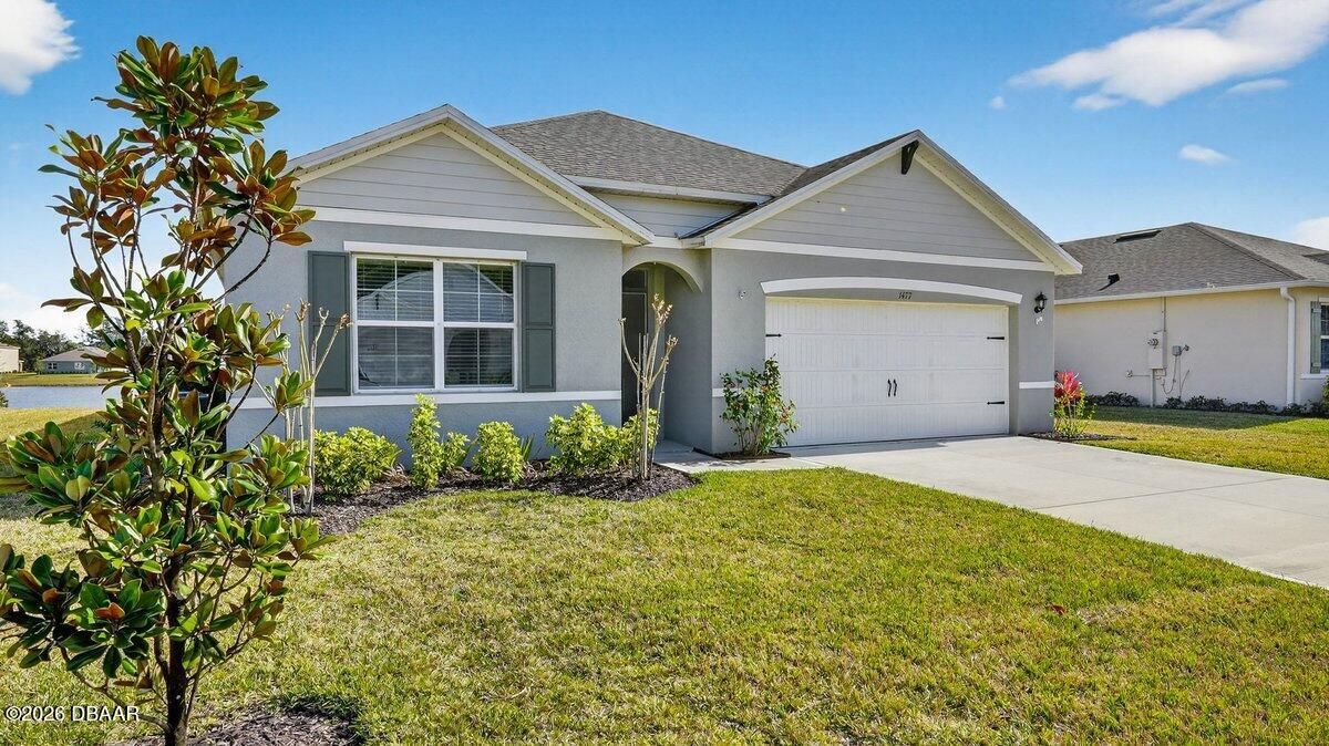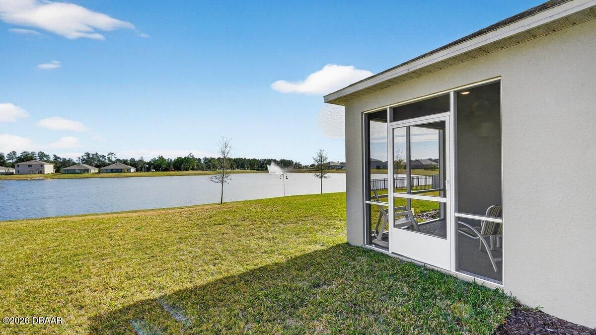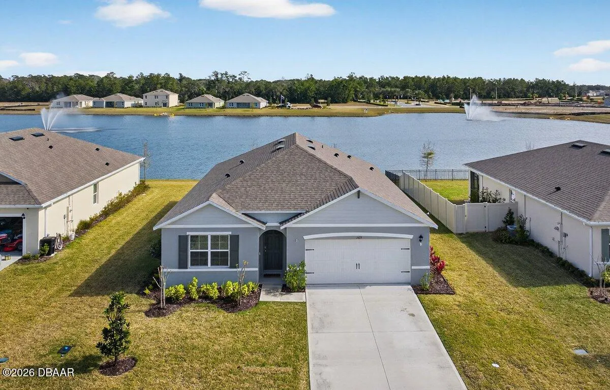 Welcome home—you've found the one. This move-in-ready smart home, offered by motivated sellers, blends modern comfort with relaxed coastal living. Built just 18 months ago, the thoughtfully designed Cali model block home is in the up-and-coming Fountain View subdivision, ideally located in Ormond Beach and just minutes from the beach. Featuring 4 bedrooms and 2 bathrooms, the open floor plan offers the space and functionality today's buyers desire. The heart of the home showcases granite countertops, white cabinetry, stainless steel appliances, and a walk-in pantry, all complemented by a light, natural coastal color palette. Recessed lighting and abundant natural light create an airy, welcoming atmosphere throughout. The spacious primary suite is a true retreat, complete with a stylish ceiling fan and an ensuite bath featuring double vanities, a walk-in shower, separate water closet, and a generous walk-in closet. Step outside to the east-facing screened lanai overlooking the lake and water fountains, the perfect setting to enjoy morning coffee or unwind in the evenings. Additional features include window treatments throughout and a 50-amp electrical upgrade to hookup a whole-house generator. Priced below market and below the cost to build new, this home presents exceptional value in a growing community. Schedule your private tour today and start living the Fun Coast lifestyle you've been dreaming of. Square footage from tax rolls and AI-generated floor plan. All information recorded in the MLS is intended to be accurate but cannot be guaranteed.