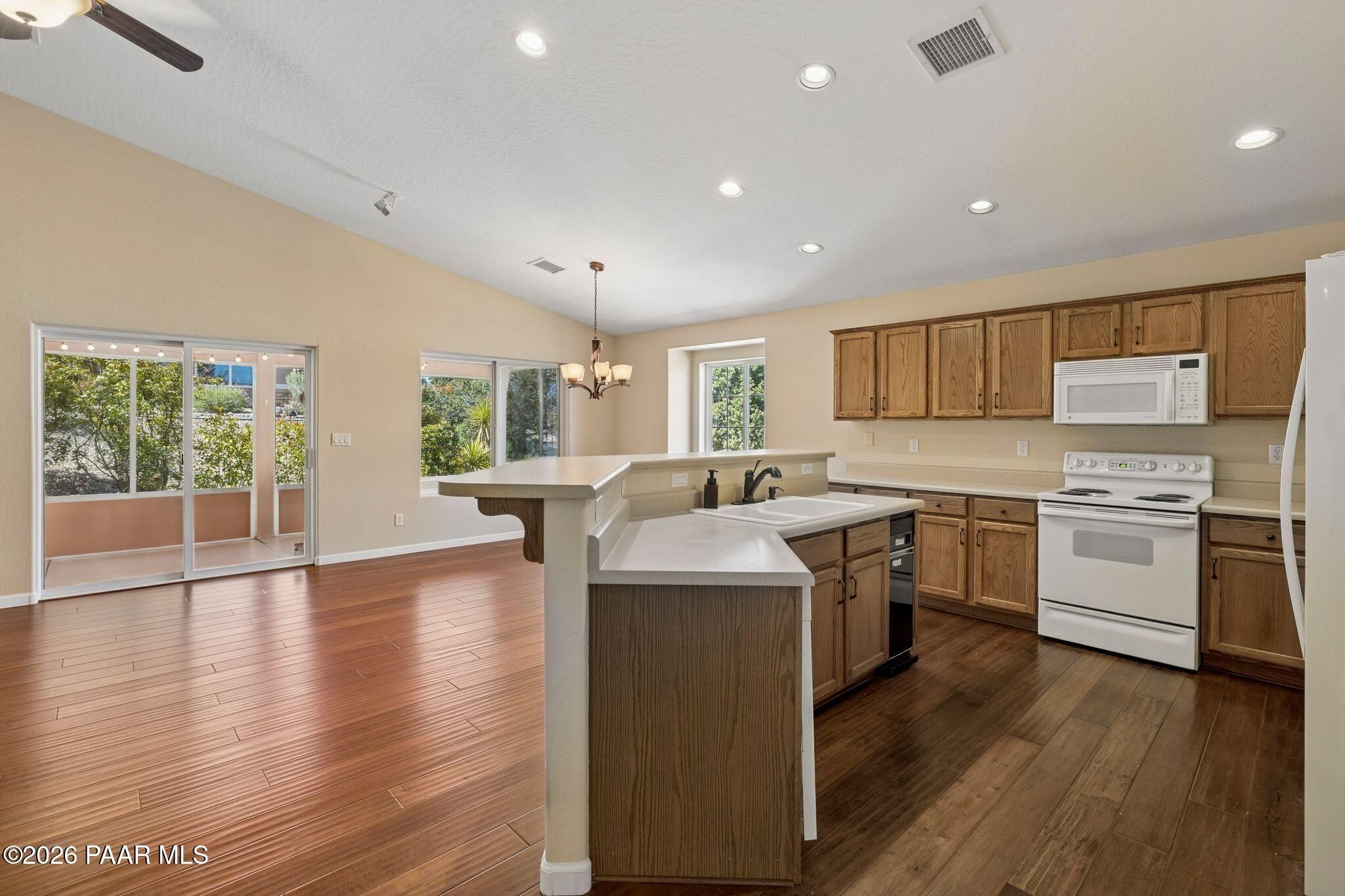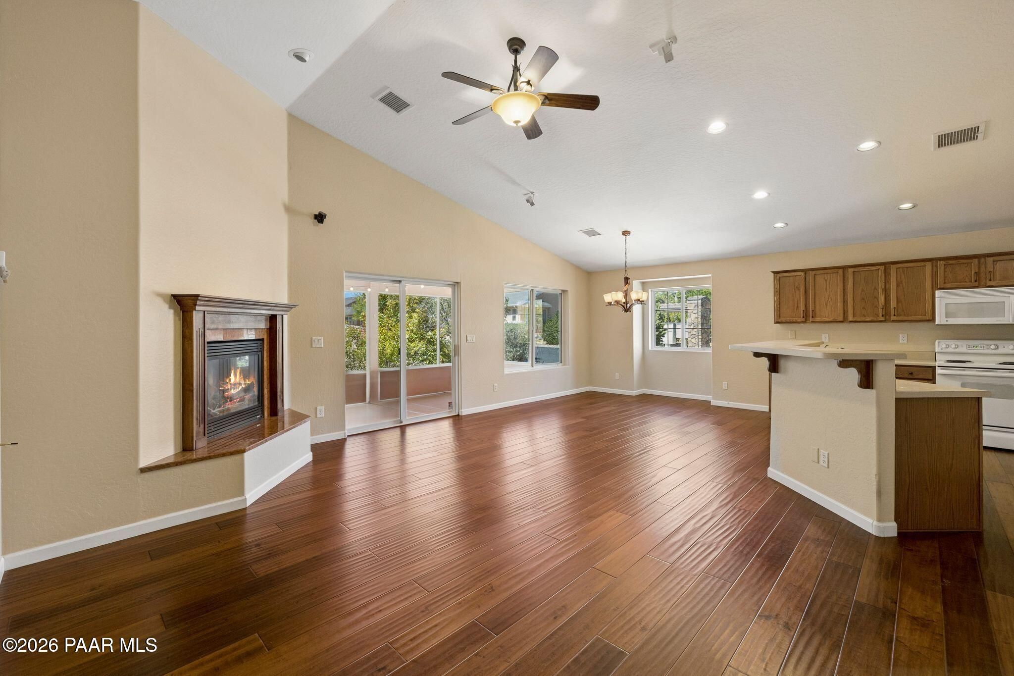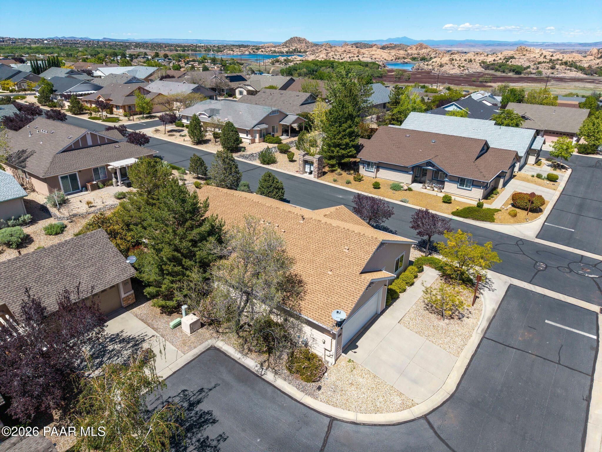 Located within the gated community of The Cottages at Prescott Lakes, this thoughtfully designed residence offers a balance of comfort, functionality, and access to a highly amenitized lifestyle within one of Prescott's premier golf communities. Featuring 2 bedrooms plus a dedicated office, the layout provides flexibility to accommodate a variety of living needs.Vaulted ceilings enhance the openness of the main living areas, while the split floor plan creates separation between spaces. The living room is anchored by a gas fireplace, adding warmth and a natural focal point.The kitchen and dining areas connect seamlessly, supporting both everyday living and entertaining. A screened-in sunroom extends the usable living space, offering a comfortable setting to enjoy the outdoors throughout the year.Prescott Lakes is known for its golf lifestyle and wide range of amenities, offering opportunities for recreation, connection, and leisure. Conveniently located near shopping, dining, and everyday conveniences, this property combines a well-designed interior with the benefits of a gated, amenity-rich community.