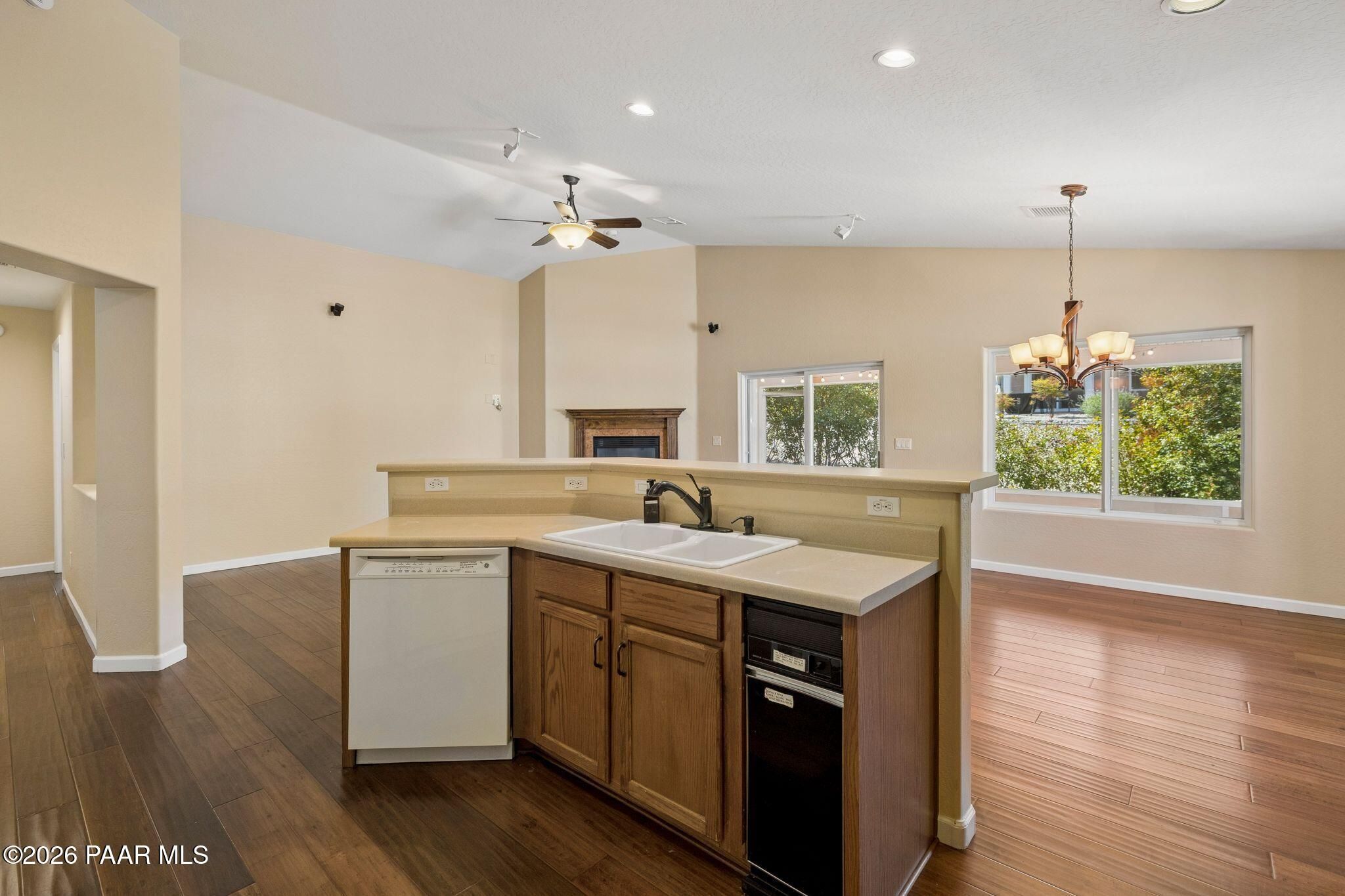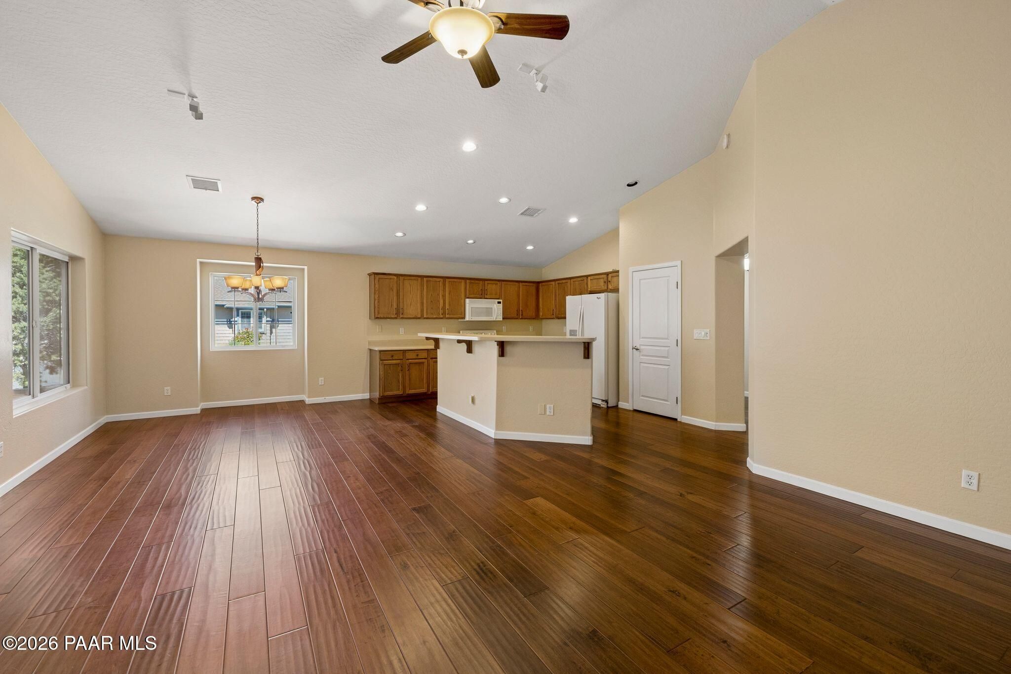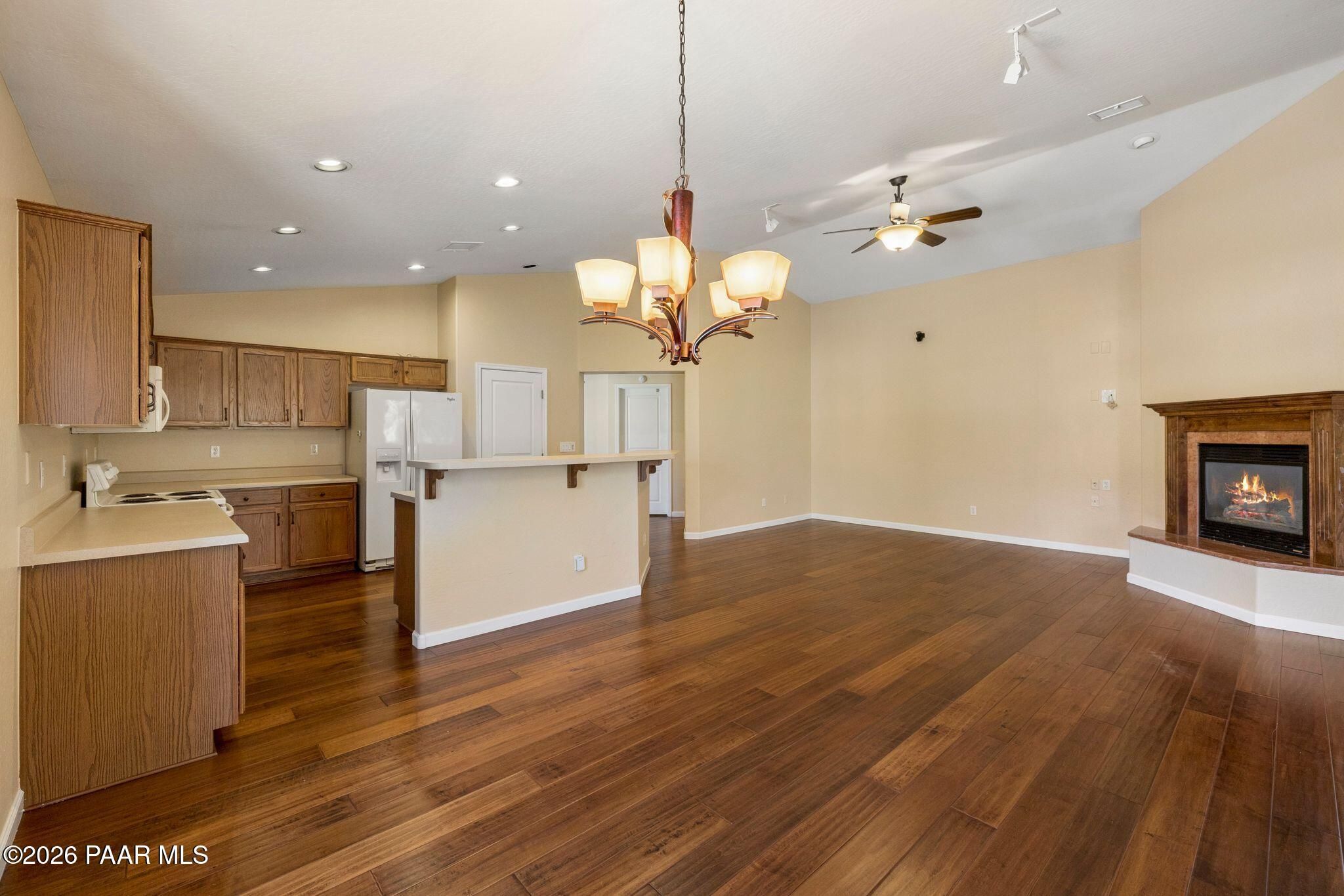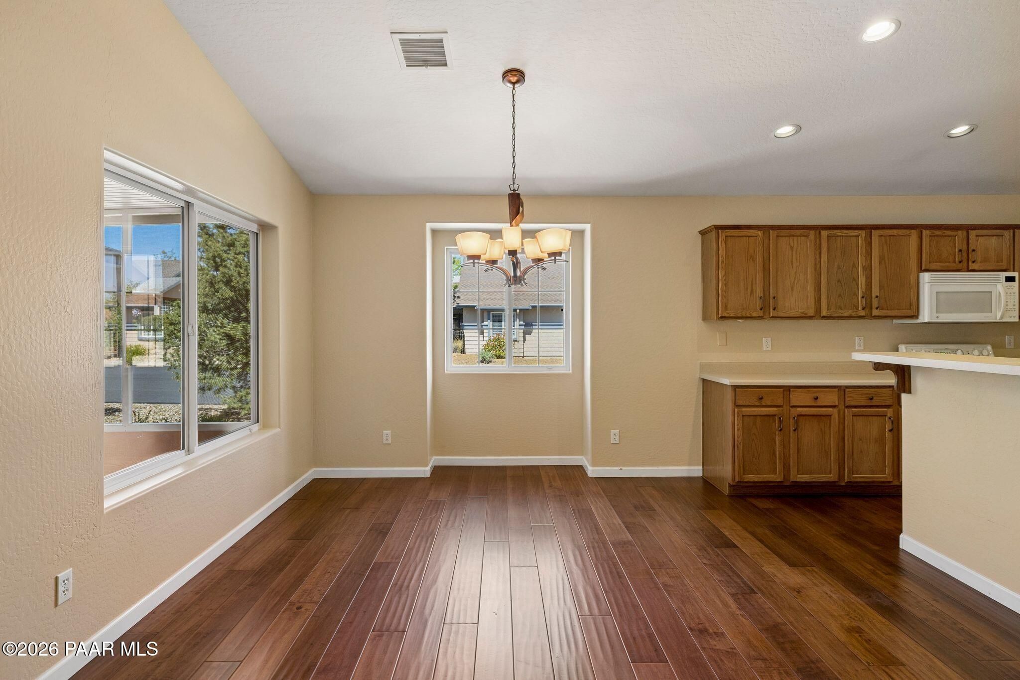 Located within the gated community of The Cottages at Prescott Lakes, this thoughtfully designed residence offers a balance of comfort, functionality, and access to a highly amenitized lifestyle within one of Prescott's premier golf communities. Featuring 2 bedrooms plus a dedicated office, the layout provides flexibility to accommodate a variety of living needs.Vaulted ceilings enhance the openness of the main living areas, while the split floor plan creates separation between spaces. The living room is anchored by a gas fireplace, adding warmth and a natural focal point.The kitchen and dining areas connect seamlessly, supporting both everyday living and entertaining. A screened-in sunroom extends the usable living space, offering a comfortable setting to enjoy the outdoors throughout the year.Prescott Lakes is known for its golf lifestyle and wide range of amenities, offering opportunities for recreation, connection, and leisure. Conveniently located near shopping, dining, and everyday conveniences, this property combines a well-designed interior with the benefits of a gated, amenity-rich community.