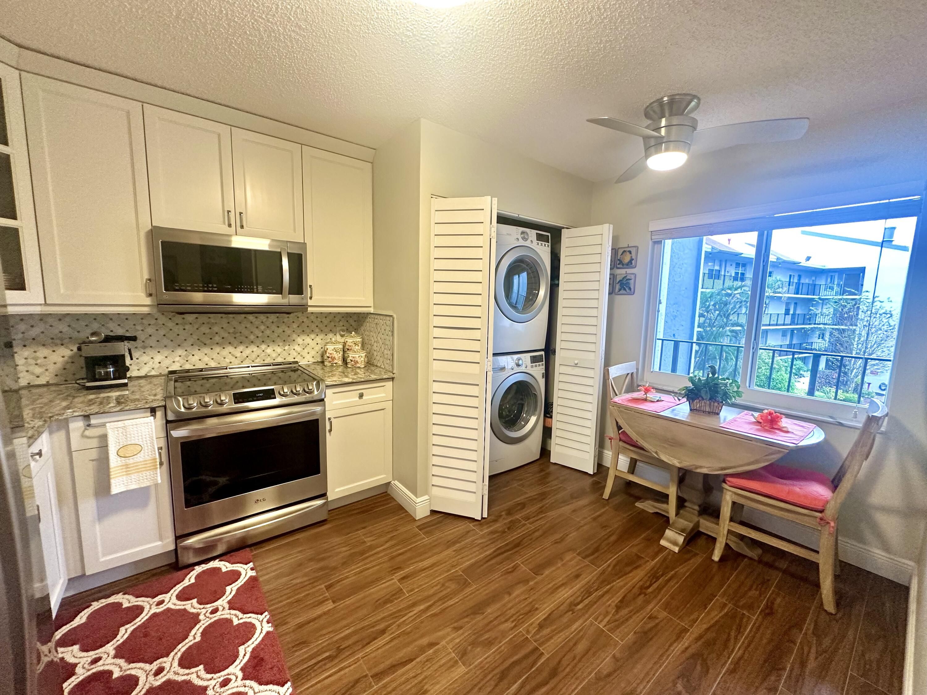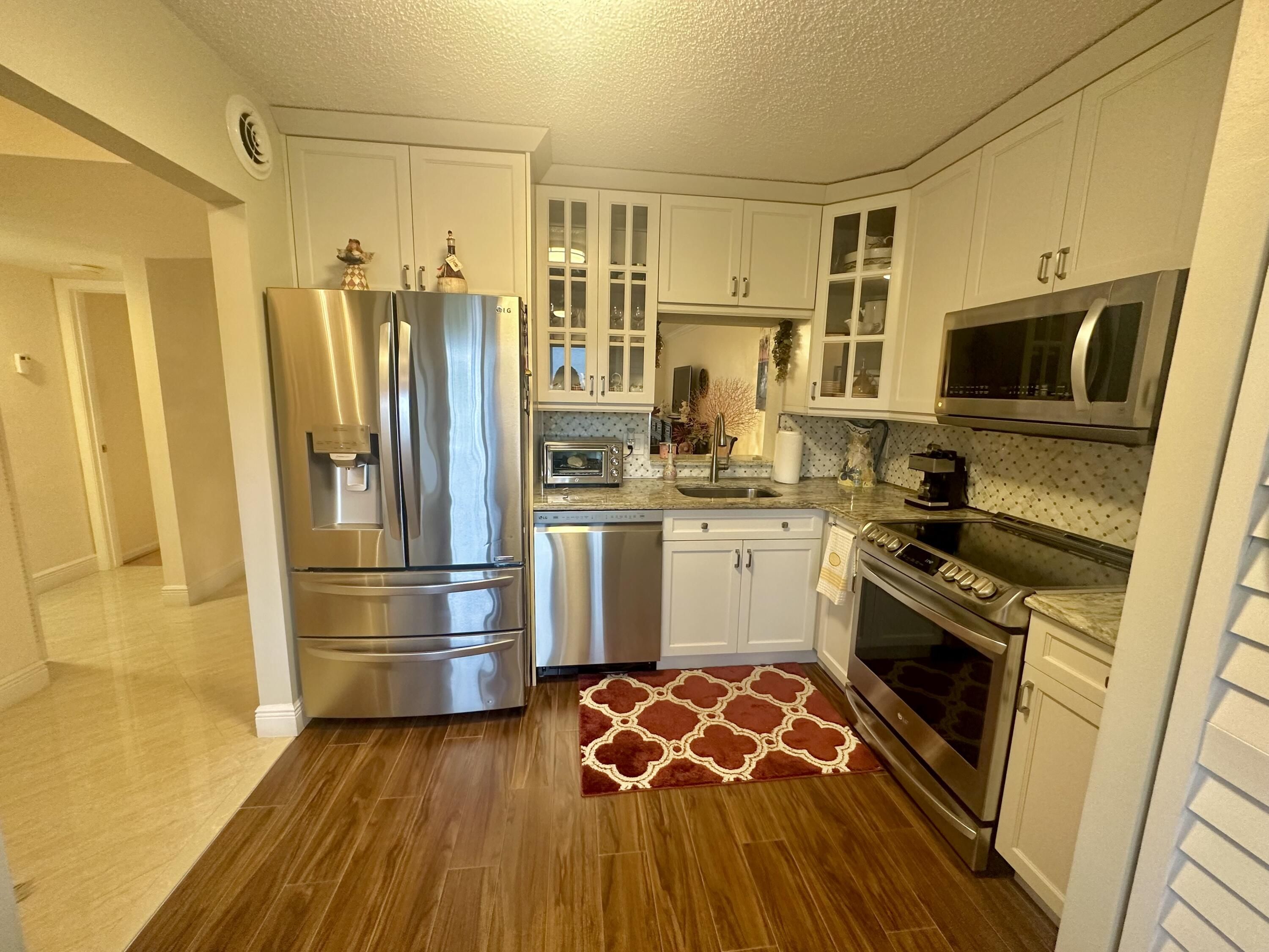 Experience tranquil living in this exquisite 2-bedroom, 2-bathroom condo. As you step inside this meticulously remodeled haven, attention to detail and top-of-the-line finishes greet you. The brand-new kitchen beckons with state-of-the-art appliances, effortlessly combining functionality with style. The bathrooms, equally reimagined, boast beautiful vanities, elegant lighting, and now, featuring new porcelain floors throughout the unit that adds an extra layer of refinement. Immerse yourself in relaxation and leisure at the pristine pool, an oasis beckoning for refreshing swims or sun-soaked repose. the new clubhouse, a true gem of this community. Inside, you'll discover a well-equipped gym where you can maintain an active lifestyle without ever leaving home.