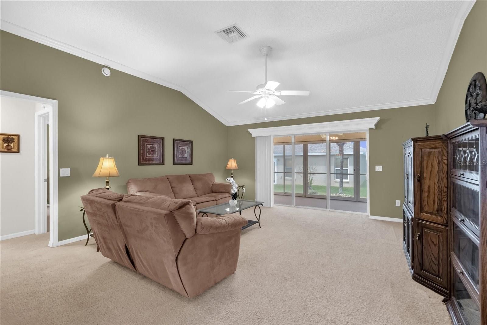 - Cathedral Ceiling(s), Ceiling Fan(s), Crown Molding, Eat-in Kitchen, High Ceilings, Living/Dining Room, Split Bedrooms