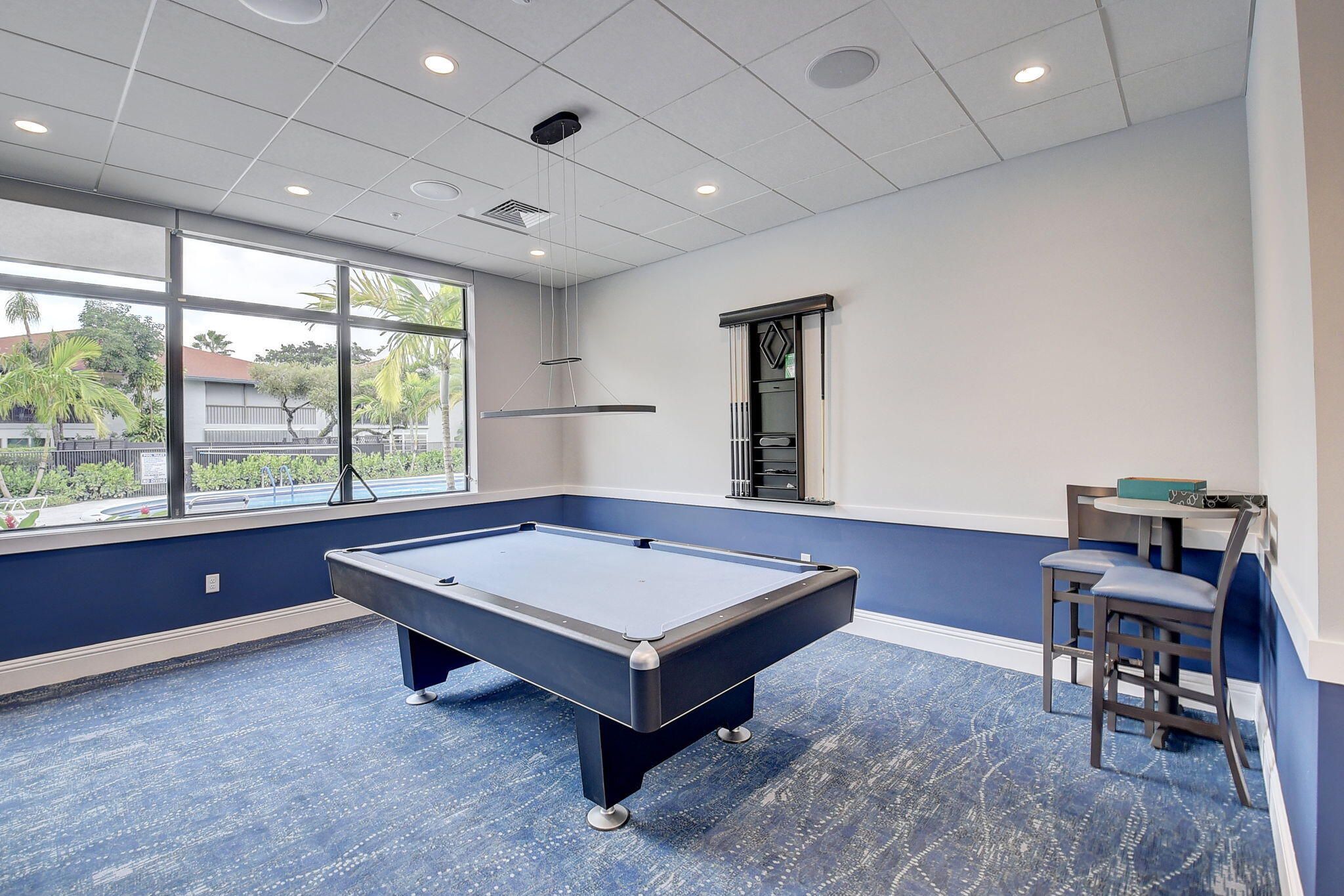 - Clubhouse, Community Room, Fitness Center, Game Room, Lobby, Pool, Shuffleboard, Sidewalks, Street Lights