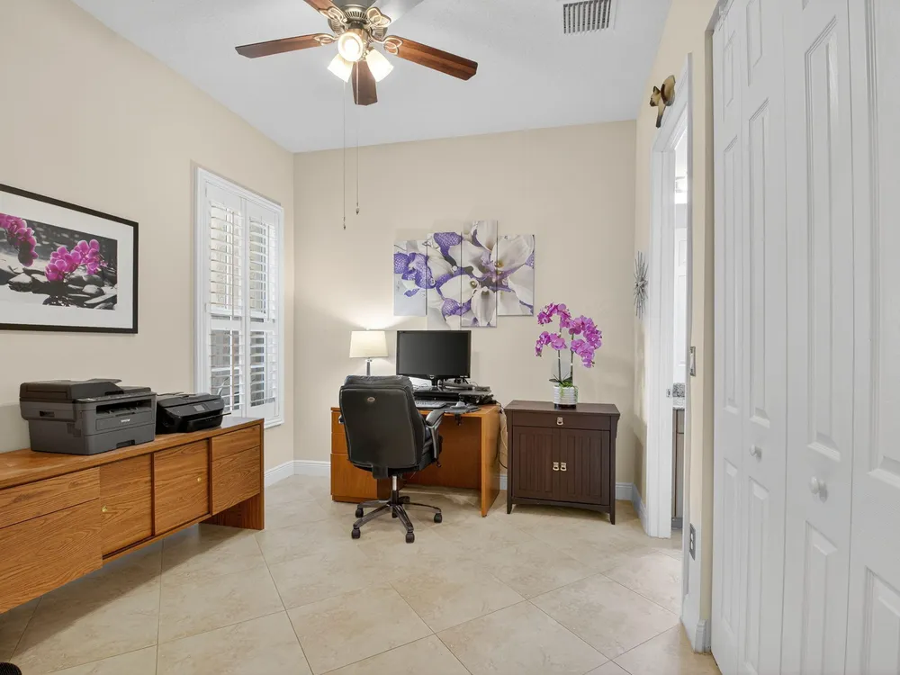 - Entry Level Living Area, Entrance Foyer, Pantry, Split Bedrooms, Walk-In Closet(s), Home Office, Family Room, Florida/Dining Room, Impact Glass, Plantation Shutters, Dual Sinks, Primary Downstairs, Separate Shower
