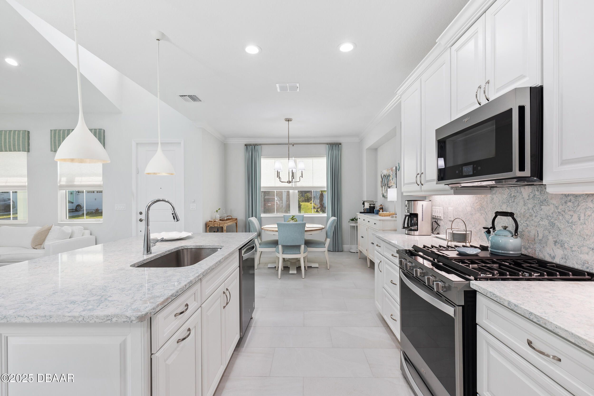 SELLER SAYS BRING ALL OFFERS. Welcome to this gorgeous Dreamsicle cottage, professionally designed with elegance, charm and coziness in mind. Adorned with Ethan Allen, Serena & Lily, Aerin pendants. Almost every aspect upgraded to highest level including plank tile flooring, carpet, hardware, fixtures, dimmers, fans in every room and porch. Ecobee Smart Thermostat, Recessed lighting, Hunter Douglas motorized shades and custom valances on every window. The vaulted living room ceiling inside this very well appointed cottage, chefs delight kitchen, 42'' white cabinets with quartz backsplash & matching quartz countertops might just make you pinch yourself. Luxury expands to the Laundry Room as well with brand new front load washer/dryer, upgraded upper cabinets and Ethan Allen coastal artwork in place. If that's not enough you'll love the primary bedroom & ensuite spa bath, tile to ceiling, seamless glass shower door. Your 55+ life will be social and beyond fun, in Margaritaville styl