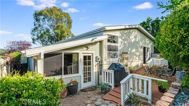 Tucked within the highly sought-after Indian Hills 55+ community of San Luis Bay Estates, 148 River View is a beautifully updated Craftsman-style home that blends comfort, flexibility, and serene Central Coast living. Built in 2005 and thoughtfully enhanced, this light-filled residence welcomes you with expansive front windows and warm luxury vinyl plank flooring that create an inviting, airy atmosphere throughout. Designed for both everyday living and effortless entertaining, the home offers three spacious bedrooms, two bathrooms, and a versatile office that can easily adapt to your needs. At the heart of the home, the generous kitchen features a center island, stainless steel appliances, a cozy breakfast nook, and built-in desk and storage—perfect for staying organized while enjoying the space. Stylish pendant lighting adds a modern touch, while nearby access to the indoor laundry room and tandem two-car garage ensures convenience. The primary suite serves as a private retreat, complete with a soaking tub, separate shower, dual-sink vanity, and direct access to a peaceful deck overlooking the garden—an ideal spot to start or end your day. Two additional bedrooms and a full guest bath provide comfortable accommodations for visitors. Step outside to discover a thoughtfully landscaped backyard with mature trees, privacy fencing, and charming brick and stone pathways that wind through the garden. A detached bonus room offers endless possibilities, whether used as a home office, guest quarters, or creative studio, while a dedicated golf cart garage adds extra practicality. With its flexible layout, tasteful updates, and tranquil setting, this exceptional property offers the perfect opportunity to enjoy the very best of Central Coast living.