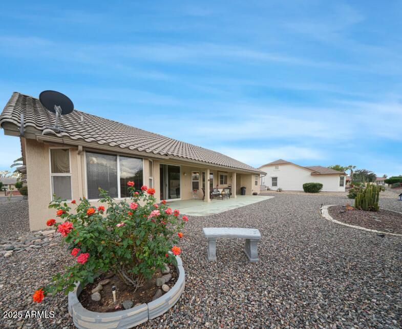 This Ventura floor plan offers exceptional natural light and a thoughtful layout. The home features an extended primary suite with a charming bay window, creating the perfect retreat with room for a sitting area. A versatile office/hobby room provides added flexibility, along with an open family room AND living room. Enjoy a sunny, inviting kitchen with its own bay-window breakfast nookâ€''ideal for morning coffee. The formal living and dining areas flow seamlessly, offering plenty of space for entertaining. Step outside to a covered, extended patio designed for year-round outdoor living. Located in a highly desirable area close to four golf courses, shopping, restaurants, banks, and full medical services. Community amenities include two recreation centers with heated pools, spas, and mor