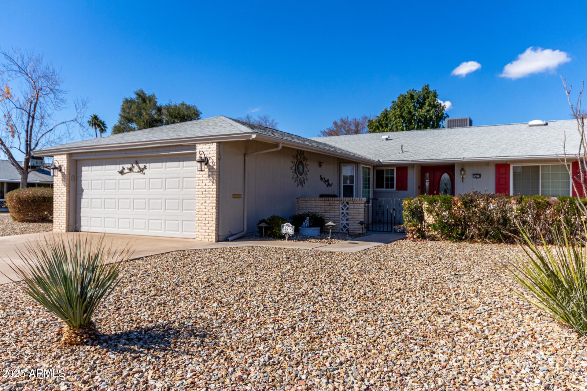 A charming 2 bed, 2 bath townhome in Sun City is now for sale! Featuring a 2 car garage and a quaint front patio, it's sure to be the home for you! Inside you will find sizeable dining & living areas w/soft carpet in all the right places and custom palette throughout. The galley kitchen is equipped w/ample cabinetry, solid surface counters, tile backsplash, built-in appliances, and a breakfast nook w/a lovely bay window. Enjoy a good night's sleep in the primary bedroom, showcasing a private ensuite for added convenience. Also including a cozy backyard covered patio where you can spend a relaxing summer evening, this home is a true gem! The home is conveniently located to the SunDial Community Center. Don't miss out!