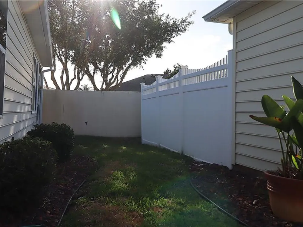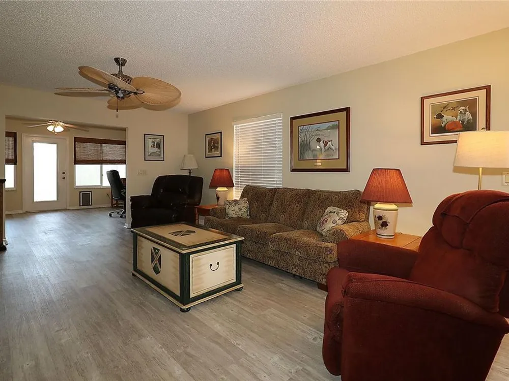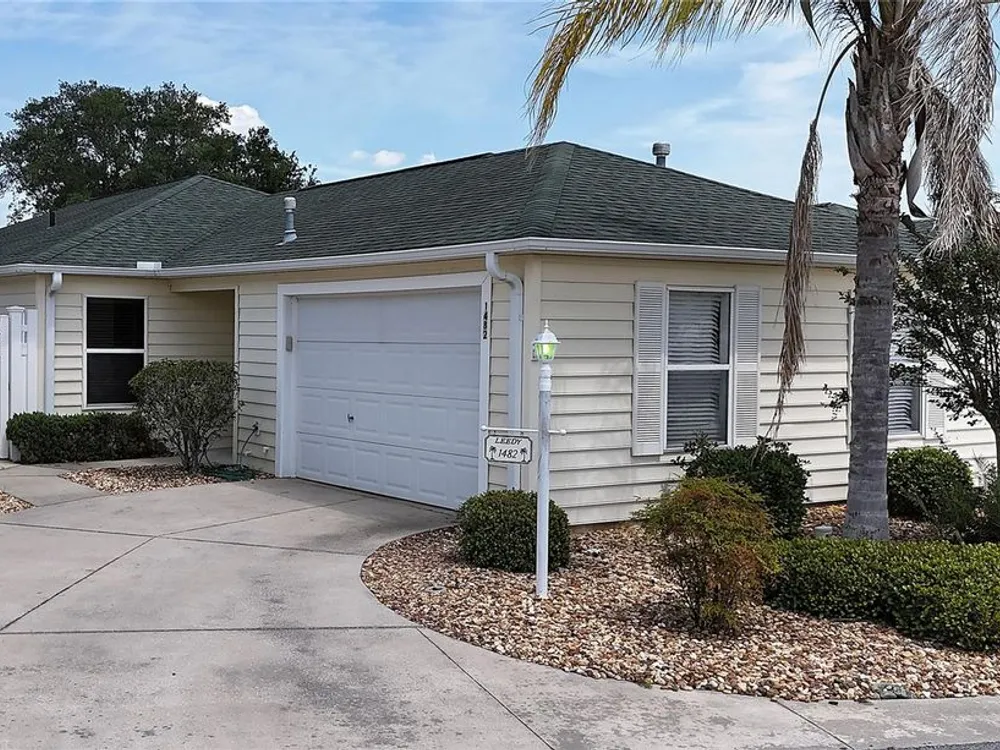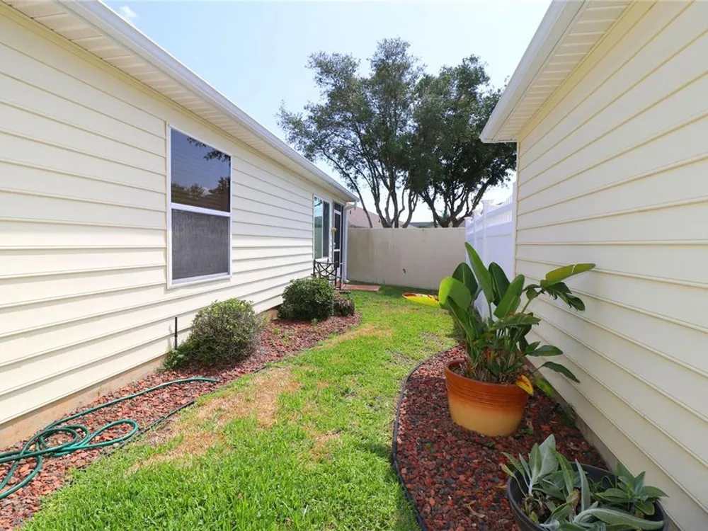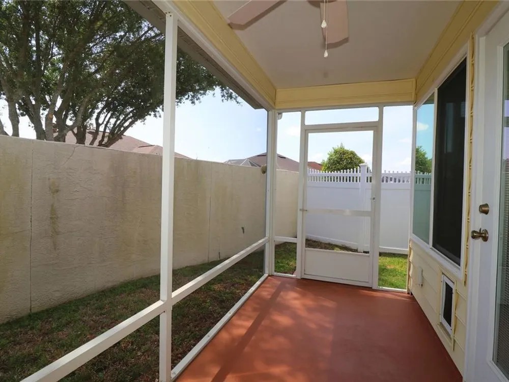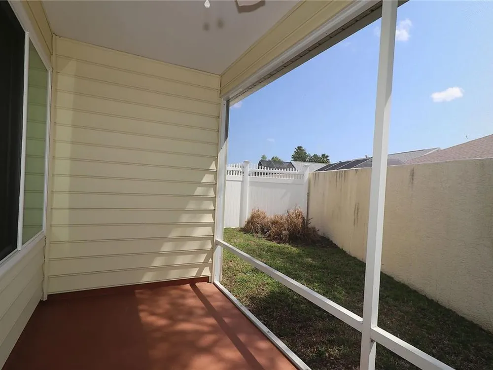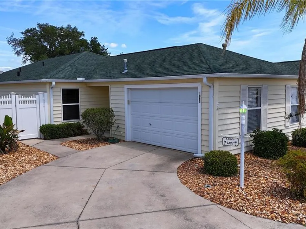 Welcome to this charming 2/2 Marathon Courtyard Villa in the desirable Villas Escondido, perfectly situated near everything The Villages has to offer! You’re just minutes from the Savannah Center, Glenview Country Club, Nancy Lopez Golf Course, and both Spanish Springs and Lake Sumter Landing town squares. Medical offices and The Villages Hospital are also close by for added convenience. Inside, you’ll immediately notice the spacious feel thanks to a thoughtful stretch that added a 12x15 office/den — perfect for working from home, hobbies, or an extra sitting area. The home features beautiful new luxury vinyl plank flooring throughout, with tile in the bathrooms. The primary suite has also been expanded and now boasts two walk-in closets and a gorgeous custom shower. (Primary bedroom furniture does not convey.) The guest bedroom comes complete with a queen bed, dresser, and end tables, and is conveniently located near the second bath with a tub/shower combo. This home comes mostly furnished, including a 75” TV, sofa, recliner, dining set, and more — just bring your personal touches. The kitchen features a gas range and plenty of counter space, and the laundry is tucked into the oversized 1.5-car garage. Enjoy mornings or evenings on the screened lanai overlooking your private, walled courtyard — perfect for pets or gardening. Major updates include: Roof (2015), HVAC (2015), and Hot Water Heater (2022). Best of all, the BOND IS PAID! Maint $208.89, Fire $320.71, Taxes $1563.64.