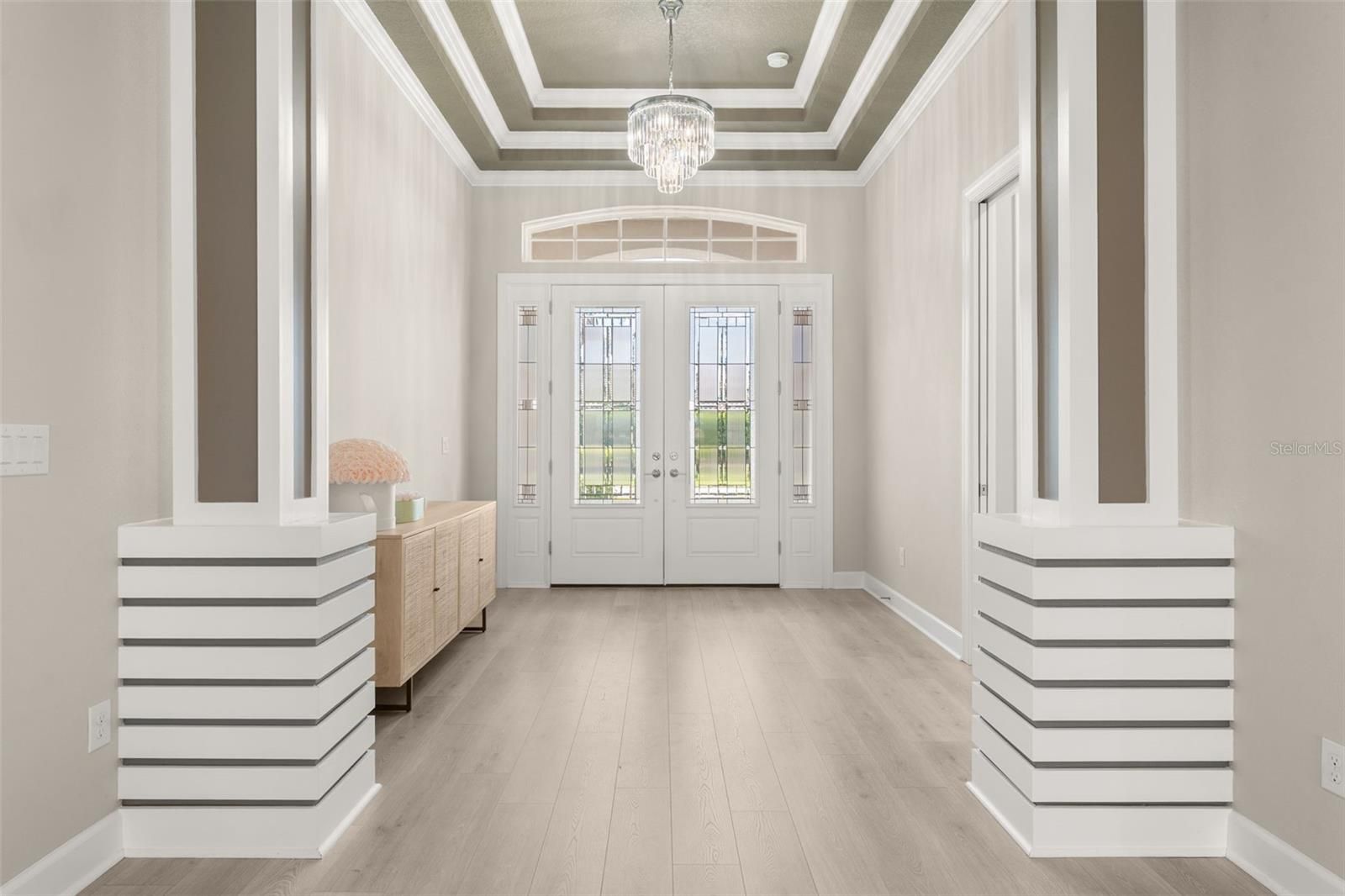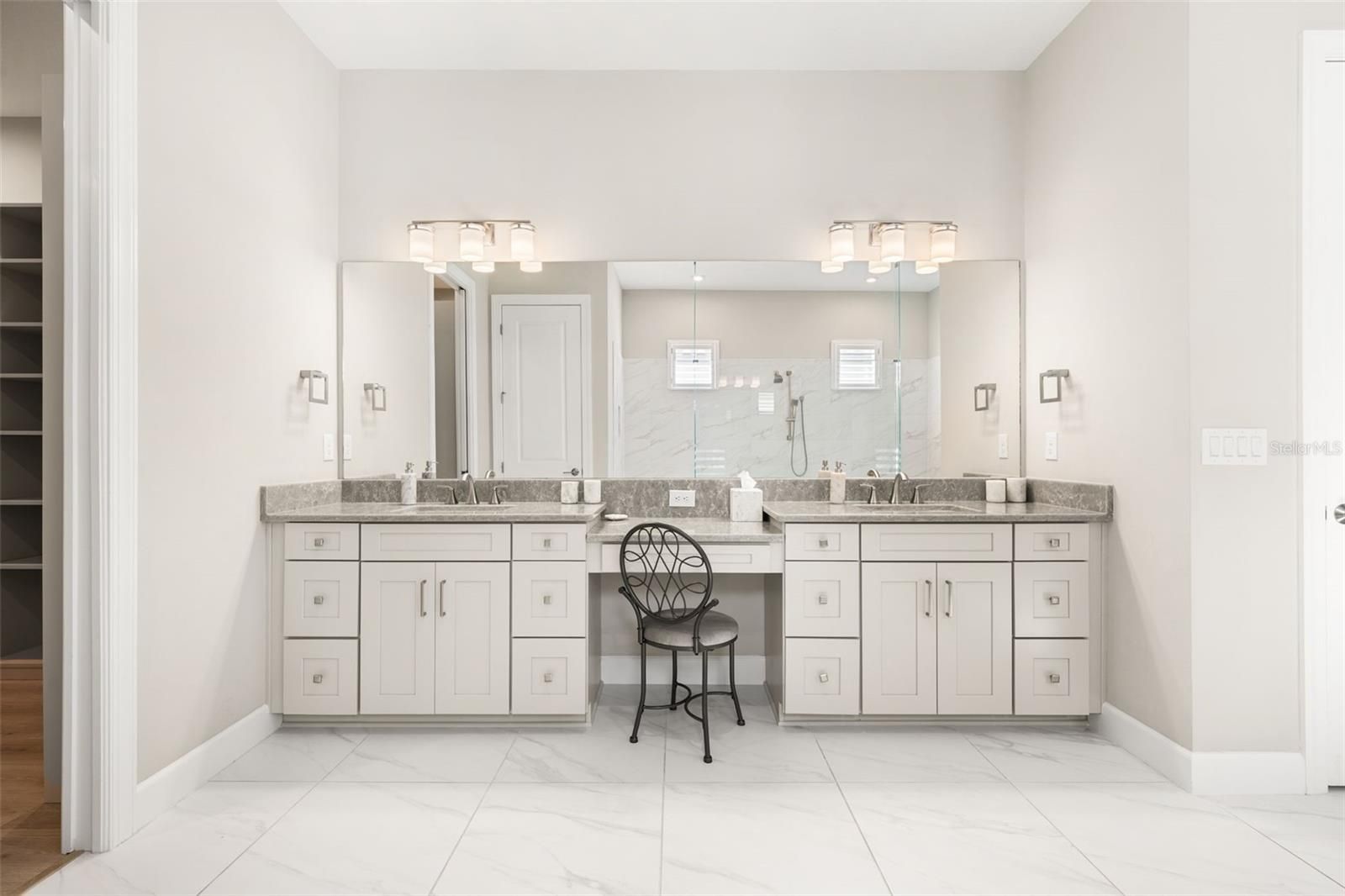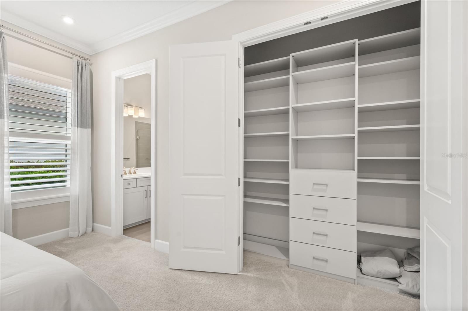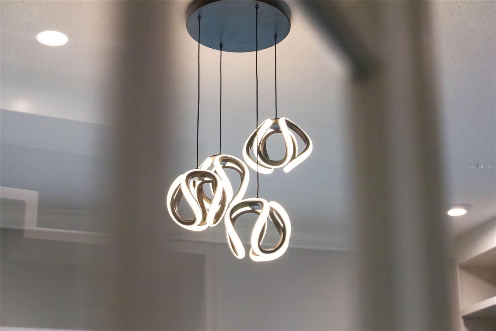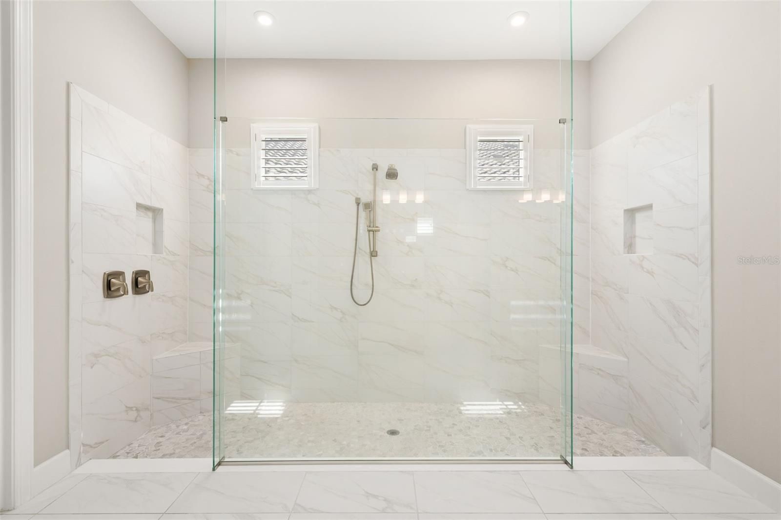 - Built-in Features, Ceiling Fan(s), Crown Molding, Eat-in Kitchen, High Ceilings, Living/Dining Room, Open Floorplan, Main Level Primary, Solid Surface Counters, Solid-Wood Cabinets, Thermostat, Tray Ceiling(s), Walk-In Closet(s)