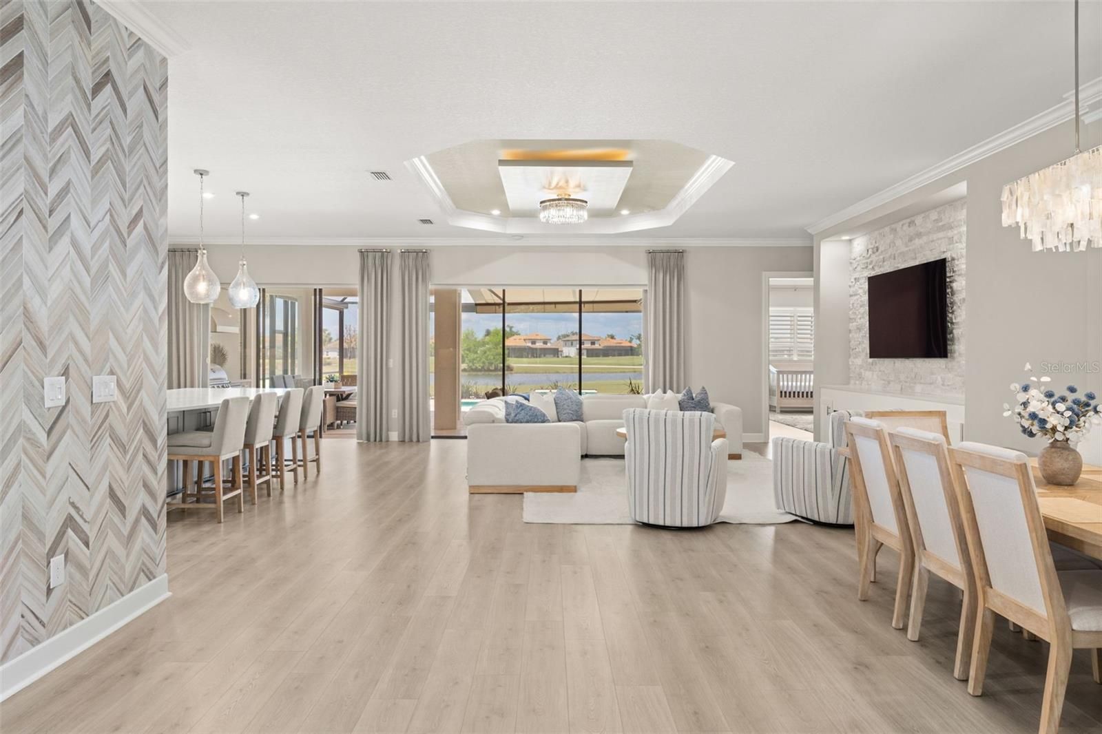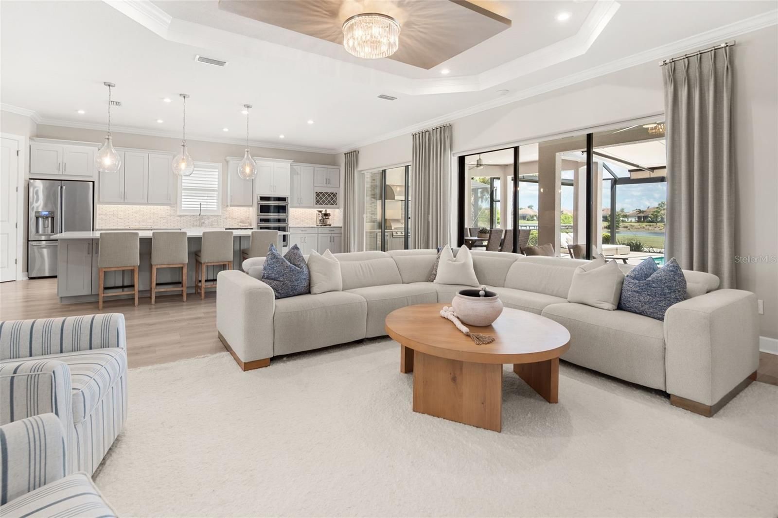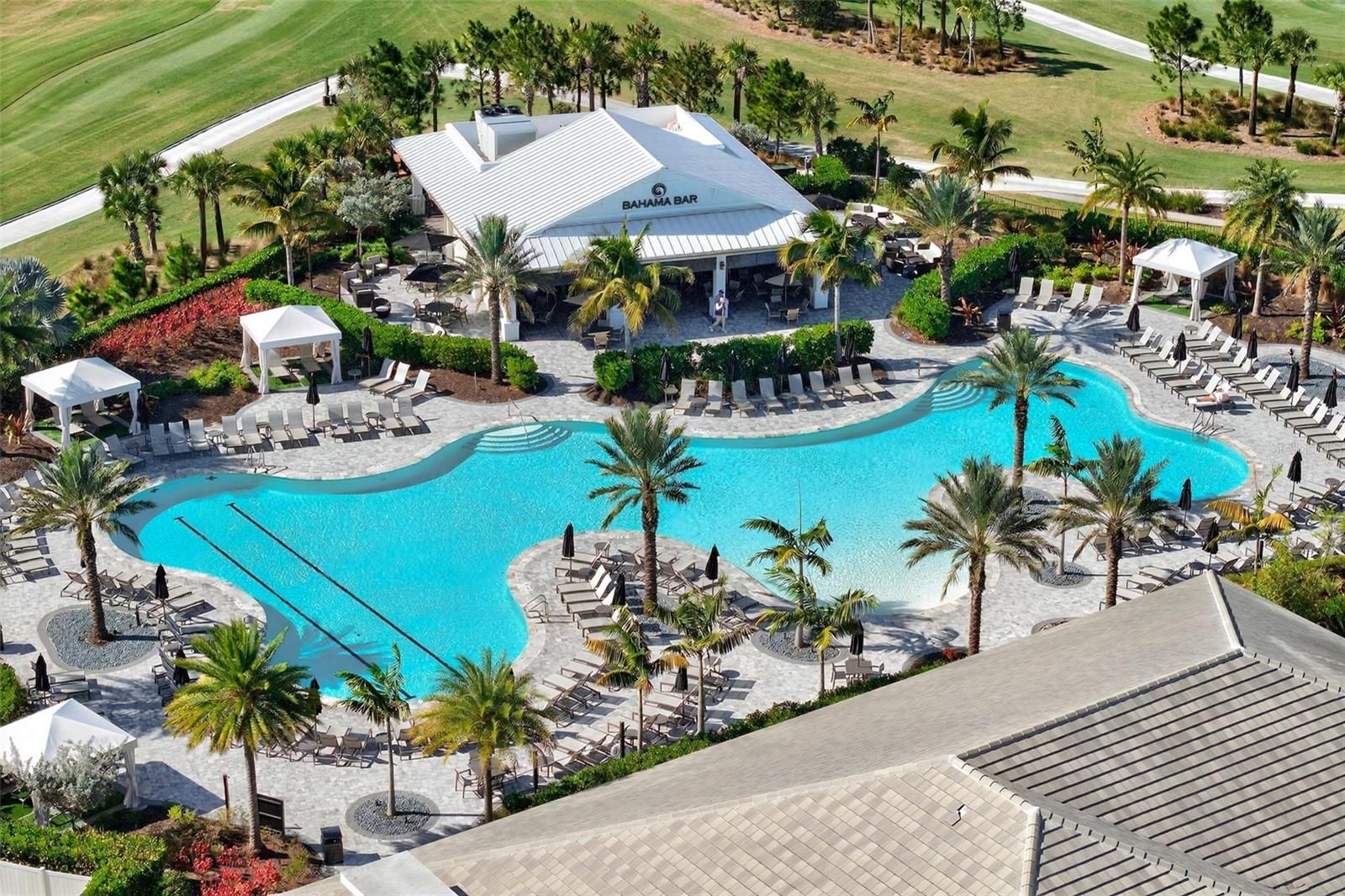 GOLF MEMBERSHIP INCLUDED! FULLY FURNISHED! RARE opportunity to own a GOLF-DEEDED home on the 14th hole in the highly desirable Esplanade at Azario in Lakewood Ranch! This upgraded Pallazio model by Taylor Morrison offers 3 bedrooms + den, 3 baths, and a 2-car garage with a bright, open layout built for entertaining and luxury living. Designer chef’s kitchen with oversized island, stone countertops, premium stainless steel appliances, and gas cooktop flows seamlessly into the living area with custom finishes and sliders opening to your private resort-style lanai. Step outside to a SHOWSTOPPER backyard featuring a heated saltwater pool & spa, fully equipped outdoor kitchen, and panoramic golf course and water views—perfect for unforgettable sunsets and entertaining guests. The spacious primary suite offers a spa-like bath and tranquil pool views, while guests enjoy private bedrooms and full baths. Loaded with upgrades throughout! Generac whole home Generator! Enjoy world-class amenities: championship golf, resort pool, clubhouse, fitness center, tennis, pickleball, dining, and more. Prime location near top-rated schools, shopping, dining, and Gulf beaches. THIS IS THE ONE—luxury, lifestyle, and location all in one. Schedule your showing today before it’s gone!