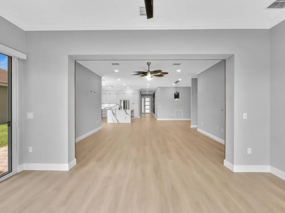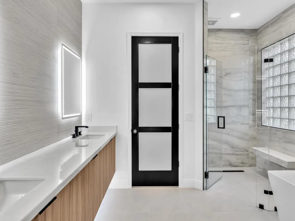 - Built-in Shelving, Closet Cabinetry, Custom Mirrors, Entry Level Living Area, Entrance Foyer, Kitchen Island, Pantry, High Ceilings, Walk-In Closet(s), Home Office, Separate/Formal Dining Room, Blinds, Impact Glass, Sliding Window(s), Dual Sinks, Primary Downstairs, Sitting Area In Primary Bedroom, Separate Shower, Bathtub, Storm Shutters