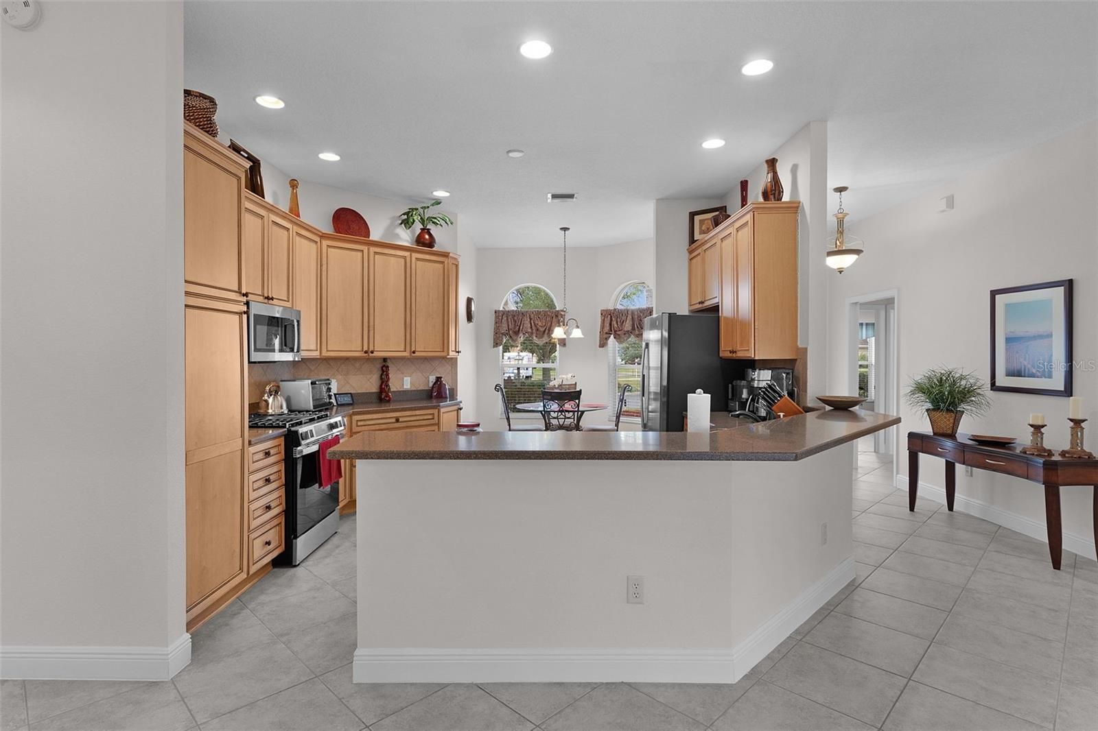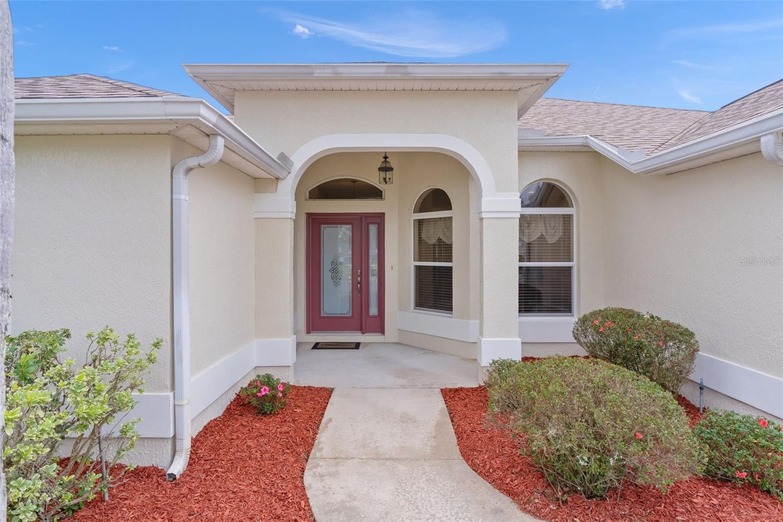 ~POOL/SPA HOME~ ~2023 ROOF~ ~2021 HVAC~ ~2024 Hot Water Heater~ ~NEW KITCHEN APPLIANCES~ ~FRESHLY PAINTED INSIDE AND OUT~ ~FURNITURE PACKAGE AVAILABLE SEPARATELY~ Tucked away on a quiet CUL-DE-SAC in the heart of MALLORY SQUARE, this GARDENIA model offers the kind of privacy and serenity that’s hard to find—set on a large lot surrounded by mature landscaping for a truly peaceful retreat. Step inside to soaring VAULTED CEILINGS and CERAMIC tile flooring flowing through the entry, living room, dining room, and kitchen. The bright, open living area features a ceiling fan and an easy flow into the beautifully updated kitchen, complete with UPGRADED CABINETRY, CORIAN countertops, NEW STAINLESS-STEEL appliances, TILE backsplash, top roll-out cabinets, a NEW FAUCET, a NEW DISPOSAL and a cozy eat-in area—perfect for casual mornings or entertaining friends. The primary suite is a standout, showcasing NEW LUXURY VINYL PLANK flooring, high vaulted ceilings, a ceiling fan, TWO WALK-IN CLOSETS, and sliders leading directly to the lanai. The ensuite bath offers a TILED ROMAN SHOWER, double sinks, CORIAN countertops, upgraded cabinets, a NEW FAUCET, a linen closet, and a private water closet. Guests will feel right at home in the guest bedroom with NEW LUXURY VINYL PLANK flooring, vaulted ceilings, and a ceiling fan, adjacent to a guest bath with a tiled tub/shower combo, CORIAN countertops, upgraded cabinetry, a NEW FAUCET, and a linen closet. The third bedroom also features NEW LUXURY VINYL PLANK flooring, a built-in closet, and a ceiling fan—ideal for a home office or hobby space. Enjoy the Florida lifestyle year-round in the STRETCHED LANAI with freshly painted textured flooring, a birdcage with NEW SCREENING, telescoping sliders, an OUTDOOR KITCHEN, and 2 ceiling fans. The outdoor kitchen includes a built-in grill, hood, sink and refrigerator. Step outside to your own HEATED, SALTWATER POOL AND HOT TUB with WATERFALLS, allowing you to relax in the sloping depth of approximately 3–5 feet, perfect for cooling off or unwinding after a day of activities. Additional highlights include INSIDE LAUNDRY with ceramic tiles, GE appliances, laundry tub, and cabinets. This home blends comfort, style, and tranquility—an exceptional opportunity to enjoy the best of life in The Villages. Just minutes from CR 466 with an abundant amount of shopping, dining and medical. It is a short golf cart ride to Lake Sumter Landing, Mallory Hill County Club and Golf Course and SO MUCH more!