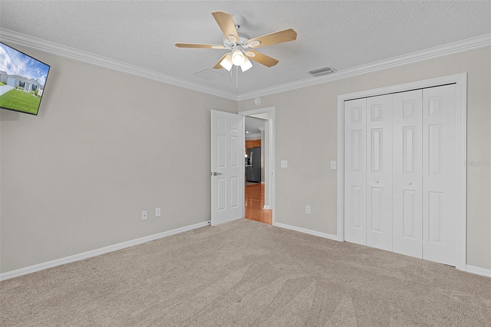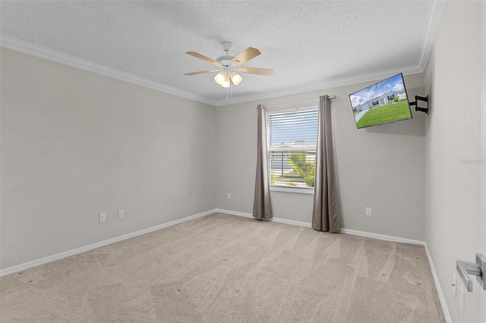 - Ceiling Fan(s), Crown Molding, Kitchen/Family Room Combo, Living/Dining Room, Open Floorplan, Main Level Primary, Solid Surface Counters, Vaulted Ceiling(s), Walk-In Closet(s)