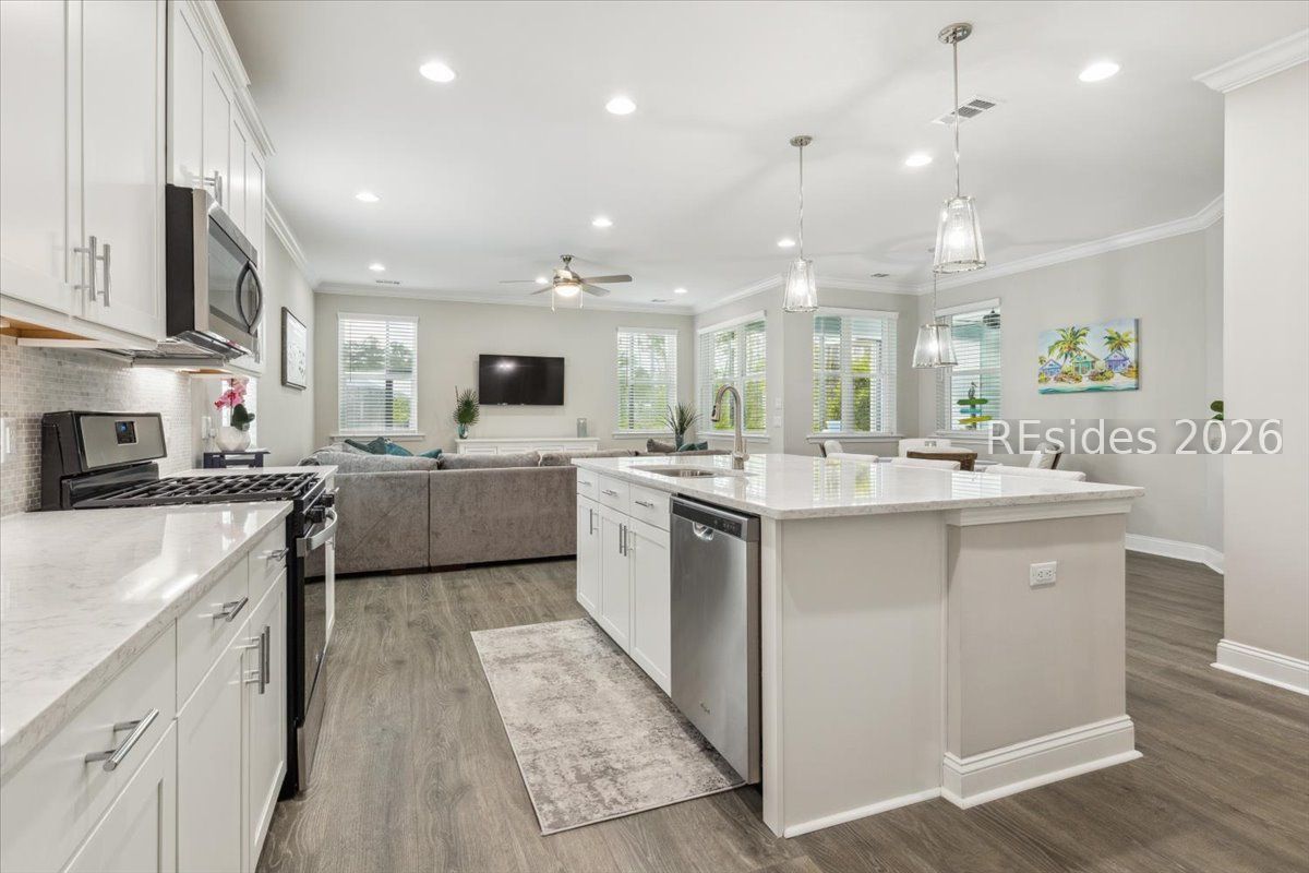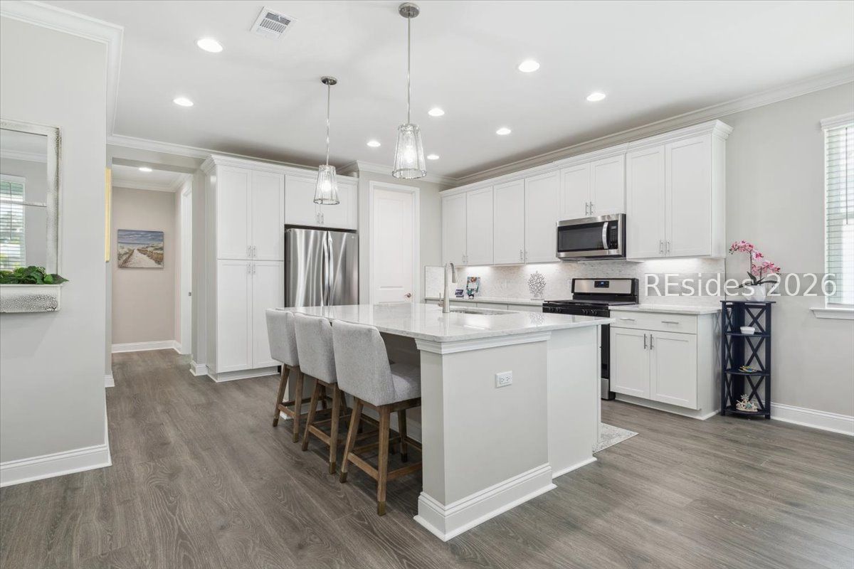 Welcome to Paradise at 1486 St Somewhere Latitude Margaritaville Hilton Head. Fall in love the moment you step into this LARGE, beautifully decorated Trinidad model in the highly sought-after Island Collection. Built in 2022 and impeccably maintained, this home is pristine, neutral, and absolutely move-in ready. Home Highlights: 3 Bedrooms- 3.5 Baths Rare 3-Car Garage Full IMPACT-rated windows for peace of mind. Step outside to your private screened lanai & birdcage -the perfect place for morning coffee or sunset cocktails while soaking in that laid-back Margaritaville vibe. Upgrades You'll Love: Gas range for chef-style cooking Quartz countertops & 42" cabinetry Elegant 8' interior doors & crown molding Recessed lighting throughout Whole-house water filtration system Epoxy-finished lanai, birdcage & garage Landscaping, lawn care & irrigation included. This home truly checks every box-space, style, security, and resort-style living. Enjoy world-class amenities, endless clubs, and a lifestyle that feels like vacation every single day. Come see why life is sweeter at Latitude Margaritaville Hilton Head Bring your flip flops... paradise is calling! Grass digitally enhanced, because, hey, we have winter here too! PRR