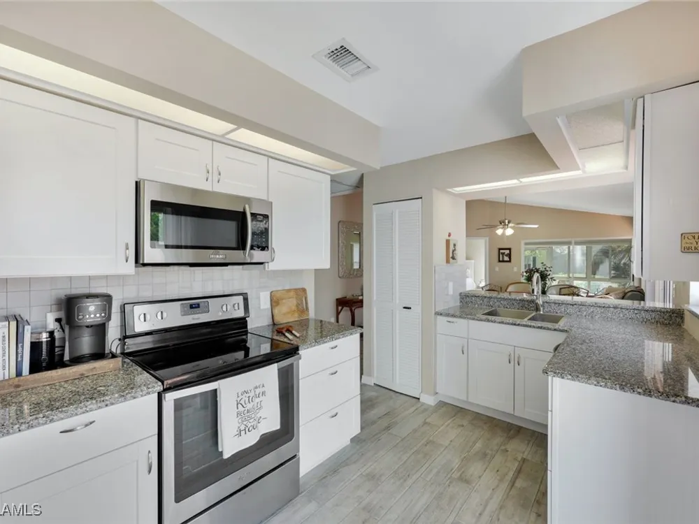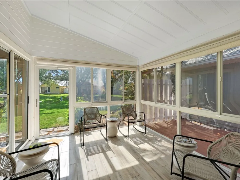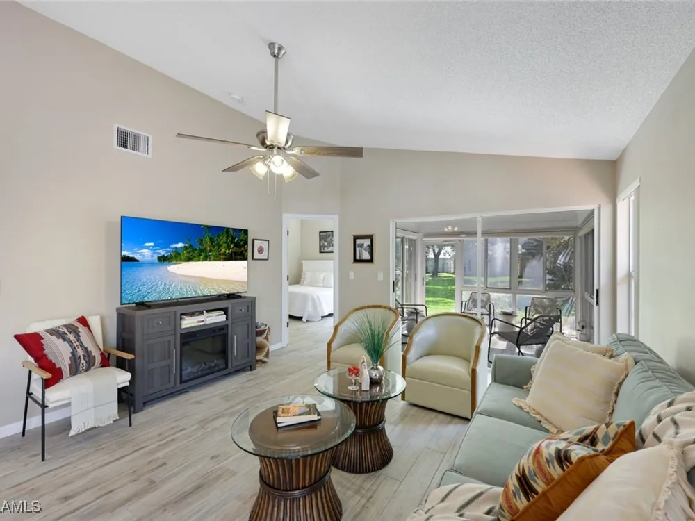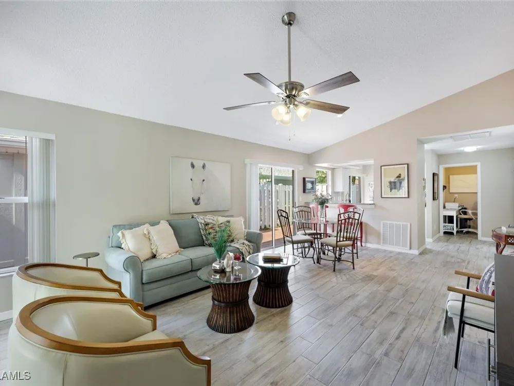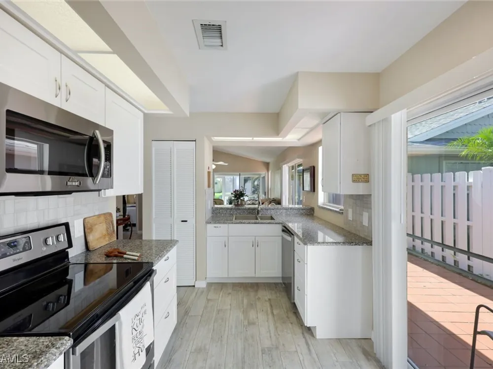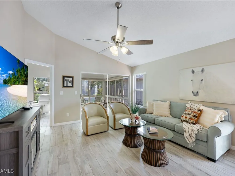 4.99% Interest Rate on this Home! Coastal Elegance in Gulf Harbour Yacht, Golf & Country Club Experience the epitome of Florida living in this beautifully maintained 3-bedroom, 2-bathroom home nestled within the prestigious, gated Gulf Harbour Yacht, Golf & Country Club. Boasting vaulted ceilings in the living room, dining area, primary suite, and en-suite bath, this residence exudes a sense of spaciousness and light. The kitchen is adorned with white cabinetry and sleek granite countertops, perfect for culinary enthusiasts and entertaining alike. The primary suite features a generous walk-in closet, while the large, fenced side patio offers a private outdoor retreat for relaxation or gatherings. Recent updates include a new A/C system installed in 2023 and new, glass storm doors, ensuring year-round comfort. Residents enjoy access to an array of amenities, including a community pool, as well as optional membership to the clubhouse, and championship golf courses. Situated just 10 minutes from the pristine beaches of Sanibel and Captiva Islands, and in close proximity to the Caloosahatchee River, Fort Myers Beach, and the vibrant downtown River District, this home offers unparalleled access to Southwest Florida's finest attractions. Nature enthusiasts will appreciate nearby destinations like the J.N. "Ding" Darling National Wildlife Refuge and Six Mile Cypress Slough Preserve, while history buffs can explore the Edison and Ford Winter Estates. Embrace a lifestyle of comfort, convenience, and coastal charm in this exceptional property.