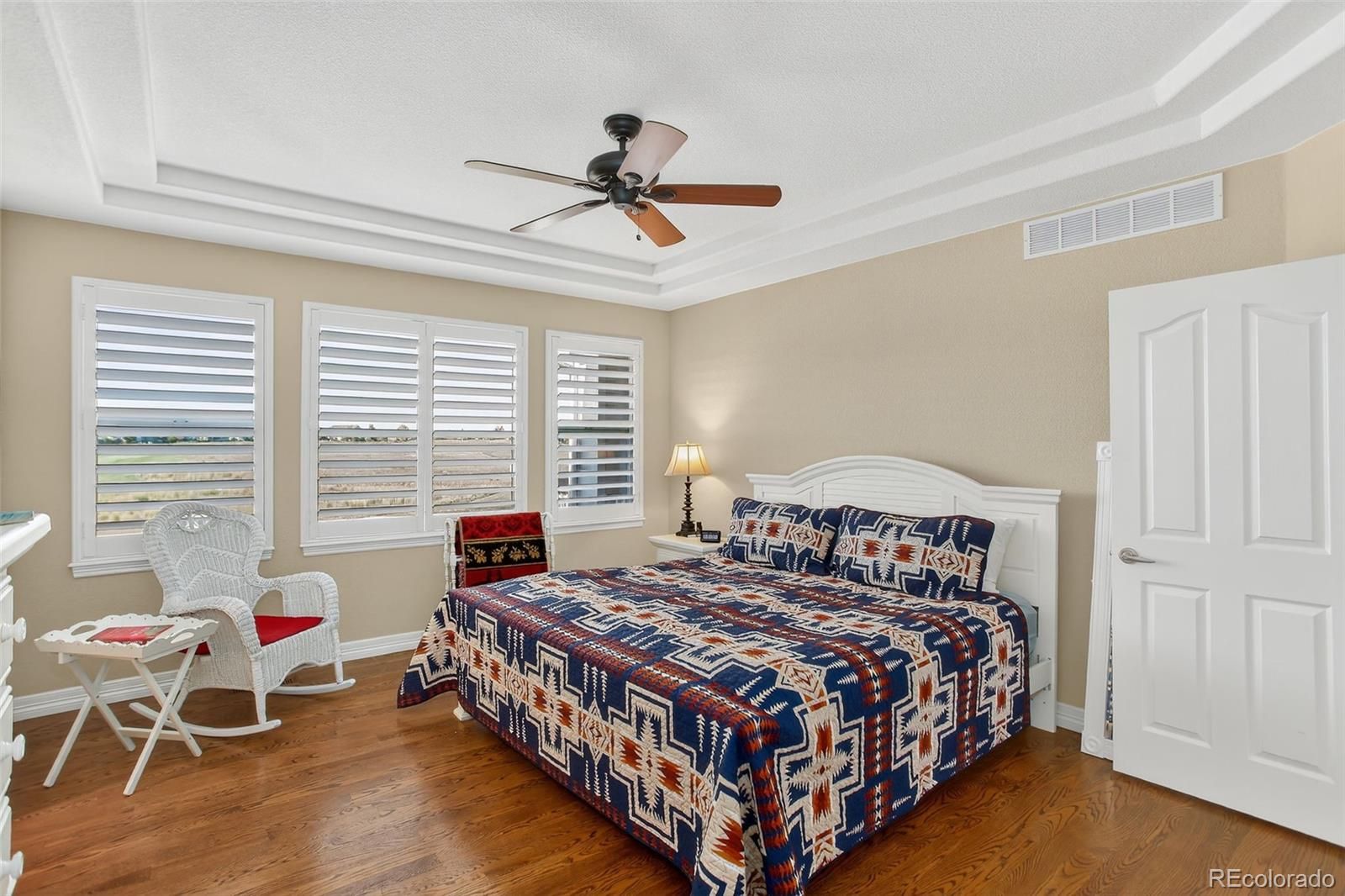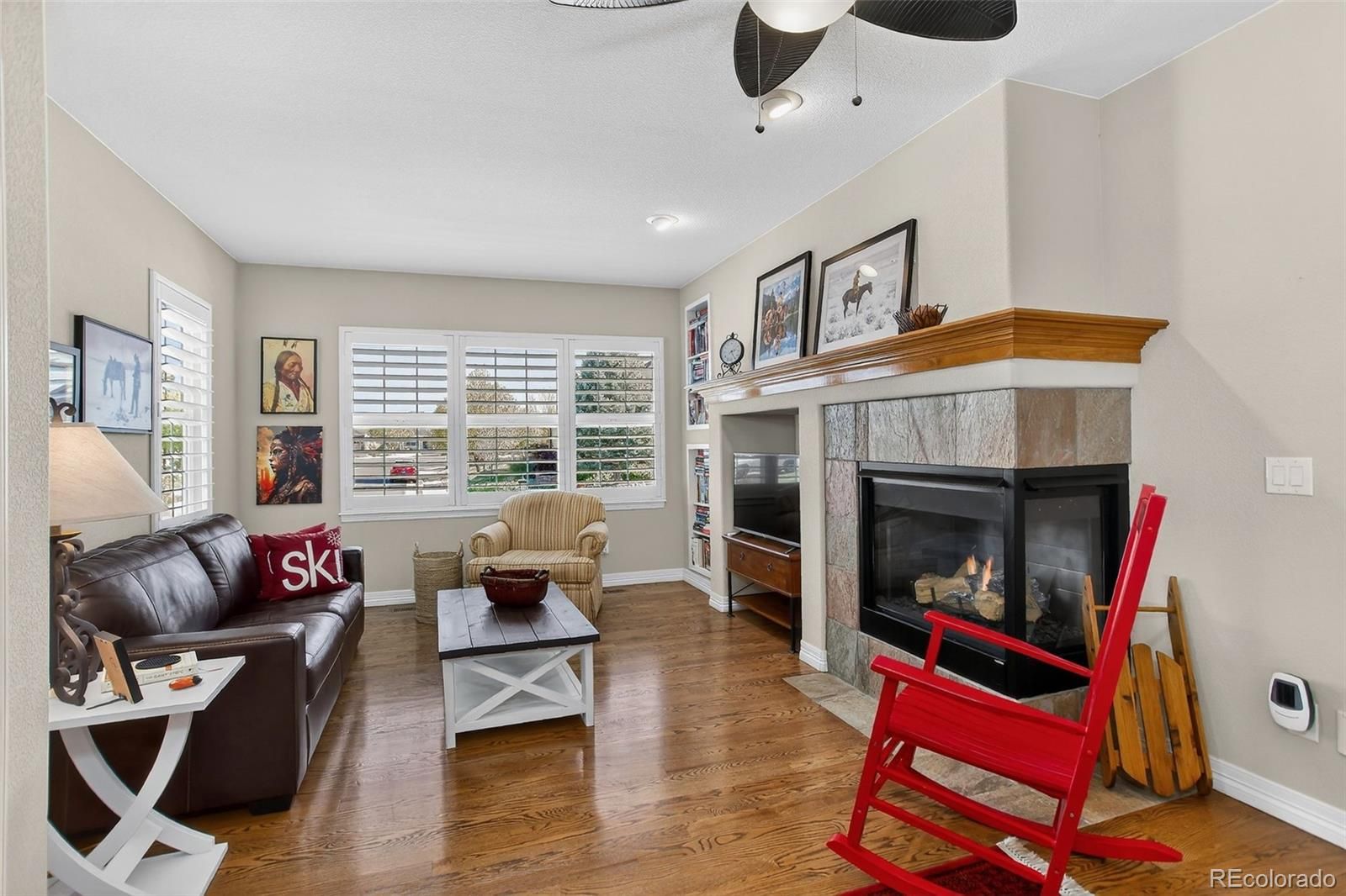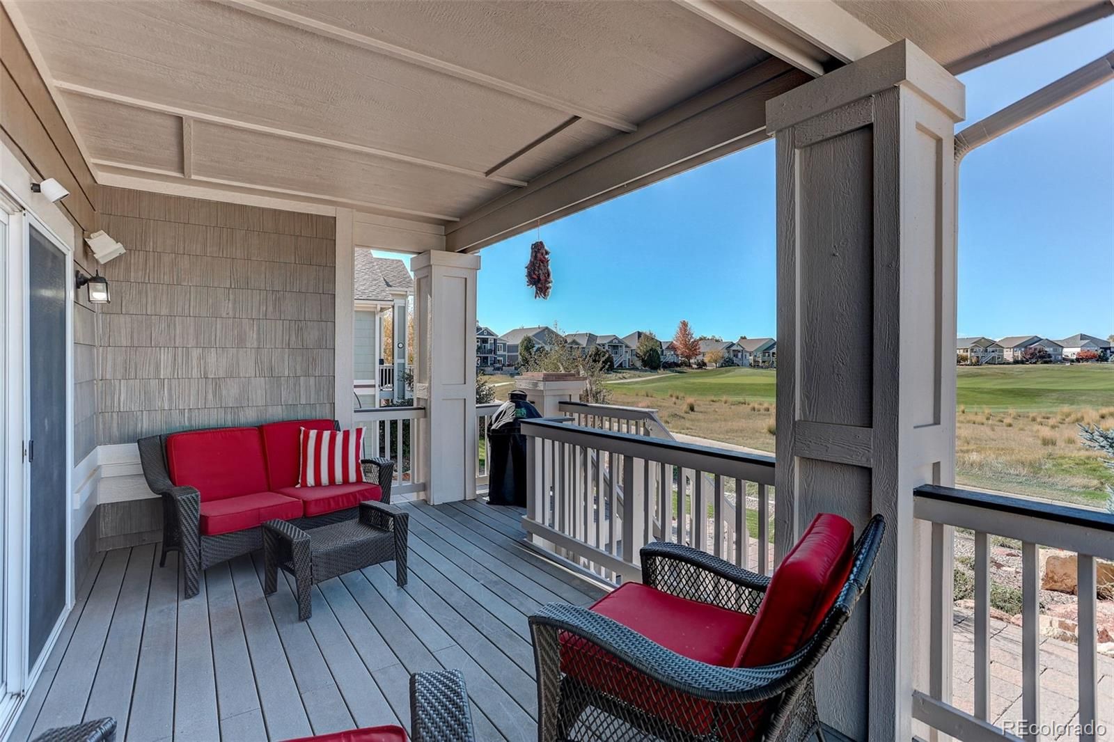 Absolutely Amazing Golf Course Location and Stunning Multiple Fairway Views! The beautiful 2 bedroom home with an office is located in the 55+ Heritage Todd Creek neighborhood situated behind the 2nd Hole Tee with views of both entire 1st and 2nd holes. Enter the home to beautiful hardwood floors throughout the entire main level. The floor plan is magnificently open with the kitchen, dining, and family rooms all adjoining and open to one another. All rooms have golf course views and the large family room features a warm and inviting fireplace and mantel. There is a wonderful bonus "Hearth" room off the kitchen that is perfect for reading, gaming, TV, or even a formal dining area. It even features it's own fireplace! The front of the home off the entry delivers a large french door entry office. The Primary Bedroom has a tray ceiling and beautiful golf course views and attaches to a 5 piece primary bath. There is a large 2nd bedroom with a walk in closet and full 2nd bath in the hallway. All windows throughout the main level are beautifully finished with White Plantation Shutters. Love the outdoors? The nicely landscaped back yard flows out to the golf course with amazing views delivered from the yard and oversized covered back deck. Just Stunning Views! Finally the basement is unfinished and ready for your design and imagination to create whatever additional living space your may desire. Come see this beautiful home in this really wonderful 55+ community offering a great Golf Course, a Clubhouse with fantastic restaurant and bar, and 2 pools (indoor and outside). There are clubs galore to explore, a billiards room, yoga and dance classes, library, and ballroom all for your use and enjoyment.