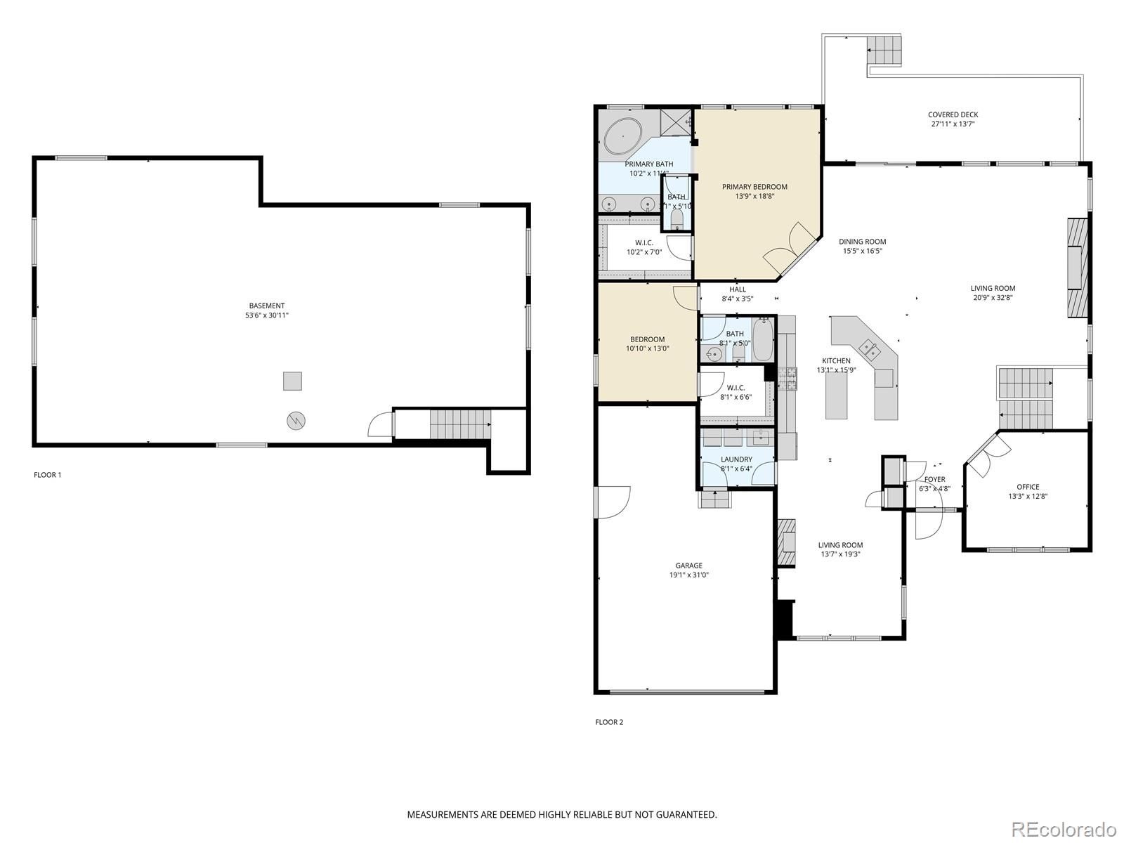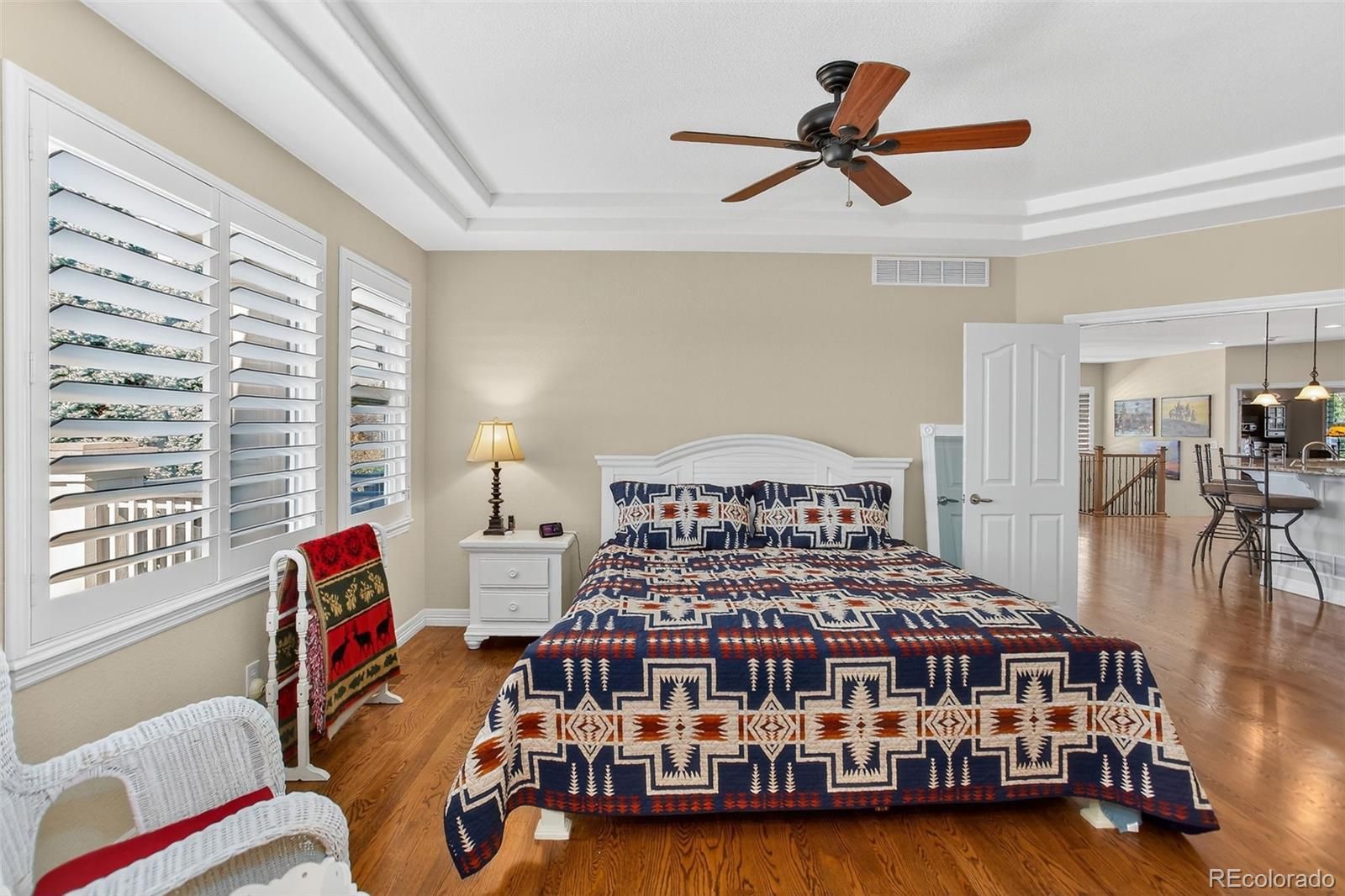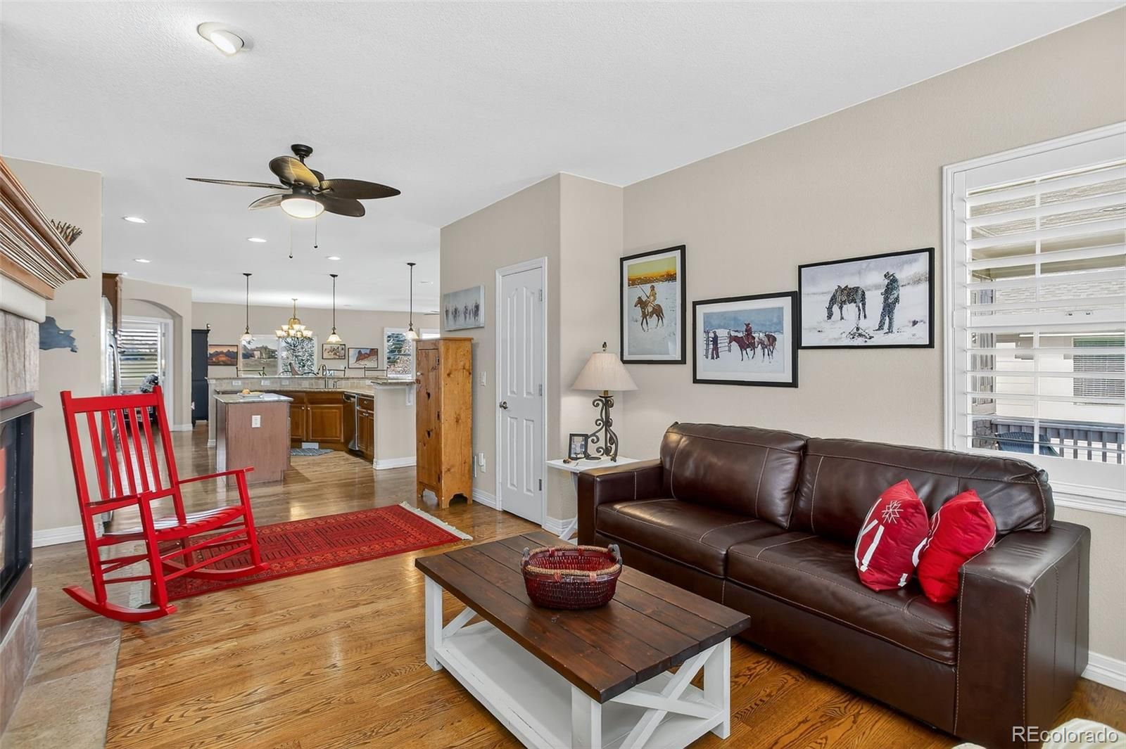 Absolutely Amazing Golf Course Location and Stunning Multiple Fairway Views! The beautiful 2 bedroom home with an office is located in the 55+ Heritage Todd Creek neighborhood situated behind the 2nd Hole Tee with views of both entire 1st and 2nd holes. Enter the home to beautiful hardwood floors throughout the entire main level. The floor plan is magnificently open with the kitchen, dining, and family rooms all adjoining and open to one another. All rooms have golf course views and the large family room features a warm and inviting fireplace and mantel. There is a wonderful bonus "Hearth" room off the kitchen that is perfect for reading, gaming, TV, or even a formal dining area. It even features it's own fireplace! The front of the home off the entry delivers a large french door entry office. The Primary Bedroom has a tray ceiling and beautiful golf course views and attaches to a 5 piece primary bath. There is a large 2nd bedroom with a walk in closet and full 2nd bath in the hallway. All windows throughout the main level are beautifully finished with White Plantation Shutters. Love the outdoors? The nicely landscaped back yard flows out to the golf course with amazing views delivered from the yard and oversized covered back deck. Just Stunning Views! Finally the basement is unfinished and ready for your design and imagination to create whatever additional living space your may desire. Come see this beautiful home in this really wonderful 55+ community offering a great Golf Course, a Clubhouse with fantastic restaurant and bar, and 2 pools (indoor and outside). There are clubs galore to explore, a billiards room, yoga and dance classes, library, and ballroom all for your use and enjoyment.