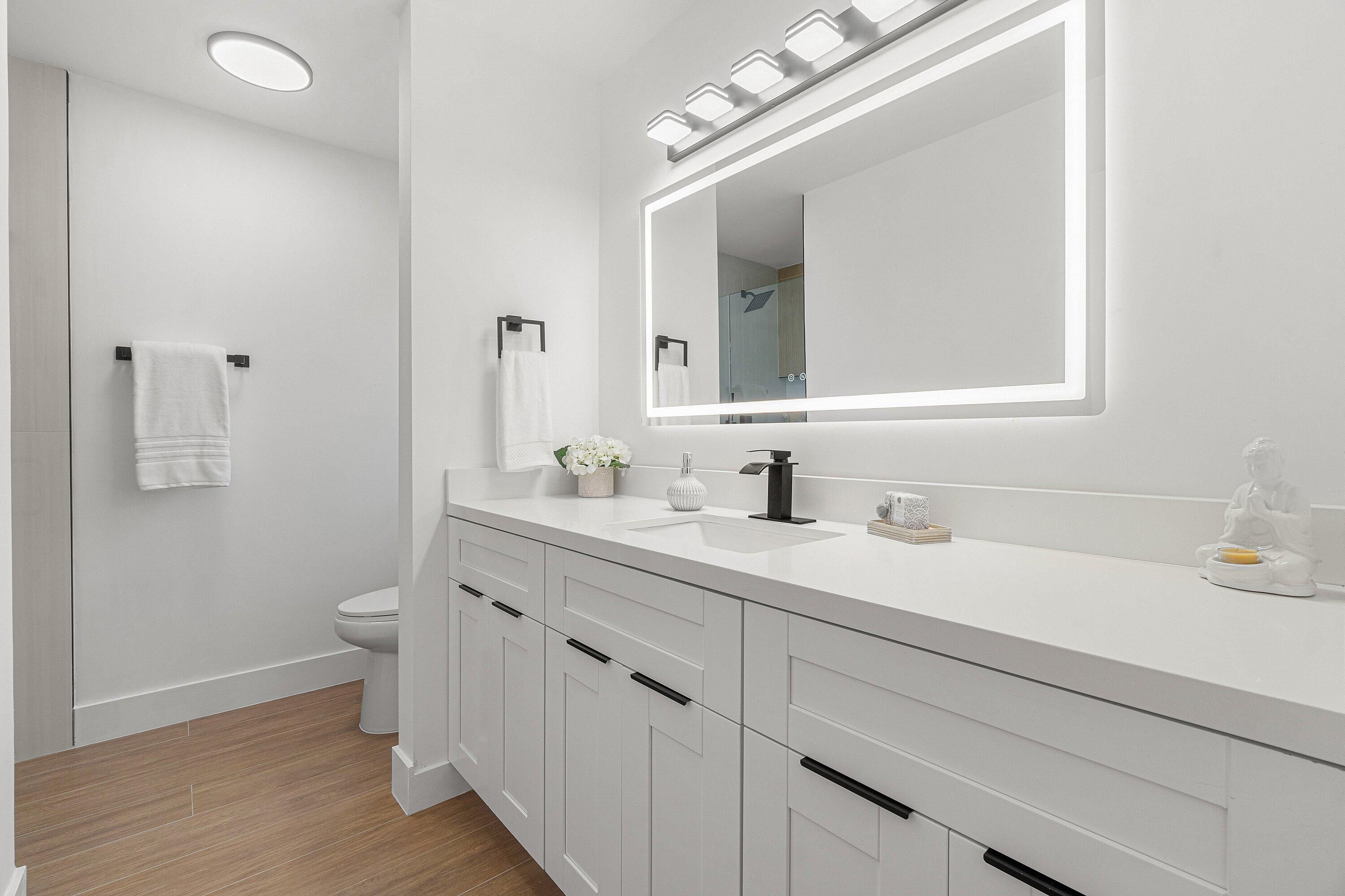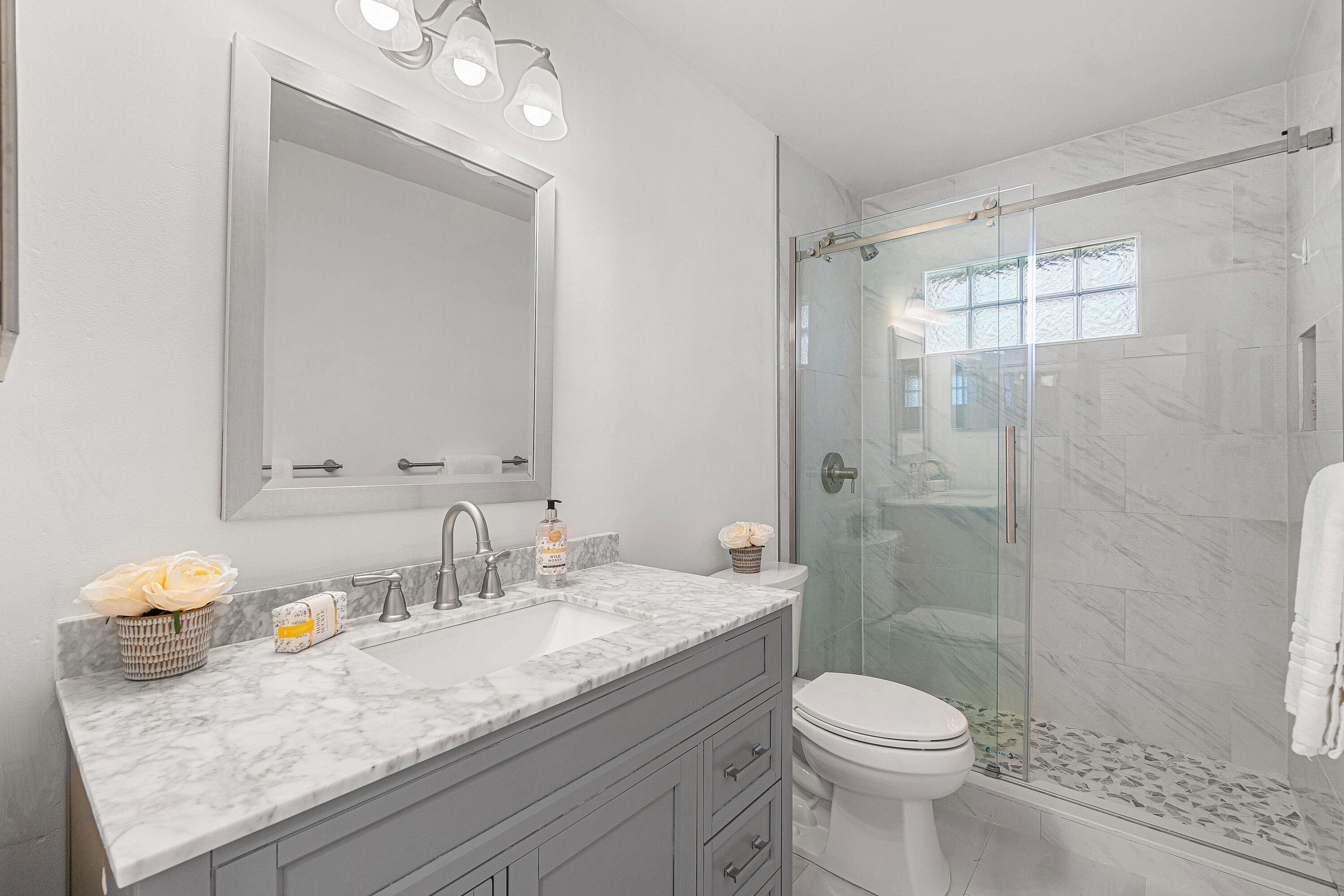 Come see this COMPLETELY REMODELED 2 bedroom PLUS OFFICE, 3 FULL BATH home w/ SOARING CATHEDRAL CEILINGS, NEW METAL ROOF (2026) and coastal style PORCELAIN TILE FLOORING THROUGHOUT! The open concept floor plan gives a very light bright and open feeling w/ lots of NATURAL LIGHT streaming through. The kitchen features, QUARTZ COUNTERTOPS & a 10 ft QUARTZ ISLAND (room for 6 barstools!) The Primary bath features a white shaker vanity w/ QUARTZ countertop & the contemporary shower looks like right off HGTV. The guest bath was also beautifully updated. The BONUS OFFICE area features a cute gem of a FULL BATH too! Relax on the brick paver patio to grill out w/ friends or catch some rays in your own very PRIVATE backyard! Coco Wood Lakes is a quiet 55+ community in the heart of Delray!