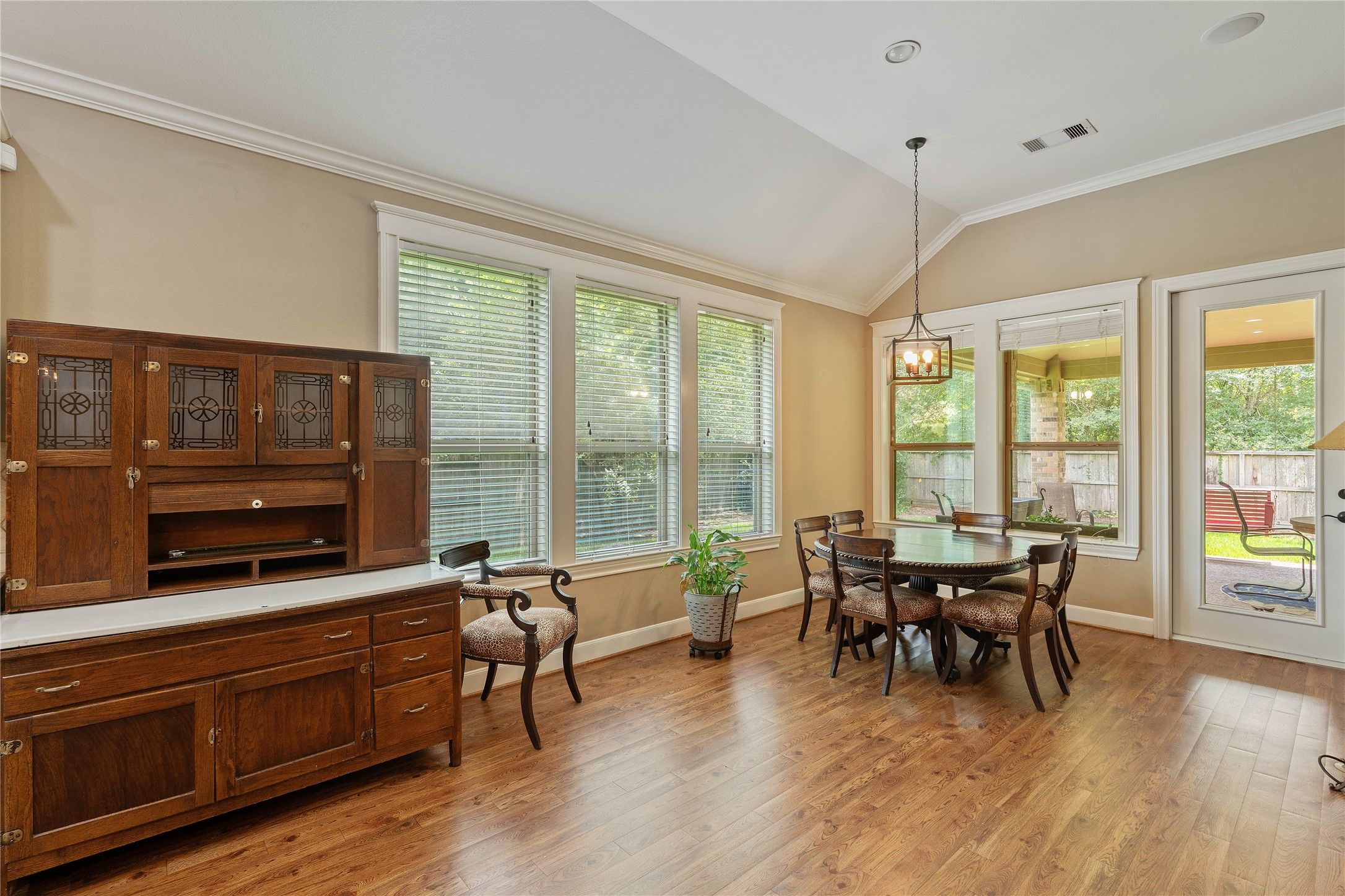 - Breakfast Bar, Crown Molding, Double Vanity, Entrance Foyer, Granite Counters, Handicap Access, High Ceilings, Kitchen Island, Kitchen/Family Room Combo, Pantry, Tub Shower, Walk-In Pantry, Window Treatments, Ceiling Fan(s), Kitchen/Dining Combo, Living/Dining Room