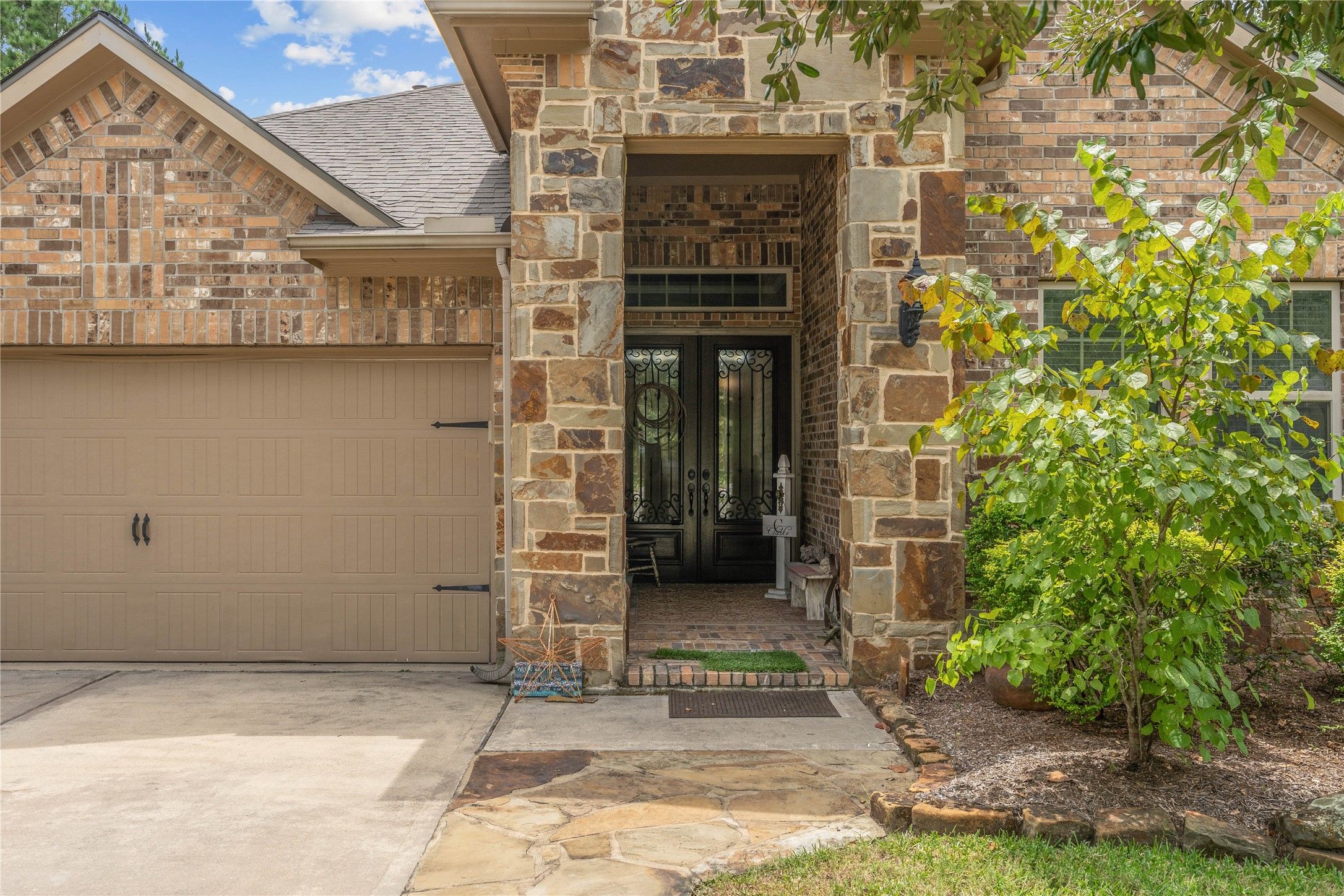 Nestled in the charming neighborhood of Bonterra at Woodforest, this lovely home provides 2 bedrooms, 2 bathrooms, an office and a spacious backyard & porch est.23x18, perfect for entertaining. The open concept layout is perfect for gatherings with Living, Dining and Kitchen all open to each other. The modern kitchen features stainless steel appliances, a walk in pantry, granite countertops, a breakfast bar and more. The roof was replaced August 2024. This home is equipped with many Accessibility Features, making navigating a wheelchair here easier. Enjoy the convenience of a two-car garage est.18.5x19.5 with access into the home. Inside the garage you will also find extra storage on the ceiling and in the back measuring 5x6 for a refrigerator or storage. Easy access to nearby amenities include parks, walking trails, pools, shopping, dining and many other local places. Located minutes from Montgomery, Conroe, Magnolia and MORE! Don't miss the opportunity to make this house your home!