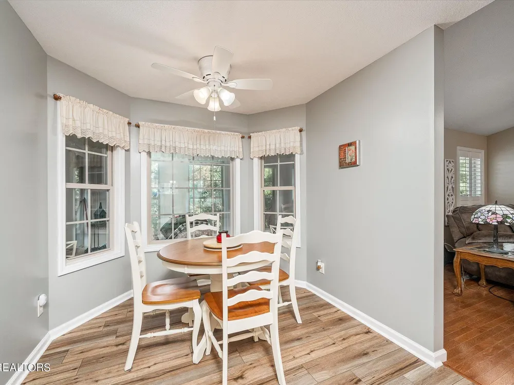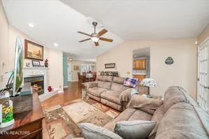 Welcome to this move-in-ready ranch home, offering 1,820 square feet of comfortable living space. Featuring 3 spacious bedrooms and 2 full baths on the main level, this home is perfect for those seeking convenience and style. As you step through the front door, you are welcomed by an open and airy living area with a cathedral ceiling and a cozy gas fireplace—ideal for relaxing or entertaining. A formal dining area sits just to the left, creating an elegant setting for meals. The eat-in kitchen flows seamlessly into a bright four-season sunroom, with access to a grilling deck in the back, perfect for enjoying your morning coffee or hosting gatherings. The main level is beautifully finished with hardwood flooring throughout, complemented by tile in the kitchen and bathrooms. Need extra storage? You'll appreciate the additional space in the crawlspace with basement access. The basement walkout features a covered area and stairs leading to the upper deck, offering more outdoor living options. Enjoy peace and tranquility in the serene, wooded backyard, surrounded by a manicured lawn and beautiful landscaping. Located in the highly sought-after Fairfield Glade Community, this home gives you access to an abundance of amenities, including 11 lakes, 2 marinas for boating and fishing, 5 championship golf courses, hiking trails, a racquet center for tennis and pickleball, 2 outdoor swimming pools, an indoor pool, a fitness center, and much more! This incredible home won't last long—schedule a showing today and see all that it has to offer!