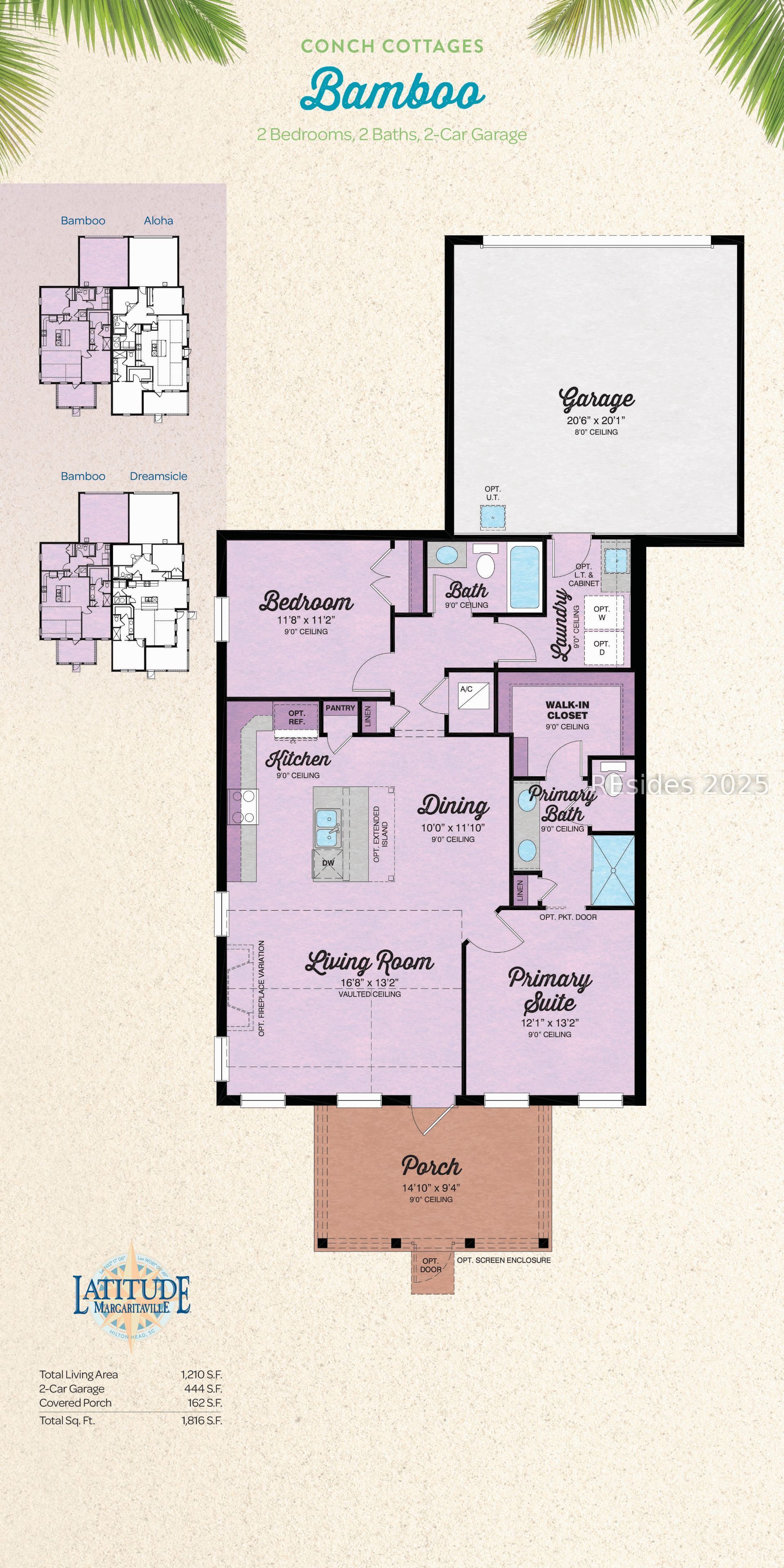 SWEET "Bamboo" Cottage UPGRADED OPTIONS! Quiet street! Margaritaville like-new 2023 home. Desirable phase 5 location. Covered screened porch opens up to a quiet & peaceful outdoor area w/ a community Tiki Hut close by! Great natural light! Plantation shutters! Crown molding, refrigerator, washer/dryer included, a convenient plus! 8' doors and 42" cabinets, pull outs, quartz countertops & backsplash. Both baths have fully tiled SHOWERS! Full laundry cabinets and sink! KitchenAid appliances, drawers & pullouts in the kitchen. Polyaspartic epoxy in garage. Consistent GORGEOUS hard surface tile plank floors throughout. Recessed lights! Water filter in garage. All exterior painting, landscaping, grass & irrigation included. Just relax and enjoy this vibrant fun community w/ so many lifestyle activities & clubs. Experience "a vacation resort lifestyle" everyday.
