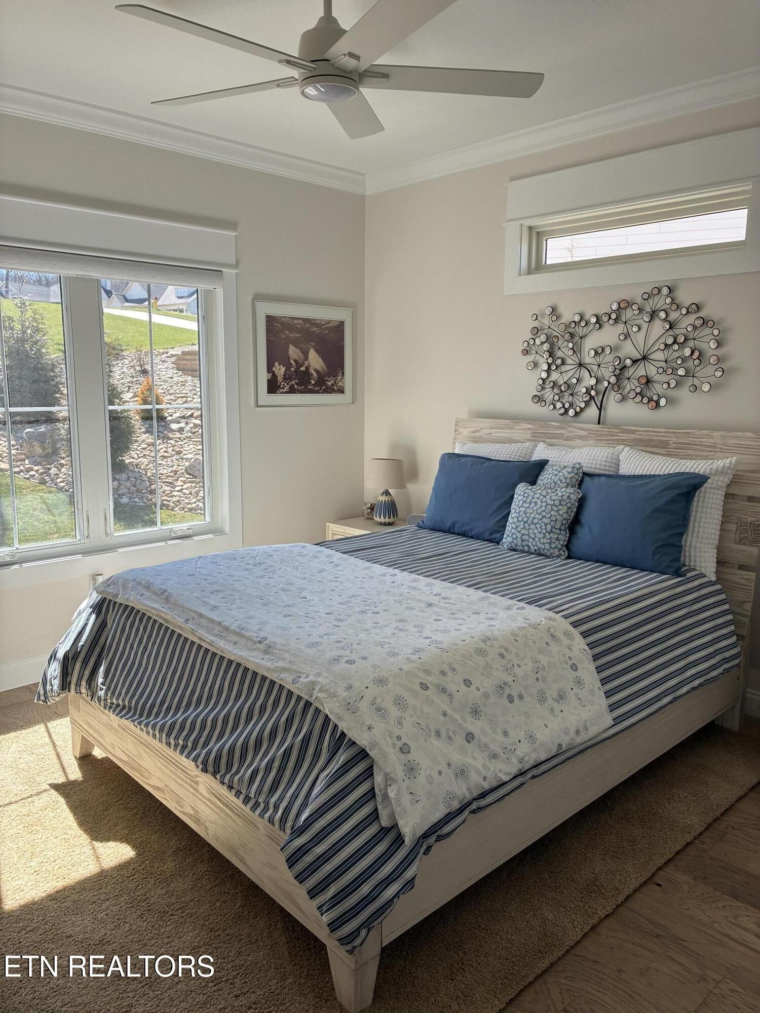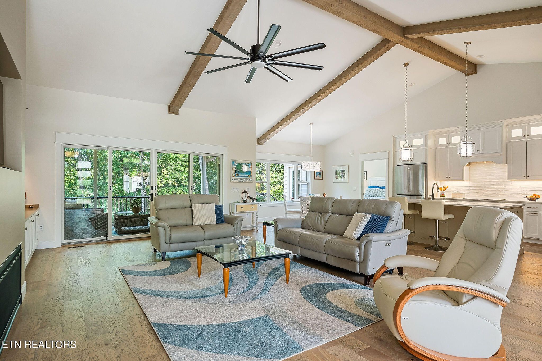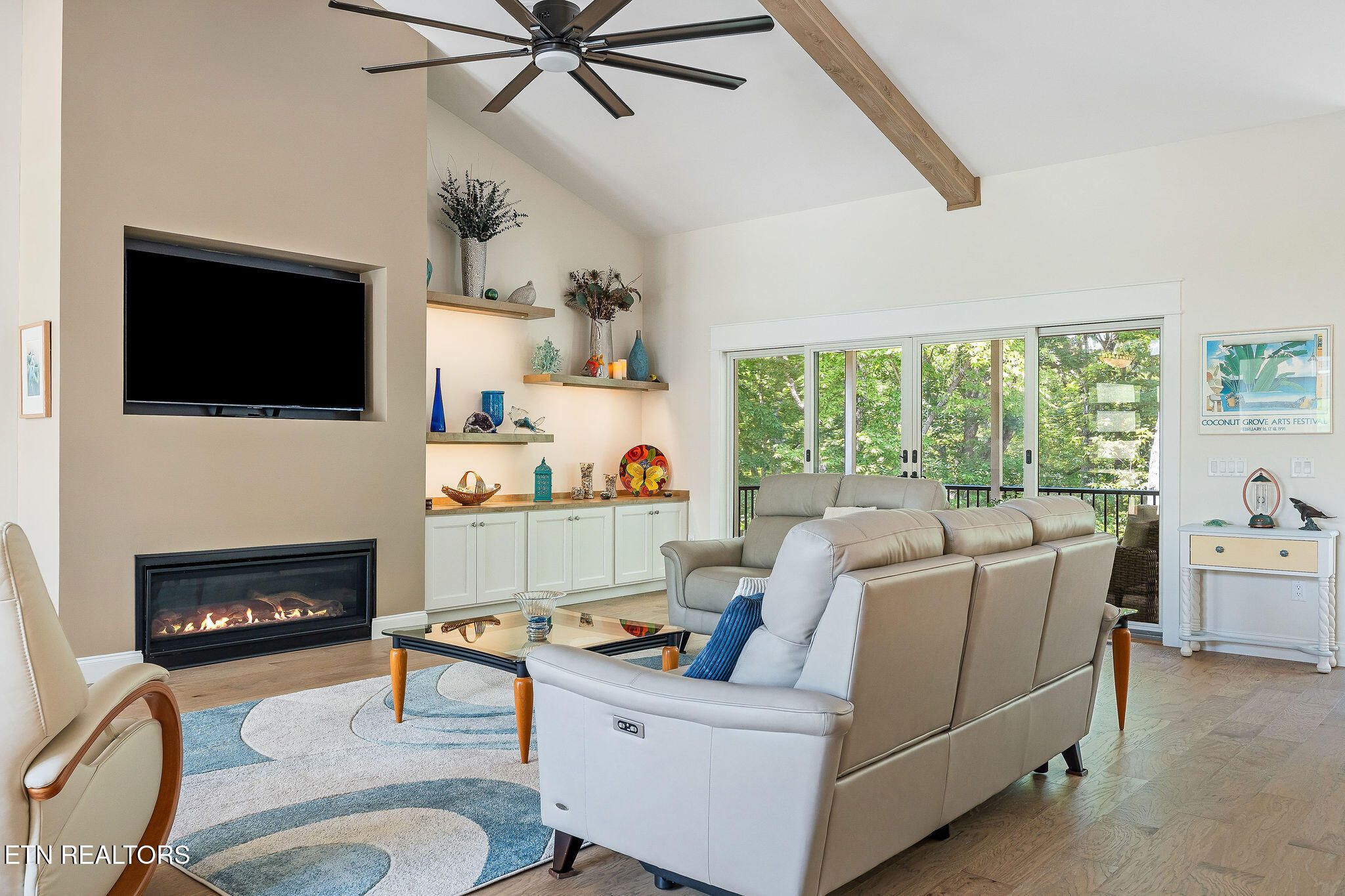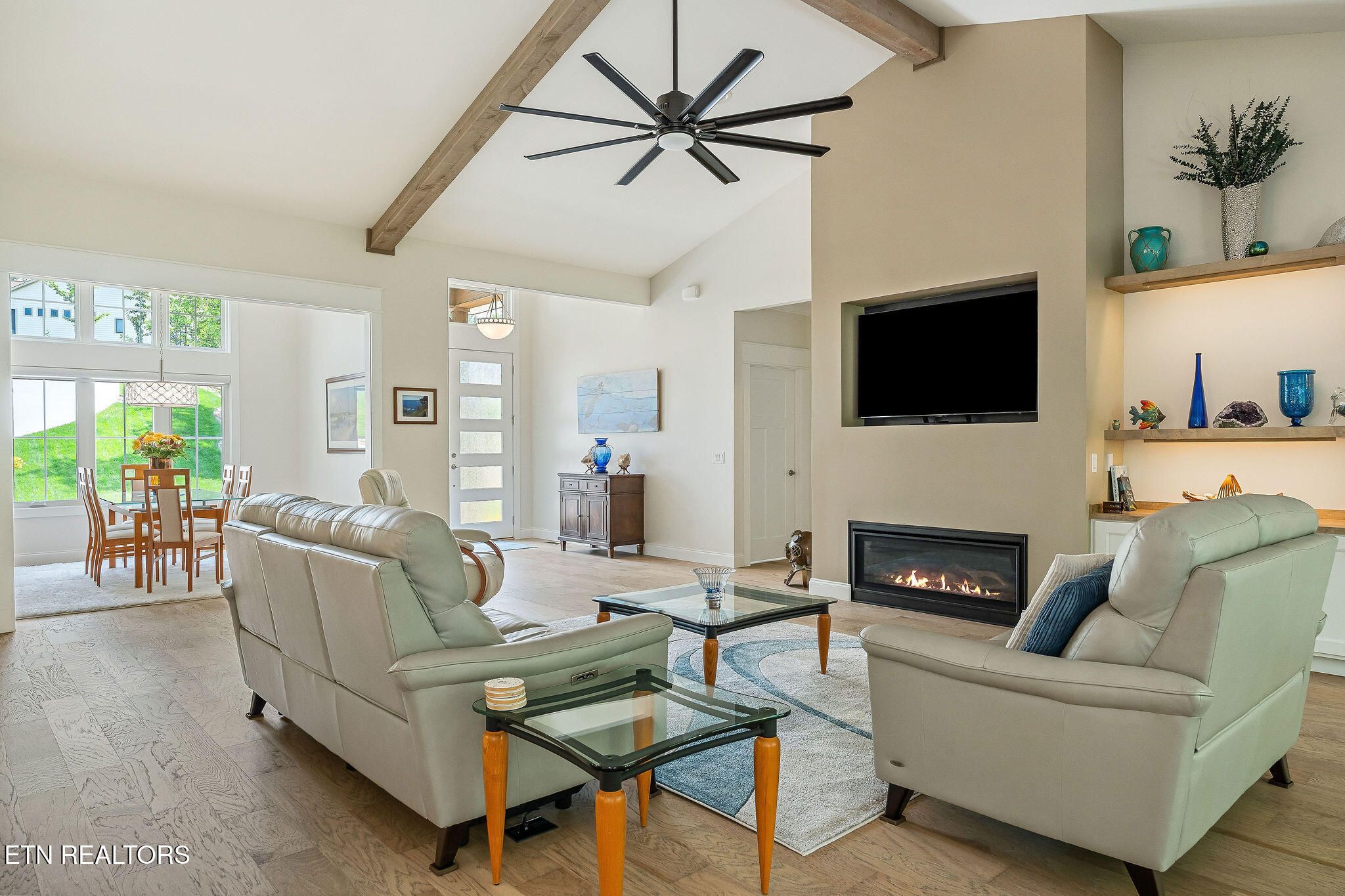 Welcome to Elevated Living! Nearly new custom luxury home built in 2024, nestled among the trees for privacy and creating a peaceful retreat in Fairfield Glade. This thoughtfully designed home features high-end finishes and a functional, flowing layout filled with natural light. The spacious open-concept design showcases a stunning cathedral ceiling with exposed beams, contemporary touches, and a desirable split-bedroom floor plan. The living area features a 55'' linear fireplace with custom cabinetry and floating lighted shelves. The gourmet kitchen is beautifully appointed with quartz countertops and glass-front cabinets extending to the ceiling, with lighting above and below. Premium appliances include a GE Profile double wall oven with Advantium convection microwave, GE Profile induction cooktop, wine cooler, and dishwasher, along with a Bosch refrigerator. A Blanco granite sink and a large walk-in butler's pantry with custom frosted glass sliding doors complete this impressive kitchen space which is perfect for entertaining or everyday living. Engineered hardwood flooring runs throughout the home with ceramic tile in the bathrooms and laundry room. Custom cabinetry and organizers enhance the pantry and closets, and the tasteful custom window treatments provide the comfort of privacy. Step outside to the screened-in porch with a vaulted ceiling -- the perfect place to relax and enjoy the peaceful wooded views. Enjoy the convenience of walking out your back door and connecting with over 6 miles of hiking trails. The professionally finished garage includes an epoxy coated flooring, wall cabinets, and a wall organizing system that will be the envy of your neighbors. The whole house generator will give you peace of mind in the event it's needed. Strategically located in a neighborhood with underground utilities including natural gas. This one-of-a-kind home is truly a must-see!