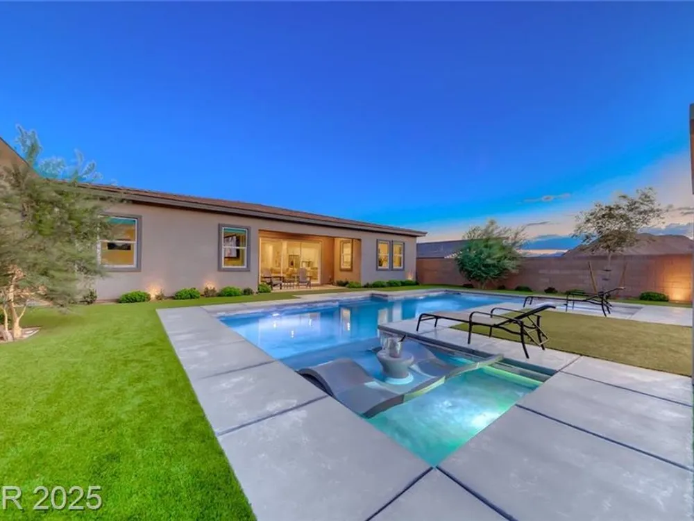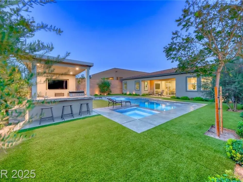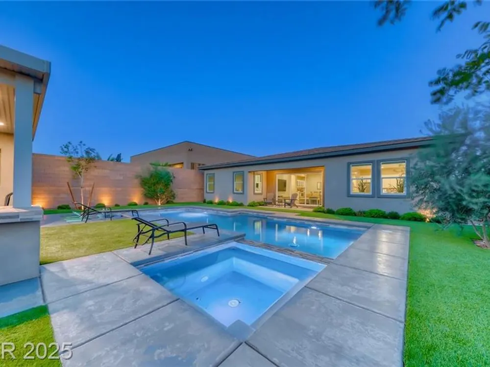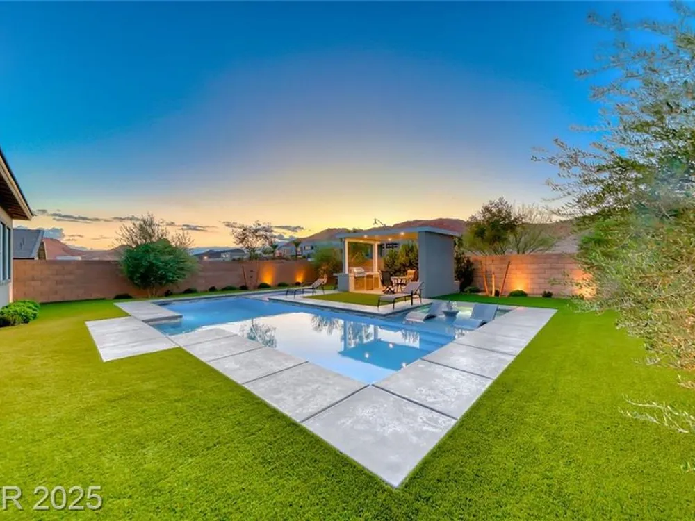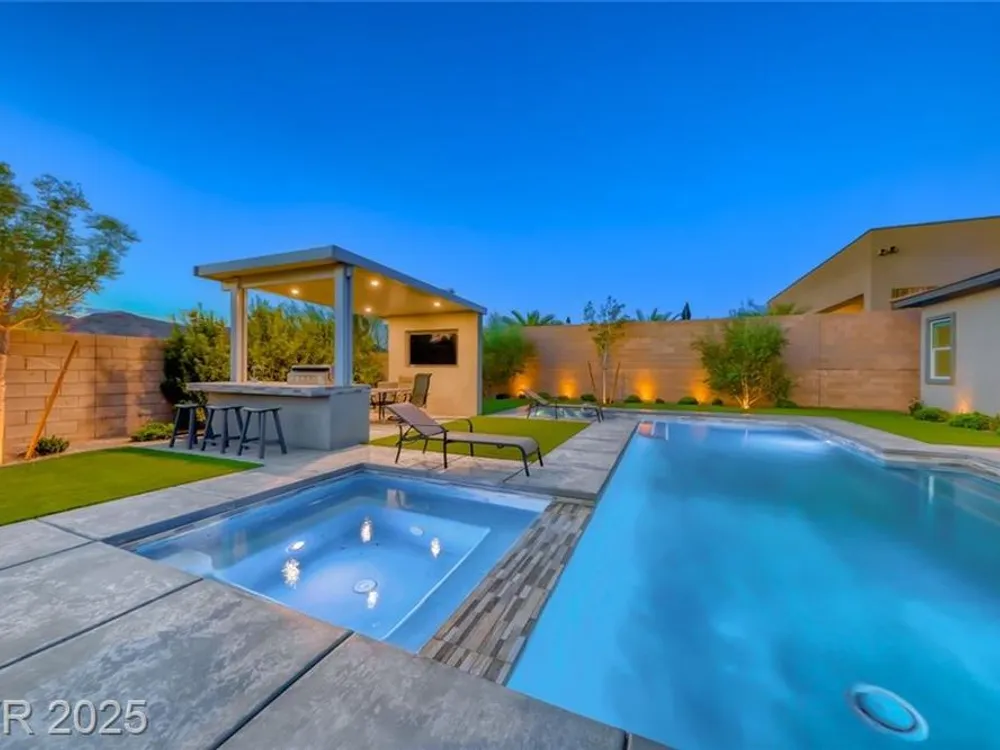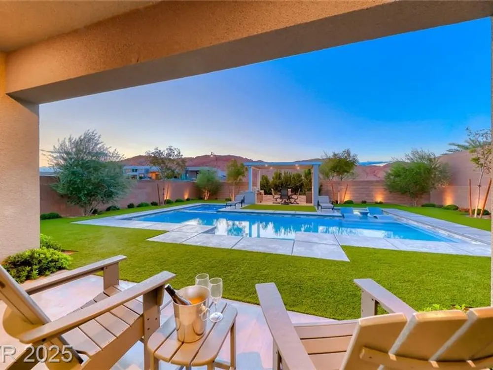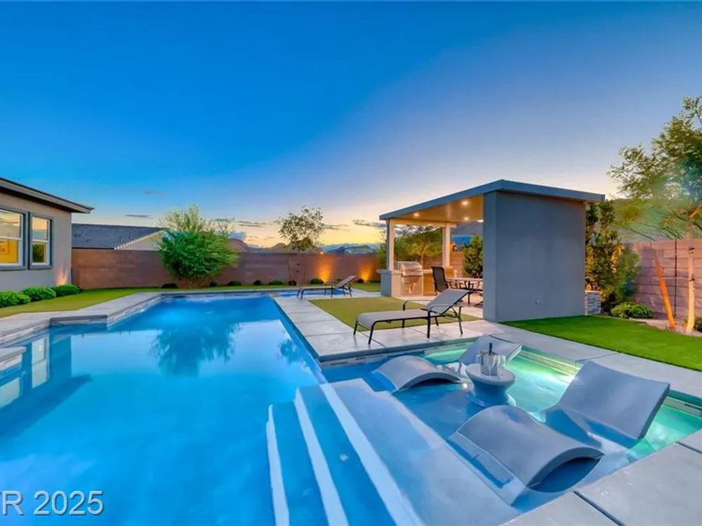 Welcome to this stunning single-story retreat in the gated Reverie at Lake Las Vegas! Built in 2023, this 3-bed, 3.5-bath home with 3-car garage offers 2,653 sq. ft. of luxury on an oversized lot. The chef’s kitchen features a large island, quartz counters, stainless appliances, and walk-in pantry, opening to spacious living and dining areas—perfect for entertaining. The primary suite boasts a spa-like bath and generous walk-in closet. Step outside to your private backyard oasis with heated saltwater pool, spa, built-in BBQ, covered patio, and low-maintenance desert landscaping. Enjoy mountain views and the ultimate indoor-outdoor lifestyle. Modern elegance meets resort-style living—schedule your private showing today! Lake Las Vegas was recently voted the best Master Planned community in Las Vegas! Lake Las Vegas is a 320-acre lake & is considered by many to be the most beautiful in the entire Las Vegas Valley complete with water sports, fine dining & outdoor concerts.