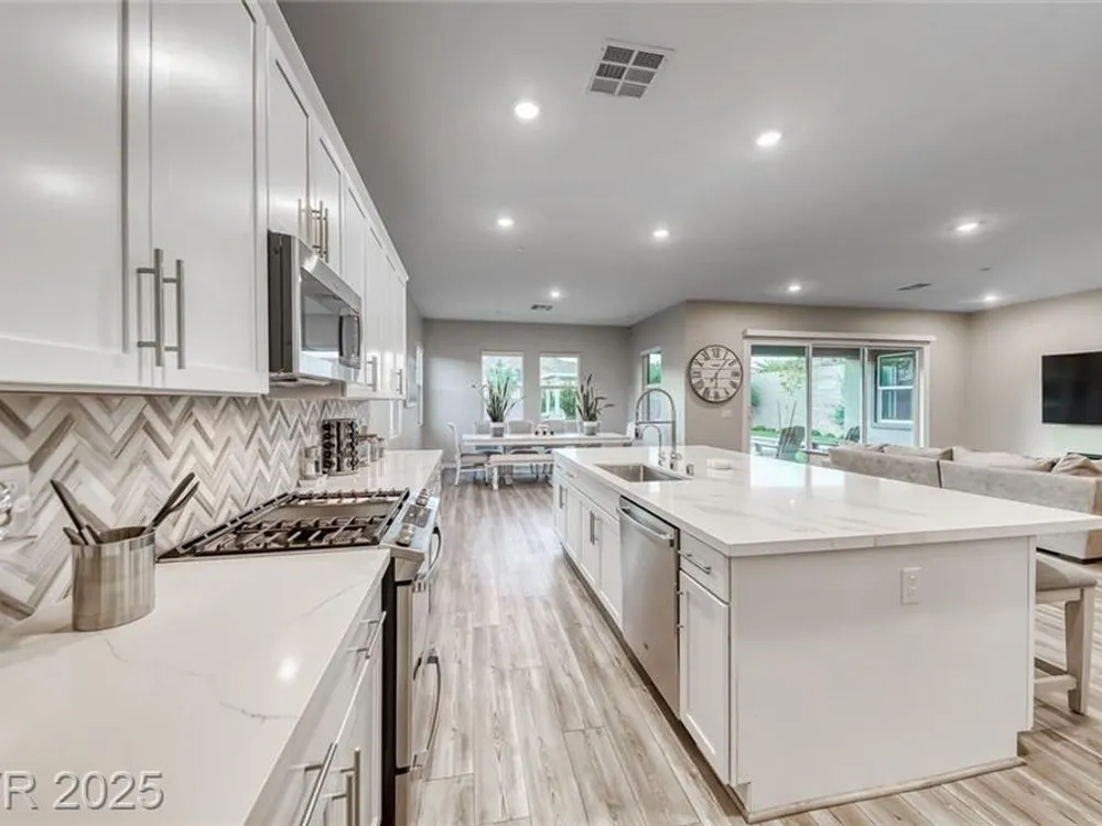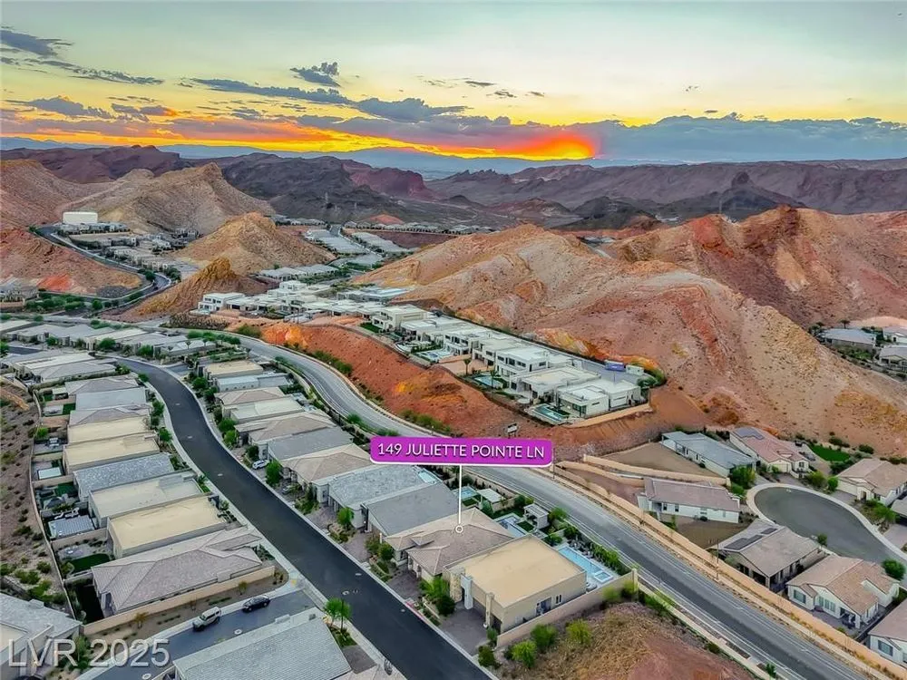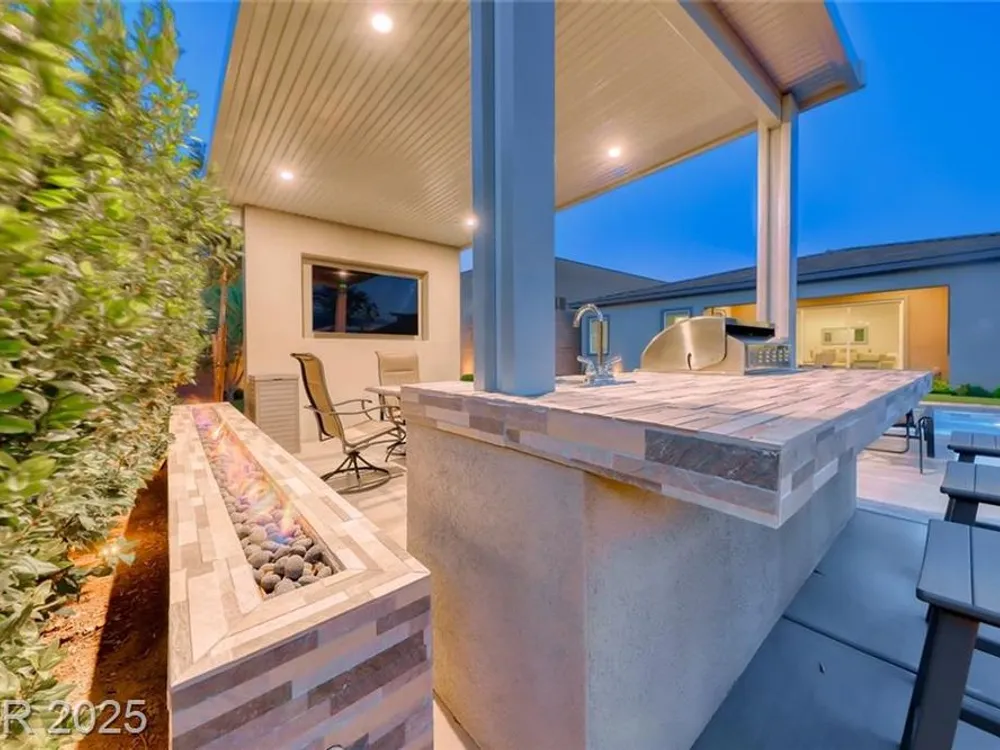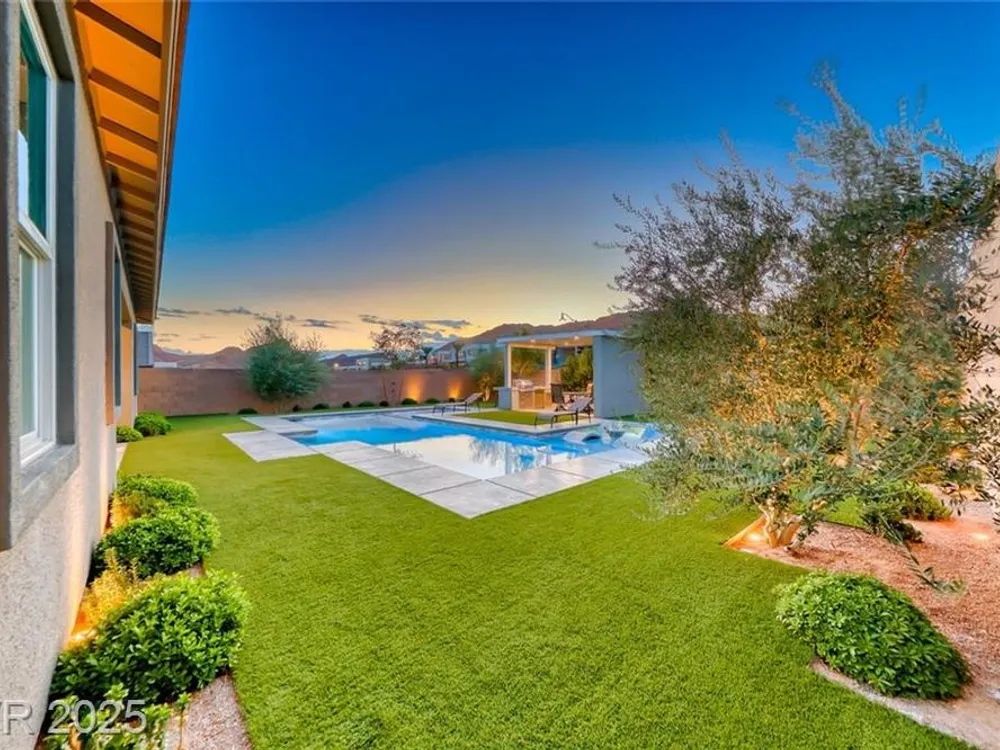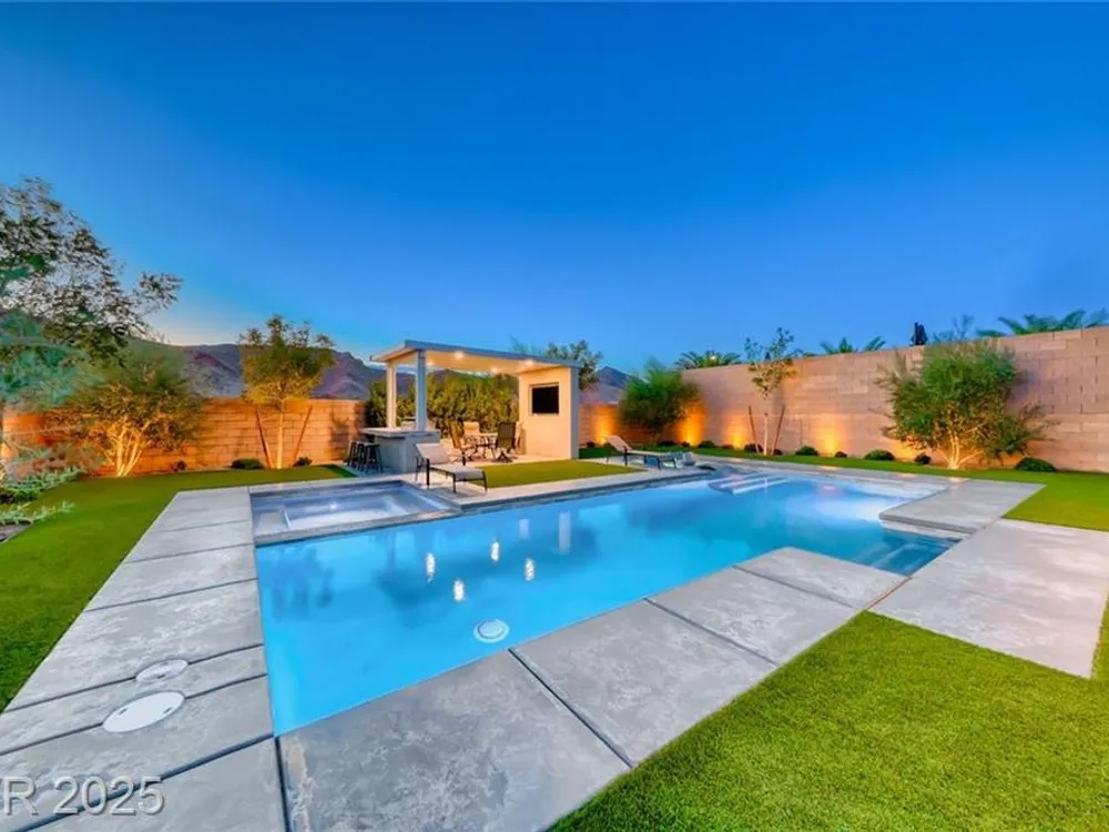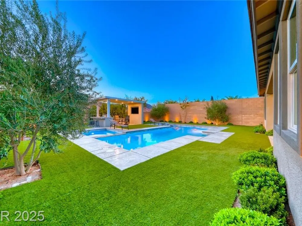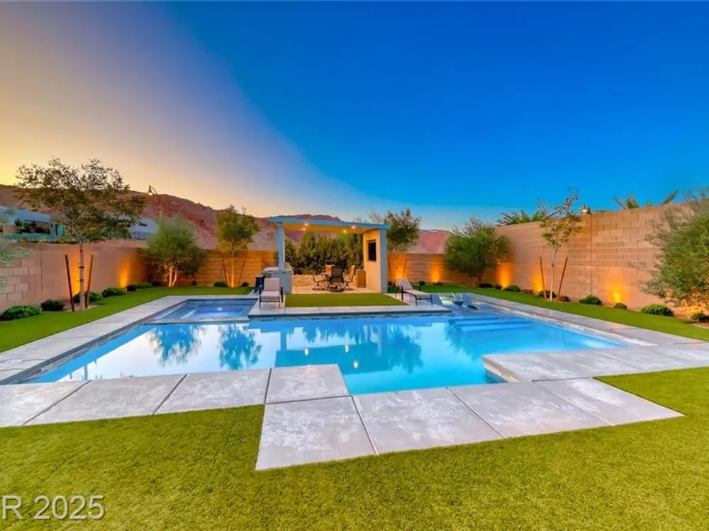 Welcome to this stunning single-story retreat in the gated Reverie at Lake Las Vegas! Built in 2023, this 3-bed, 3.5-bath home with 3-car garage offers 2,653 sq. ft. of luxury on an oversized lot. The chef’s kitchen features a large island, quartz counters, stainless appliances, and walk-in pantry, opening to spacious living and dining areas—perfect for entertaining. The primary suite boasts a spa-like bath and generous walk-in closet. Step outside to your private backyard oasis with heated saltwater pool, spa, built-in BBQ, covered patio, and low-maintenance desert landscaping. Enjoy mountain views and the ultimate indoor-outdoor lifestyle. Modern elegance meets resort-style living—schedule your private showing today! Lake Las Vegas was recently voted the best Master Planned community in Las Vegas! Lake Las Vegas is a 320-acre lake & is considered by many to be the most beautiful in the entire Las Vegas Valley complete with water sports, fine dining & outdoor concerts.