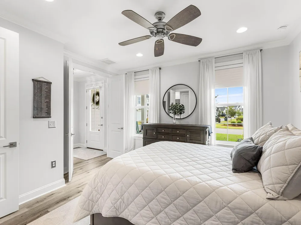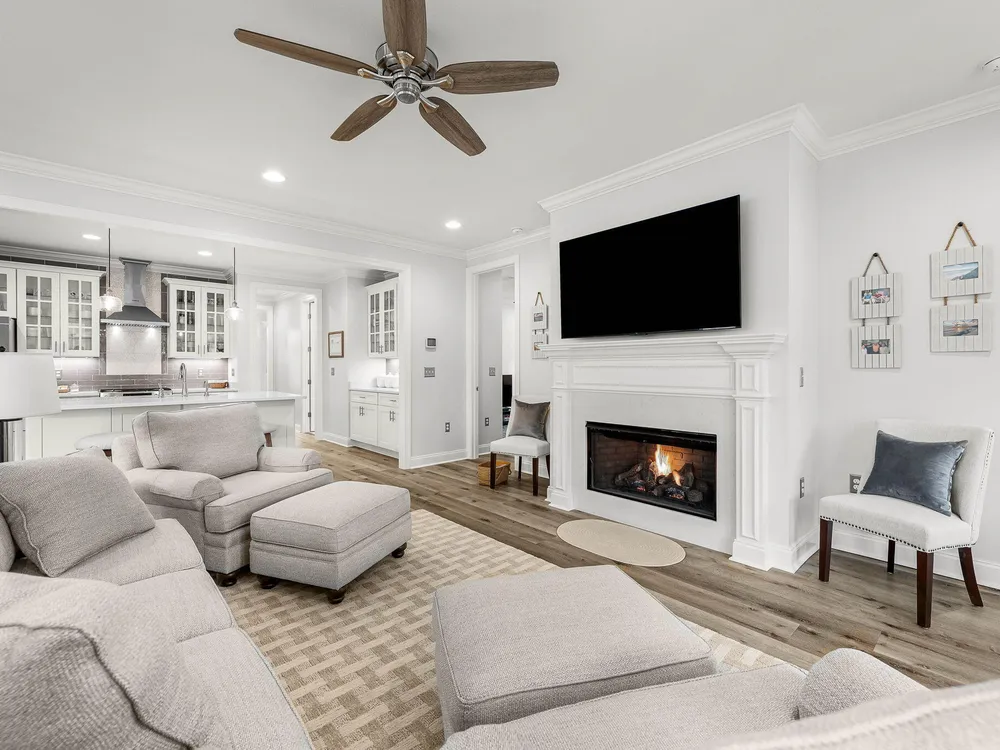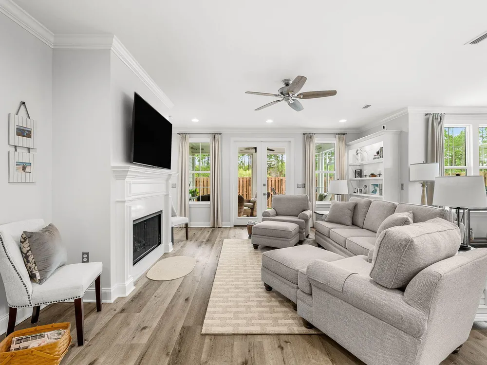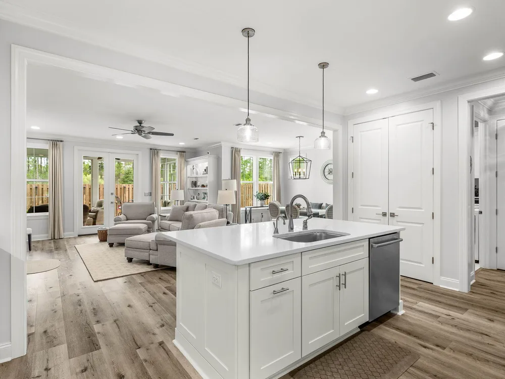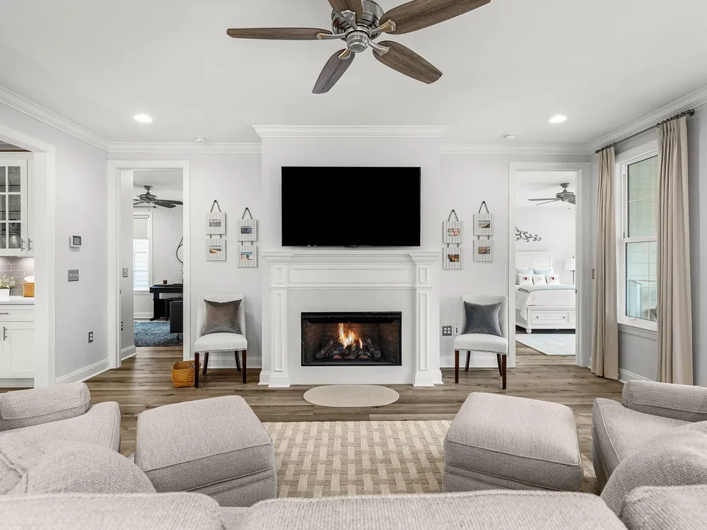 Welcome home, where modern design and thoughtful upgrades come together seamlessly. This beautiful, expanded Bella floorplan, one-story residence offers 3 spacious bedrooms, 2 bathrooms, and nearly 1,800 sq. ft. of elevated living.The chef-inspired kitchen is a true showpiece, boasting Bosch appliances, built-in refrigerator drawers, an InstaHot faucet, and an extended island with storage--perfect for hosting and everyday living. Gather in the open-concept living room featuring a gas fireplace and custom built-in shelving.Each bedroom closet is designed with California Closets for effortless organization. Plenty of natural day & space.