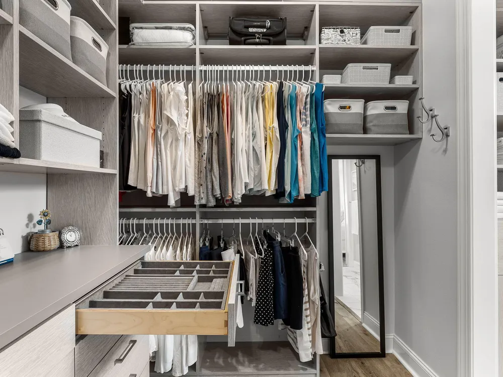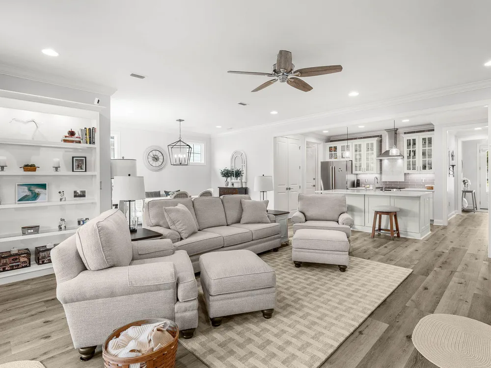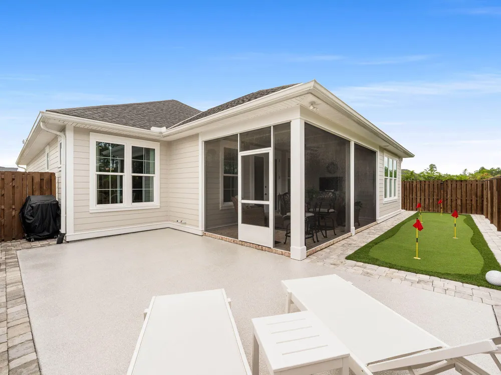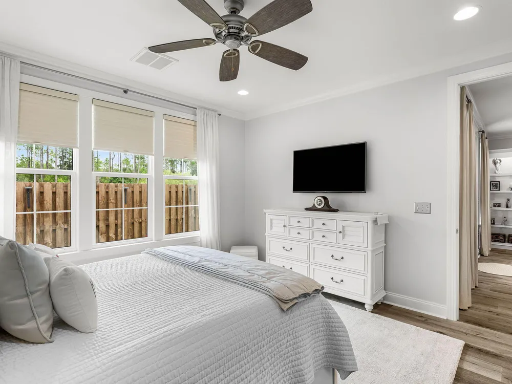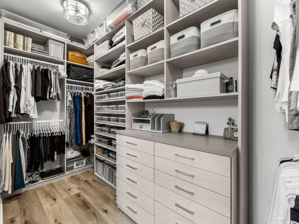 Welcome home, where modern design and thoughtful upgrades come together seamlessly. This beautiful, expanded Bella floorplan, one-story residence offers 3 spacious bedrooms, 2 bathrooms, and nearly 1,800 sq. ft. of elevated living.The chef-inspired kitchen is a true showpiece, boasting Bosch appliances, built-in refrigerator drawers, an InstaHot faucet, and an extended island with storage--perfect for hosting and everyday living. Gather in the open-concept living room featuring a gas fireplace and custom built-in shelving.Each bedroom closet is designed with California Closets for effortless organization. Plenty of natural day & space.