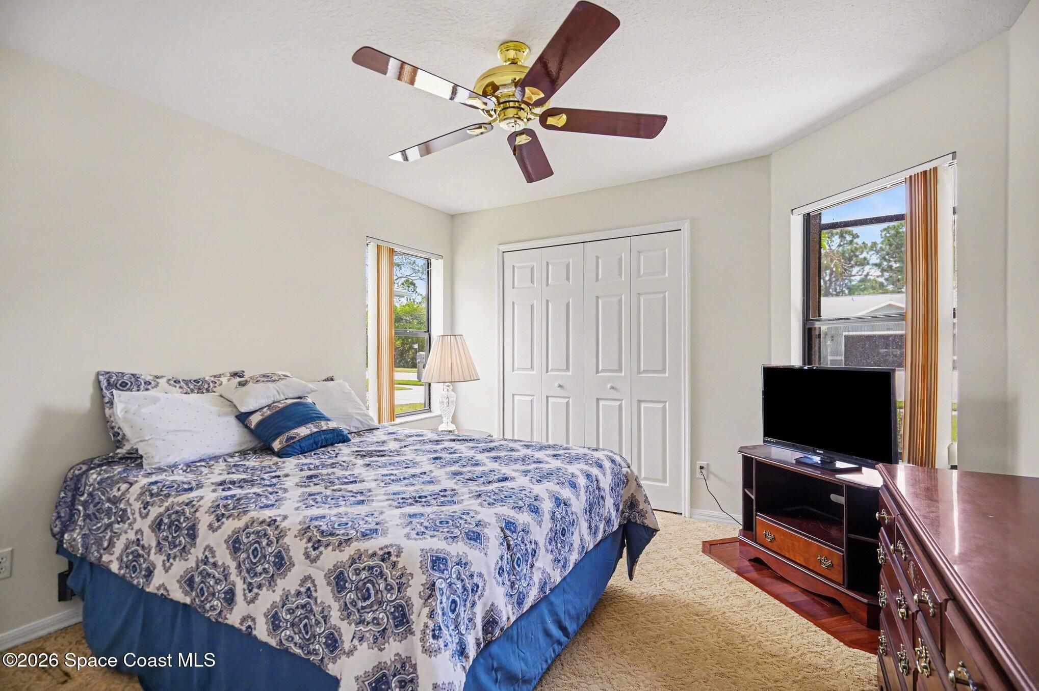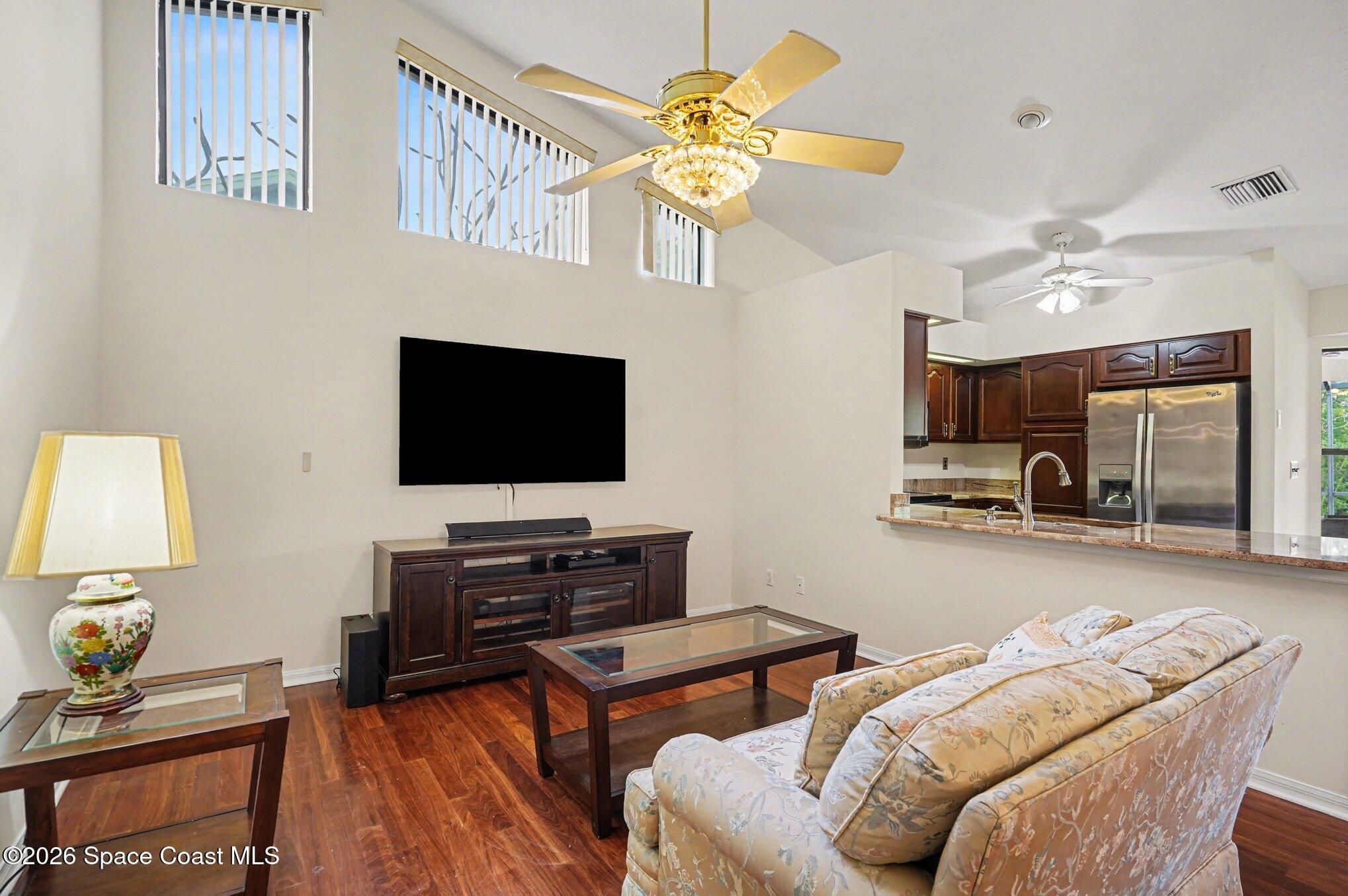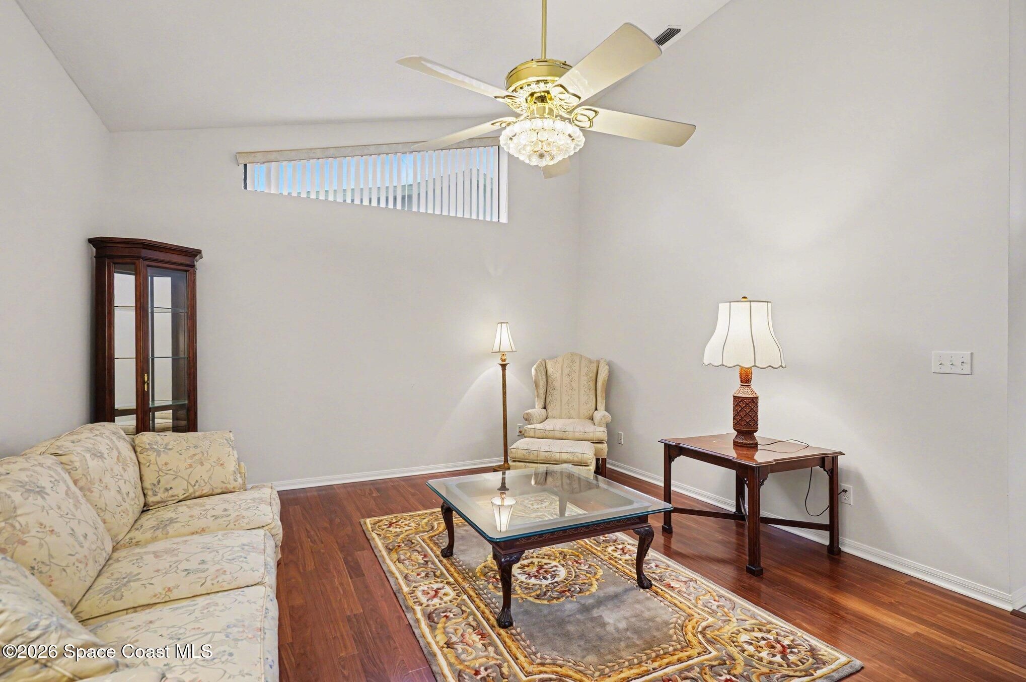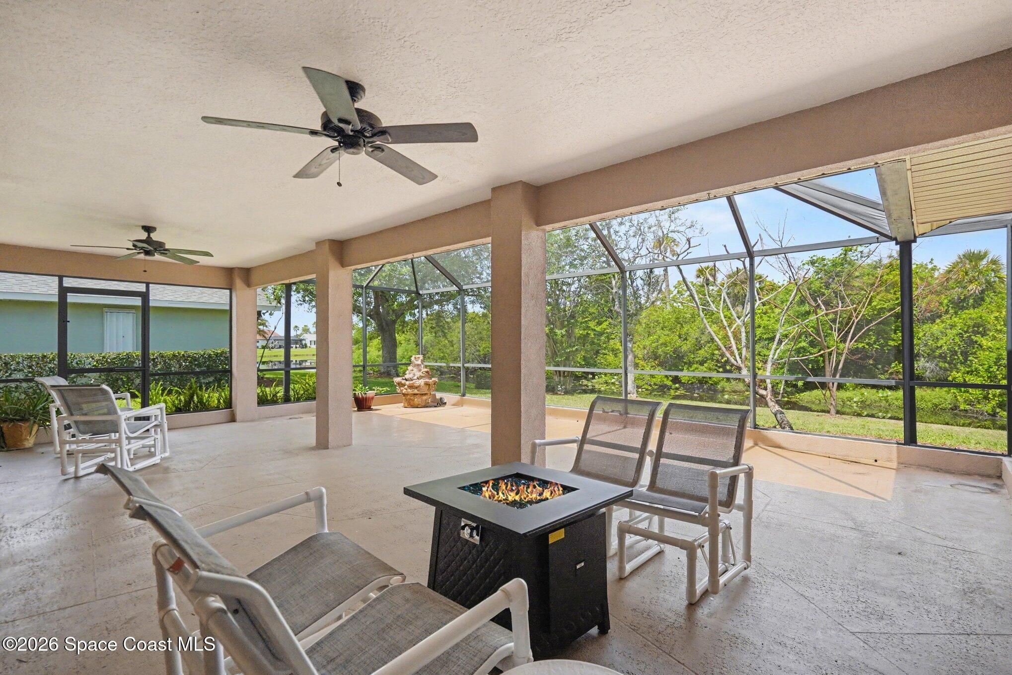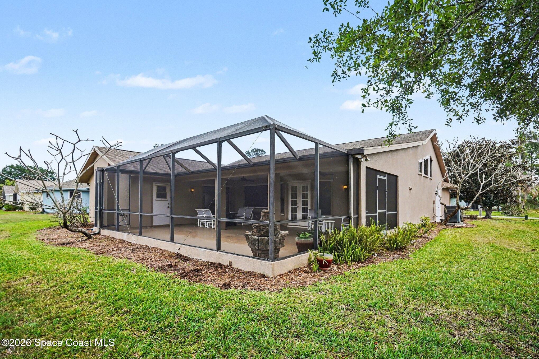 Welcome to resort-style living in one of the Space Coast's premier country club communities! This beautifully maintained Phoenix model offers the perfect blend of comfort and elegance with 3 bedrooms, 2 baths, and an optional office space, all designed around an open floor plan and soaring cathedral ceilings. The home sits on a tranquil waterfront lot, showcasing gorgeous views of the water and surrounding nature preserve. Inside, you'll find wood and tile floors, a modern kitchen with hard surface countertops, stainless steel appliances, and rich wood cabinetry, and an updated guest bath with a stylish shower. The spacious primary suite features a luxurious bath with soaking tub, double vanities, and an updated walk-in shower with cabana door access to the lanai. The large lanai offers both covered and screened areas--perfect for relaxing or entertaining--with entry from both the primary suite and kitchen. Enjoy peaceful waterfront vistas and the vibrant amenities of a resort-style country club community, including golf, pool, tennis, fitness, and social activities designed for the best of Florida living. Home to over 600 Military Veterans, Indian River Colony Club is a Private 55+ Country Club community with an extensive maintenance program for each home. It includes an18-hole golf course, fine dining restaurant with an executive chef & the 19th Hole restaurant and bar, fitness center, heated swimming pool, tennis courts, croquet, bocce ball, shuffleboard, and more. Pet-friendly, gated community with over 60 activities groups that have you feeling like you are on vacation.