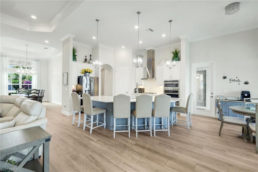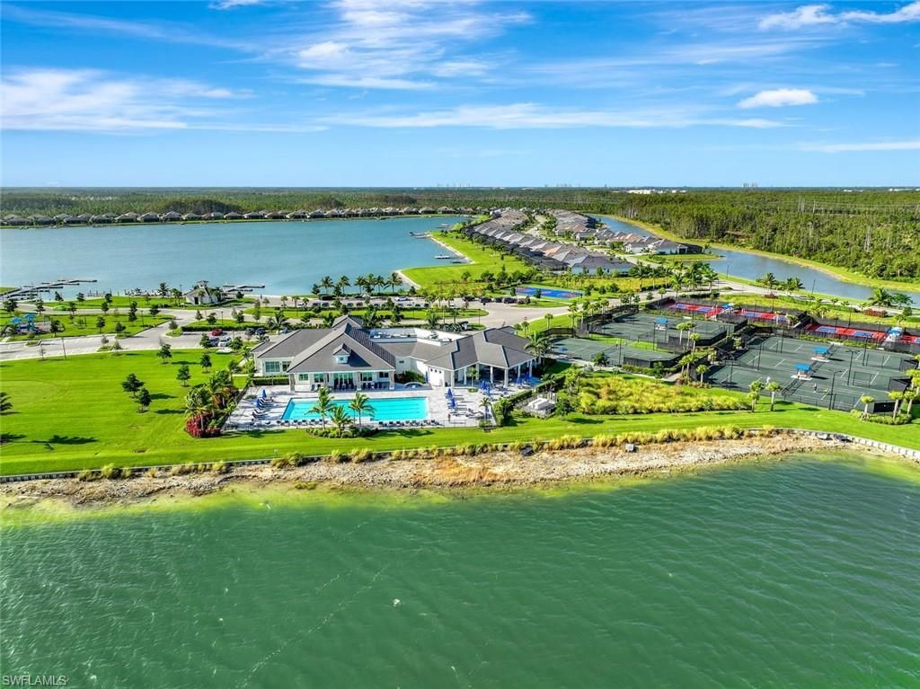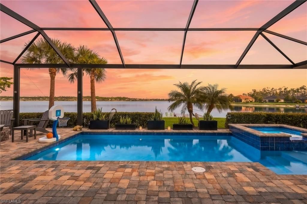 Experience refined lakefront living in this exceptional residence within the highly sought-after community of Wildblue. Offering 3 bedrooms plus a private study, 3 full baths, and a thoughtfully designed open-concept floor plan, this home seamlessly blends luxury, comfort, and the ultimate Florida lifestyle.Perfectly positioned on one of Wildblue’s pristine lakes, the property features a private dock—ideal for enjoying boating, kayaking, or simply taking in the tranquil water views. The expansive outdoor living area is designed for entertaining and relaxation, complete with a resort-style pool and spa, a generous covered lanai, and ample space to enjoy breathtaking sunrises. Inside, the home showcases elegant finishes and refined details throughout. The spacious great room flows effortlessly into the gourmet kitchen, creating an inviting atmosphere for both everyday living and hosting guests. The kitchen is appointed with premium appliances, white cabinetry, and a large center island, all overlooking the sparkling pool and lake beyond.The private study offers flexibility for a home office or additional guest space. The owner’s suite is a serene retreat, featuring tranquil water views, a spa-inspired bath, and generous closet space. Two additional guest bedrooms and baths provide comfort and privacy for family and visitors. The three-car garage boasts epoxy floors and is air-conditioned. A natural gas generator and electric storm protection provide peace of mind.Wildblue is renowned for its resort-style amenities, including a clubhouse, restaurant, lakeside beach, fitness center, resort pool, tennis, pickleball, and miles of boating waters. Ideally located just minutes from shopping, dining, FGCU, and Southwest Florida International Airport, this home offers both convenience and an unparalleled lifestyle. Be sure to click on the virtual tour link!An extraordinary opportunity to own a piece of Southwest Florida’s premier lakefront living.