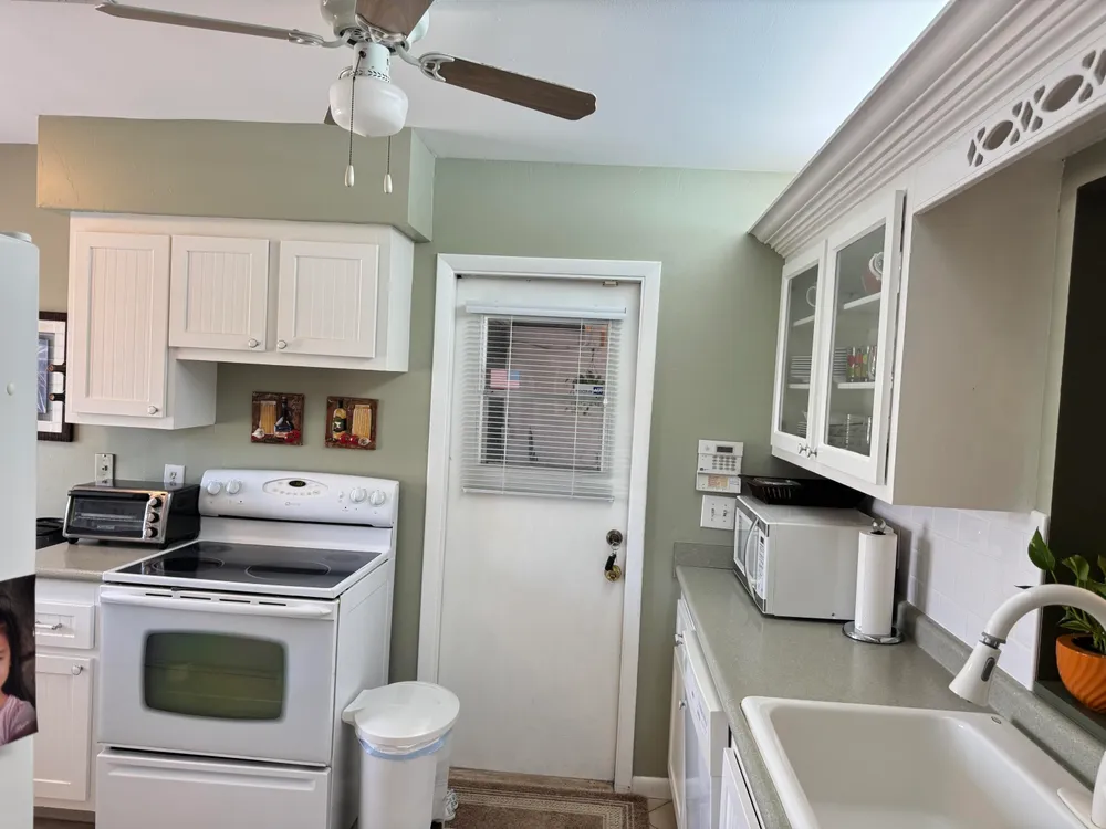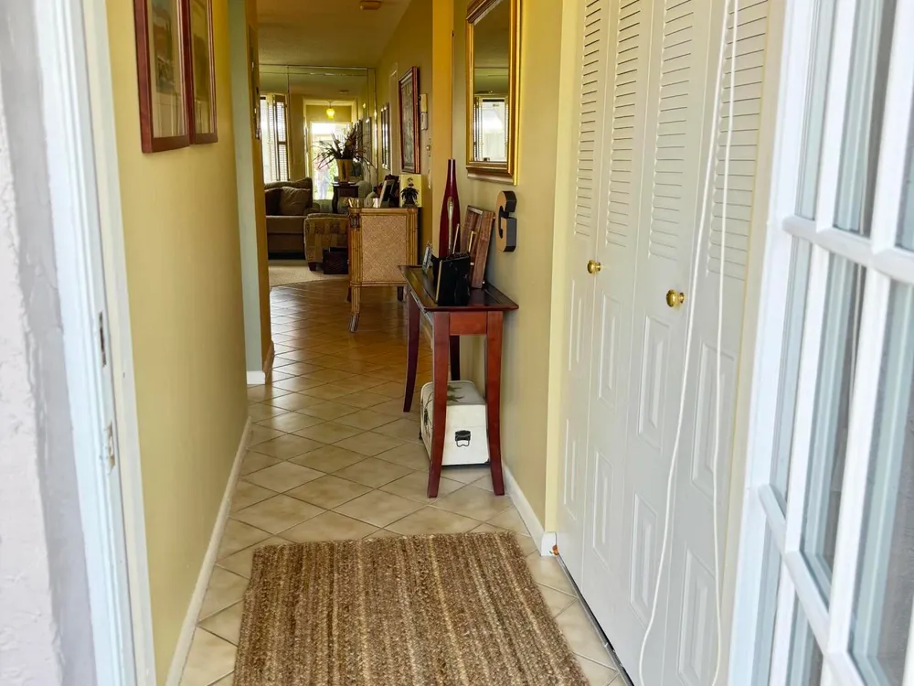 Light and bright ,Great location, Great Deal 2/2 with 2 car driveway & carport. Solid concrete block construction. A-Rated high school.Plantation shutters on some windows. Newer front door & french doors leading out to a huge insulated covered patio.The floor is Tiled with a modern gray wood look. A/C 2021, ROOF 2019, New curcuit breaker boxHurrican film on most windows preventing breakage from flying debri. Step-in shower in Master bdr. Ceiling fans in all rooms. Lots of closet space.1 person must be 55+ no kids under 15Walking distance to the clubhouse pool,jicuzzi,pickelball,gym,theater,ect approx 2 miles to 3 Pubix shopping centers with Cvs, wallgreens, restaurants, deli's, banks, Mc donalds, Dunkin Donuts,house of worship ect.Close to major Hwys & approx 6 mile to beach