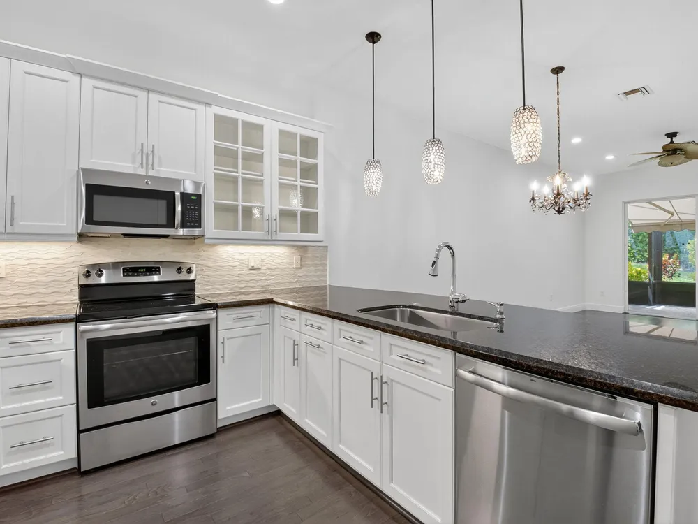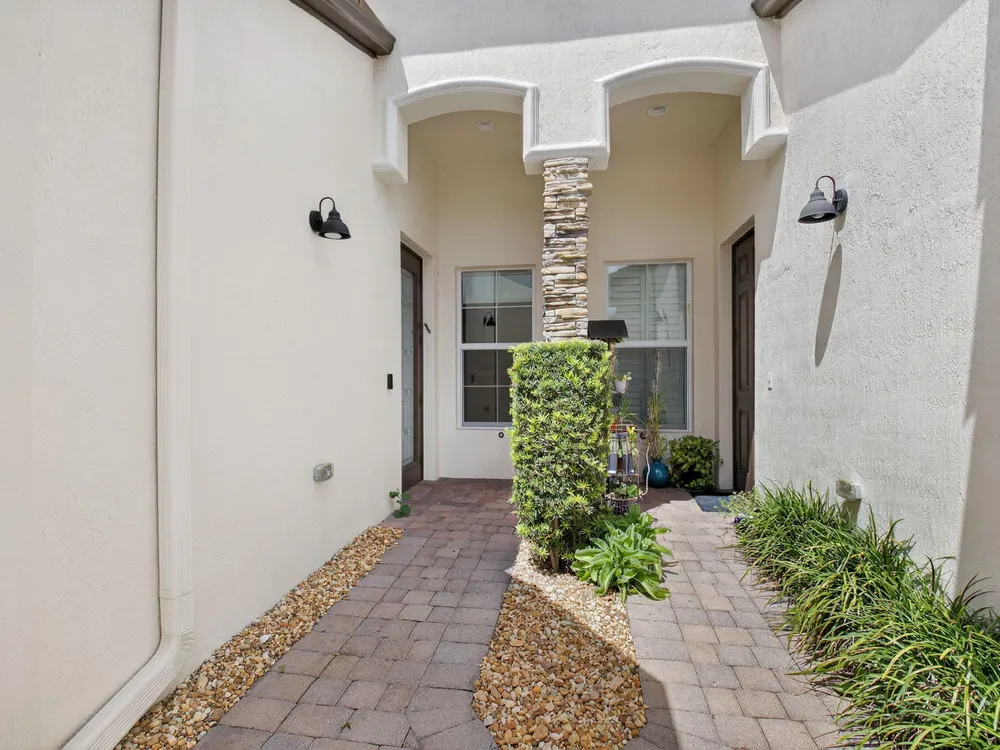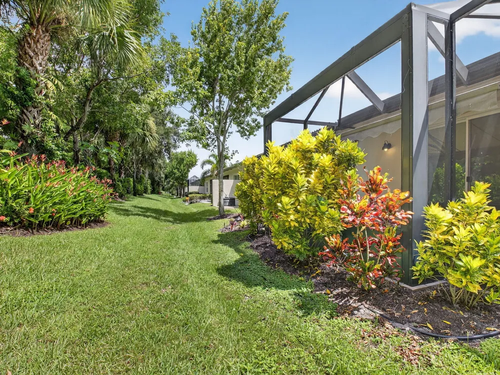 Beautifully upgraded ''Adrano'' 3 bedroom/3 bath and 1 car garage villa on private lushly landscaped lot.This freshly painted home features white wood cabinetry, granite counter tops, designer backsplash,stainless steel appliances, fixtures, fans, pendant lights, NEW A/C (2025) with warranty, designated laundry room with upper cabinetry, new washer, recent dryer vent cleaning, full house filtration system, new bulb-less hi-hats, dual sinks in primary bathroom, soaker tub, free standing shower, enlarged screen patio with picture window and retractable power awning.Villaggio Reserve is an active 55+ community with a 38,000 sq ft clubhouse with a resort style pool, lap pool, kiddie pool, jacuzzi, cafe, fitness center, 6 pickleball and 5 tennis courts and 2 bocce ball courts.