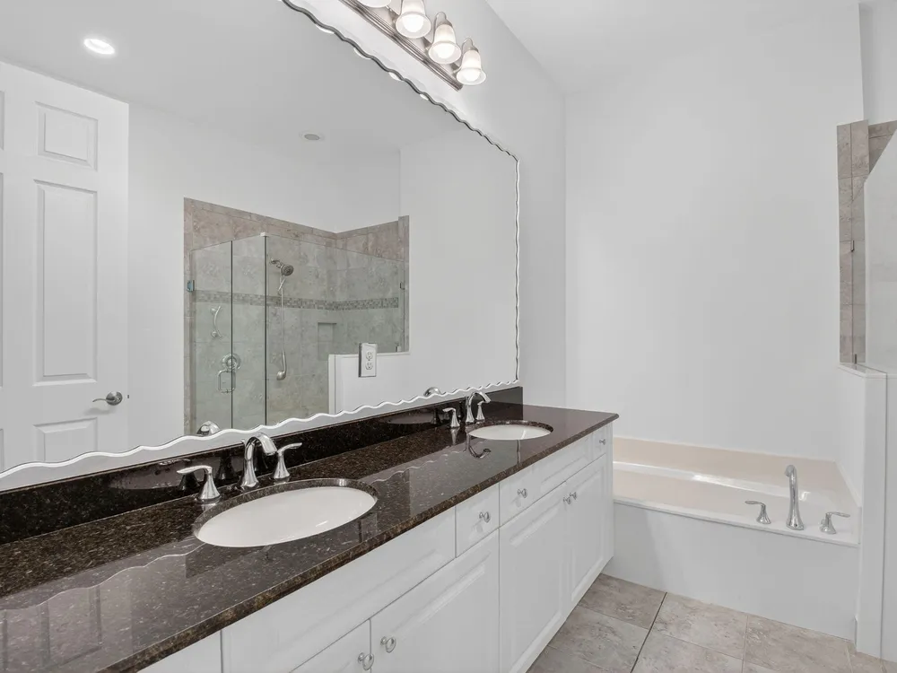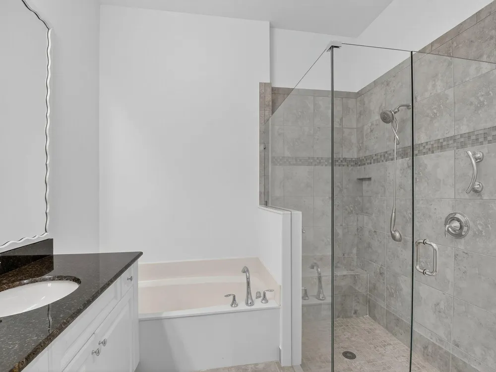 - Entrance Foyer, Pantry, Split Bedrooms, Walk-In Closet(s), Great Room, Living/Dining Room, Impact Glass, Dual Sinks, Primary Downstairs, Separate Shower, Bathtub