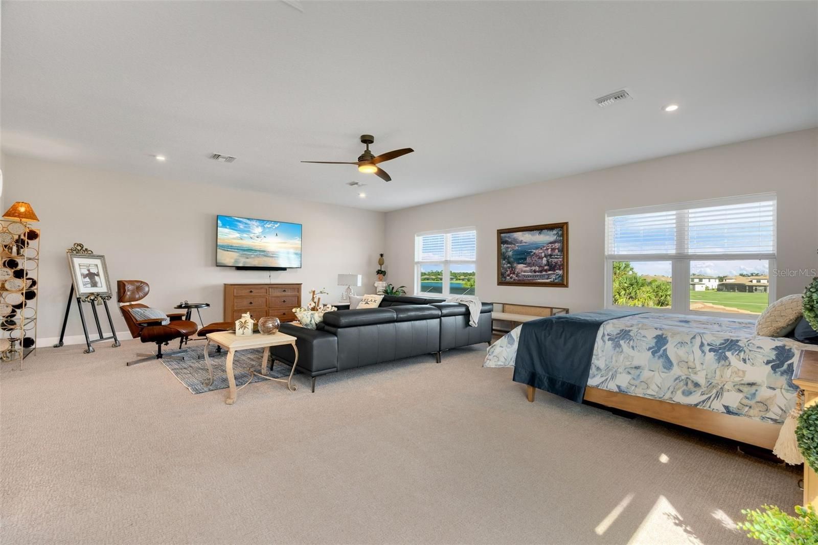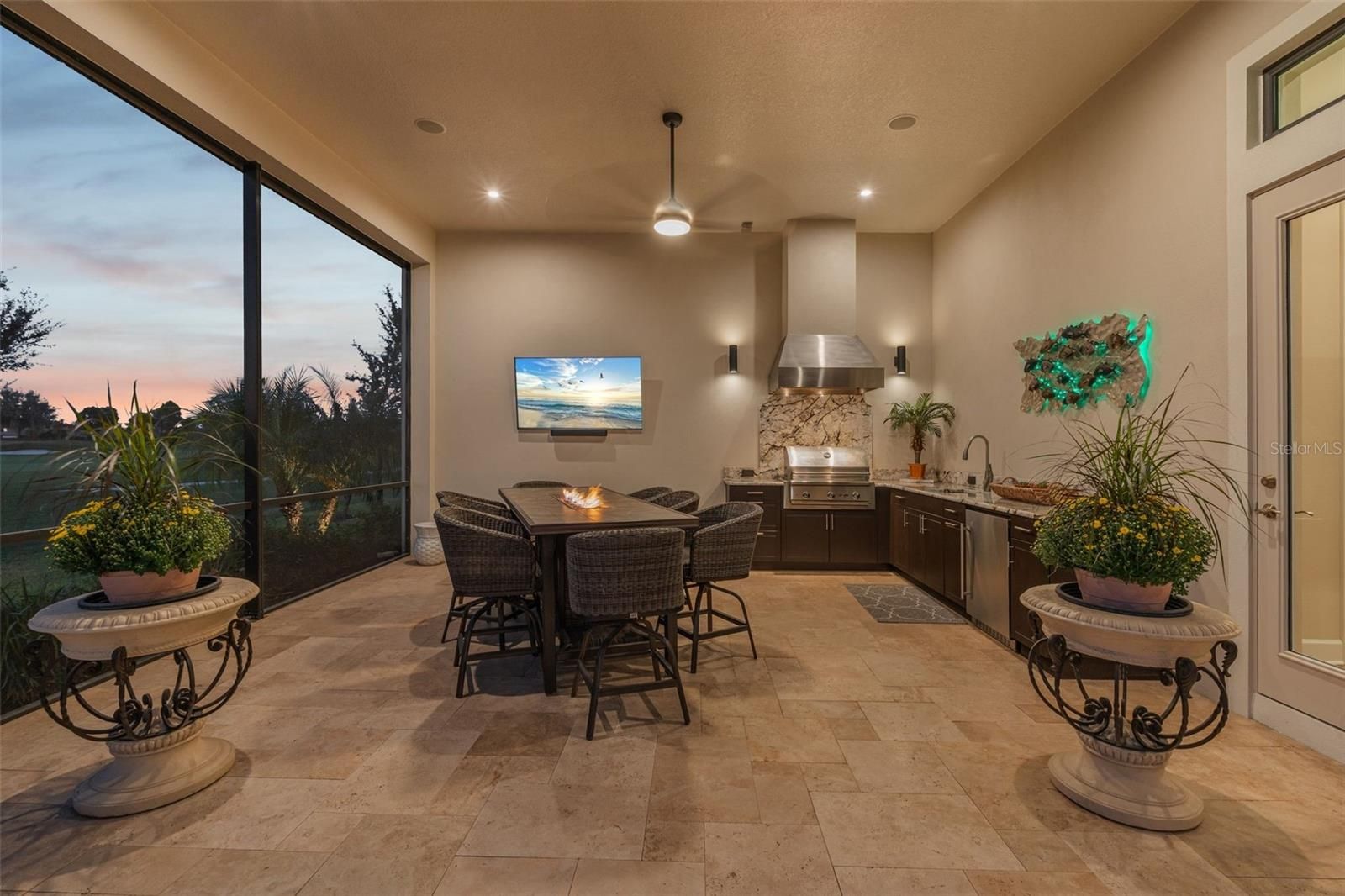 Your Private Golf & Waterfront Retreat in Esplanade at Azari is now available! Experience a rare blend of sophistication, comfort, and resort-style living in this West Indies–inspired Beacon home — one of the most sought-after and now-unavailable floor plans in Esplanade at Azario, Lakewood Ranch. With over 4,100 square feet of refined space, this residence offers four bedrooms, four-and-a-half baths, and a 700+ sq. ft. upstairs bonus suite, designed for effortless entertaining or private guest living. The home welcomes you with a courtyard-style driveway, lush custom landscaping, and a three-car garage finished in sleek epoxy. Inside, engineered hardwood floors, 12–13 ft. tray ceilings, and an open, light-filled plan create a sense of understated luxury. All with impact glass throughout and hurricane shades at the covered back lanai area. The chef’s kitchen is both functional and beautiful, featuring GE Monogram and LG stainless appliances, double convection Wi-Fi wall ovens, new LG refrigerator, beverage refrigerator, and a spacious center island perfect for gathering with family and friends. Your primary suite overlooks the pool and golf course, offering peaceful mornings and serene evenings. Upstairs, the bonus suite serves as an inviting retreat with a lounge area, sleeping space, and full bath. Step outside to your own resort-inspired lanai — an entertainer’s dream with an oversized saltwater pool, LED-lit glass water bowls, sun shelf, waterfall, and raised spa with spillover, all fully automated. The outdoor kitchen comes ready for memorable meals with a gas grill, sink, beverage fridge, stainless hood, and granite counters. Smart-home technology enhances convenience, controlling the pool, thermostats, garage doors, and entry right from your phone. Within Esplanade at Azario, every day feels like a getaway. Enjoy access to an 18-hole championship golf course, Bahama Bar, Culinary Center with teaching kitchen, fitness and spa facilities, and tennis, pickleball, and bocce courts — all within a secure, gated community. This is where luxury meets livability — a place designed for connection, relaxation, and the art of good living. Come live the good life in Azario!
