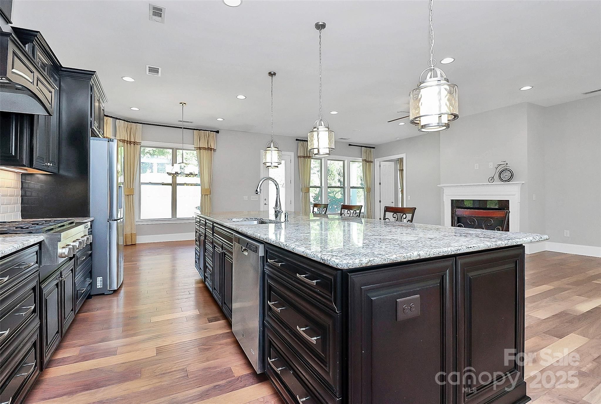 Move in ready luxury open style 1 story house in Palisades. Community is close to Lake Wylie. This house offers huge entertaining in & outside with club house, tennis court swimming pool, fitness etc. 3bed with office room, 2/1bathroom, high luxury level upgraded. 2 fireplaces in living room & office room. Surround sound system, exhaust hood, custom built cabinet, bathroom upgraded luxury design. Ceiling fans in all rooms. Tray ceiling in master bedroom & dining room. High level hardwood floor, huge kitchen island with both side storage cabinet. Reliable private backyard with open patio. Front open Pato makes you more relax & enjoy community features. Gas cooktop has 6fire logs. All stainless-steel appliances. Washer & Dryer remain. Luxury curtains in private area will be remained. One is in the family room the other is in the office room. House is settled down. You can feel owner's lovely touch on this house. You will love this house. Community has Club house walking trail tennis court inside outside pool Lake Wylie is few mins. Lawn maintains by HOA. (You just relax & enjoy) Very bright, Open floor plan with high ceiling. Kitchen upgraded Crown cabinet, granite countertop huge island, nice exhaust hood makes fresh in your house even while you are cooking. All bathrooms are beautifully upgraded. porch on the back and front.