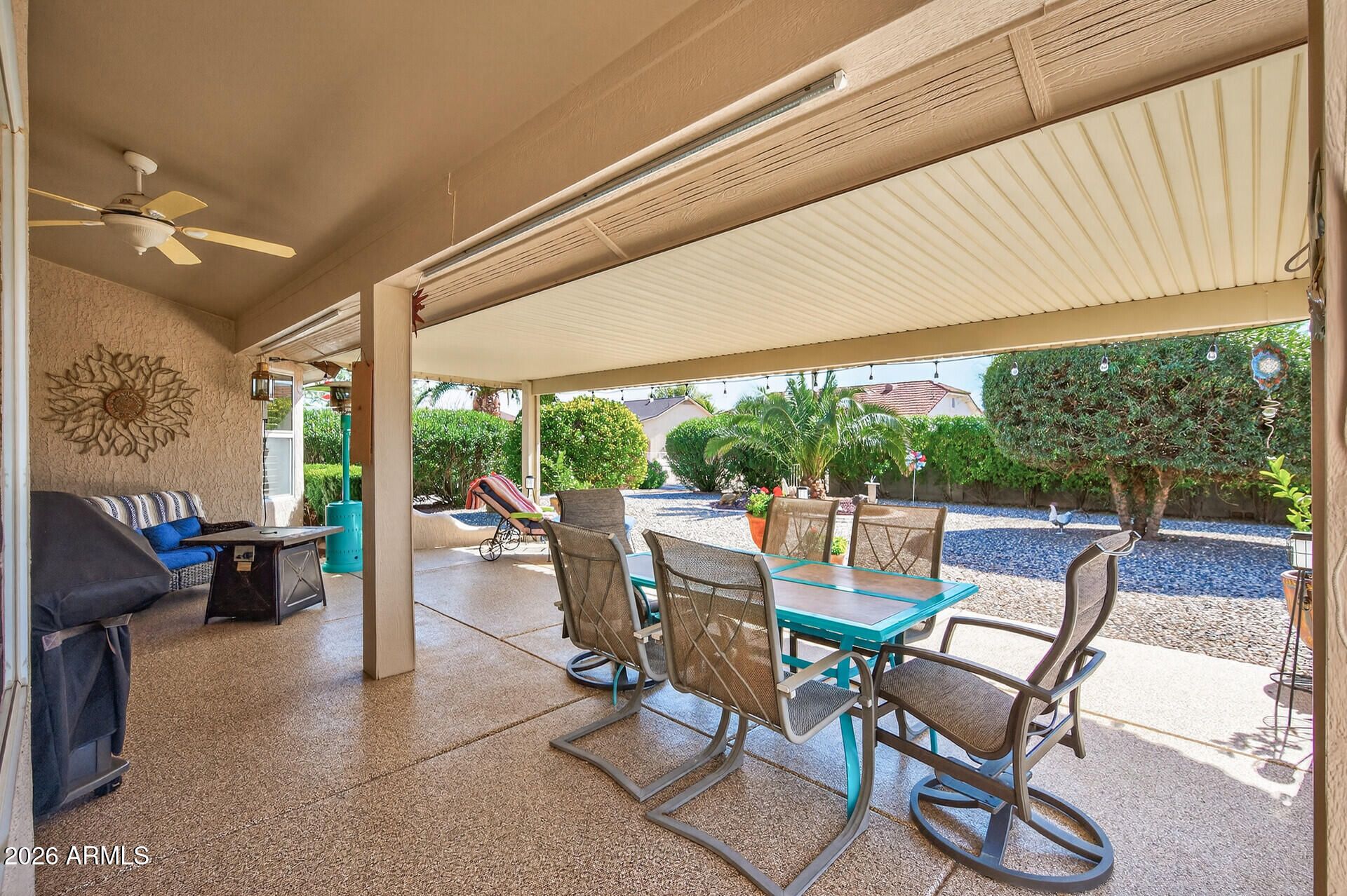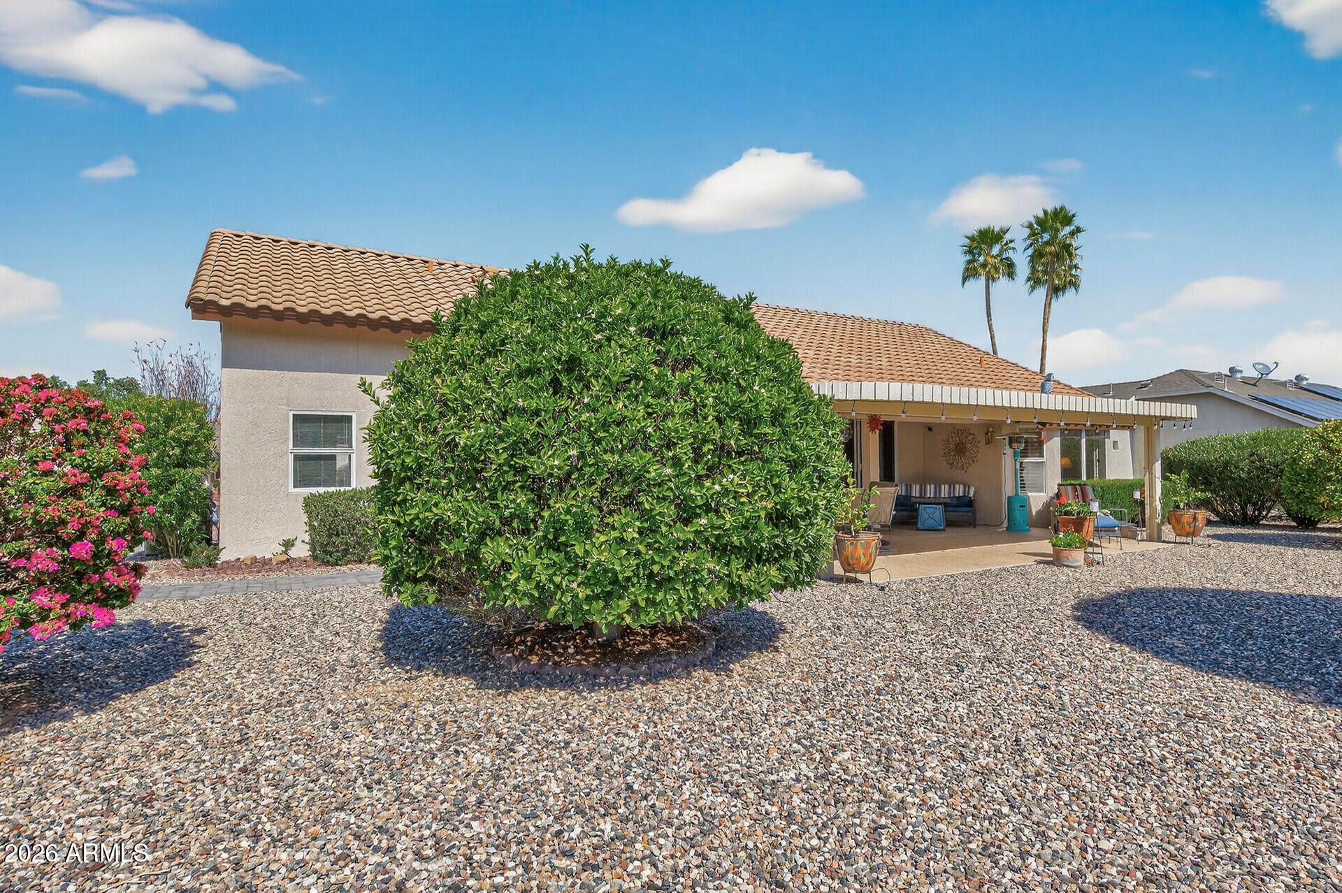 A Charming home nestled between the neighborhoods of Granite Valley & Star Dust Blvd. For you, the Homebuyer, the values of this home to buy are: Market value. Turn Key,. Home is in immaculate condition. Back yard oasis. The Brick line sidewalk to the entrance of the home showcases the brick patio in front lined with colorful roses & flowers. Along the side of the house the brick path continues to the back yard as you see the pristine landscape of tress, cactus & potted flowers. The serene, quiet & sunny yard offers relaxing moments to chill. The entrance into this home offers a spacious living/dining room for entertaining, your own space to hang & visit without the interruption of the family room activity. As you enter from the front door your eyes view the family room to the outside living space. The sunny, well-lit rooms of the kitchen, living & family rooms as well as the primary bedroom offer warmth, sun filled rooms and gentle rays of light throughout the home. The famous Sun City West 55+ Community as well as this home will offer you, the new owner of this residence a relaxing, carefree & a non stress life style with plenty of play time. This is your home NOW AND FOREVER.